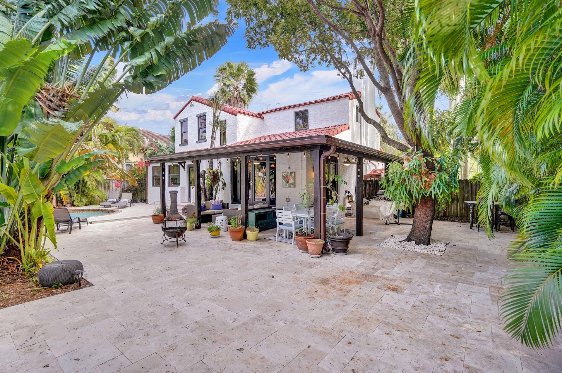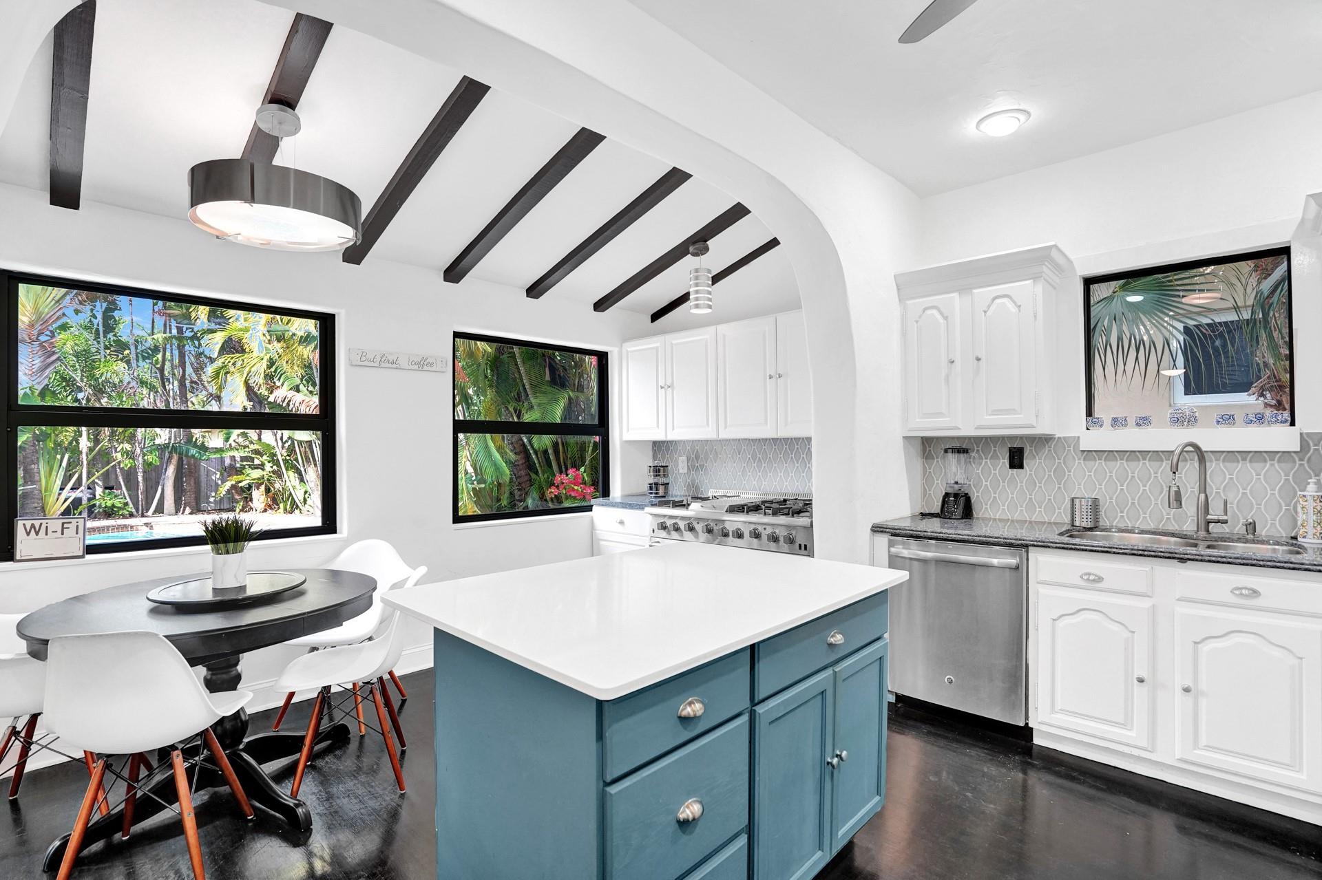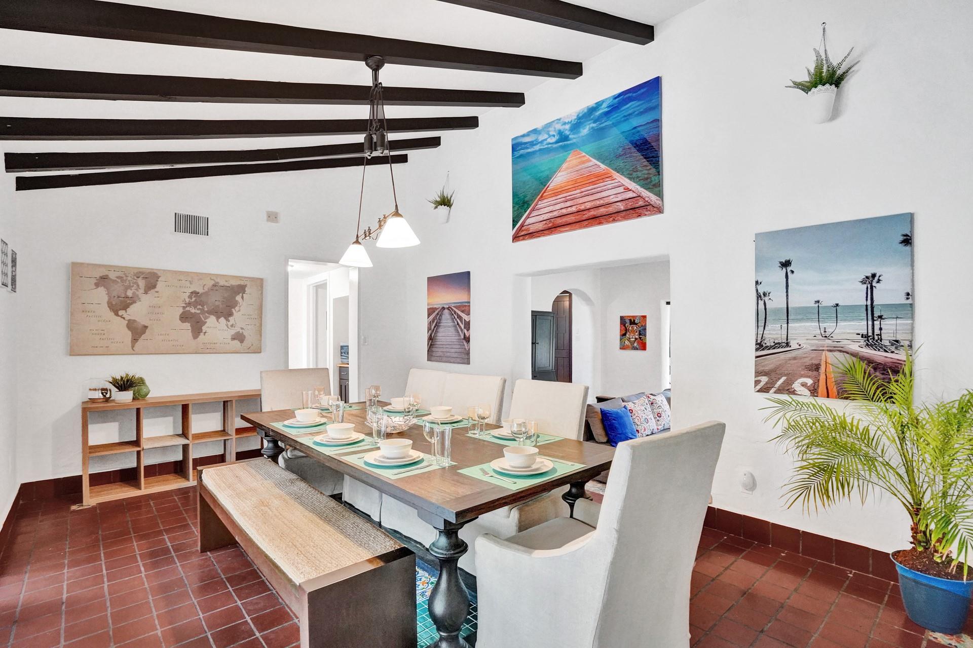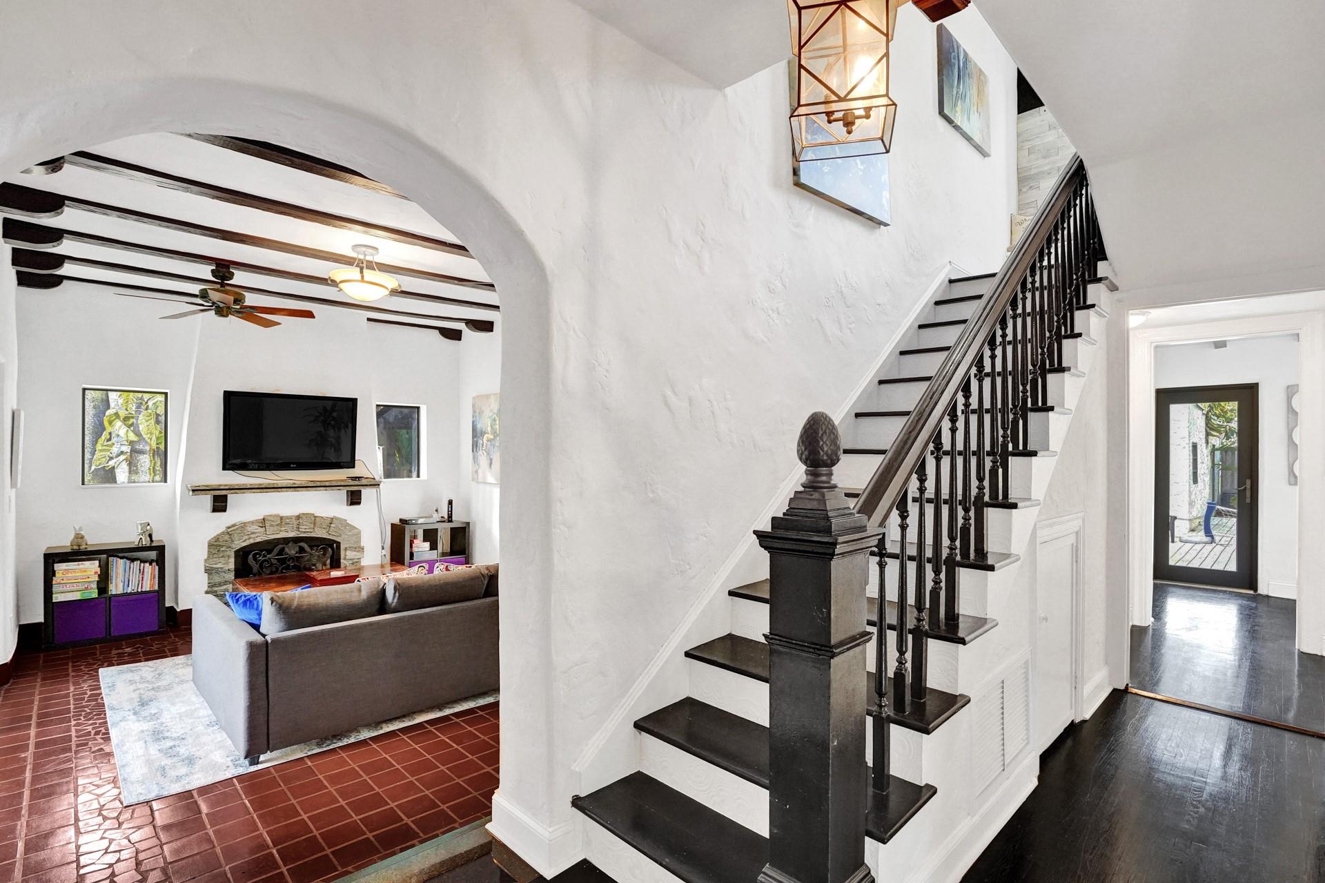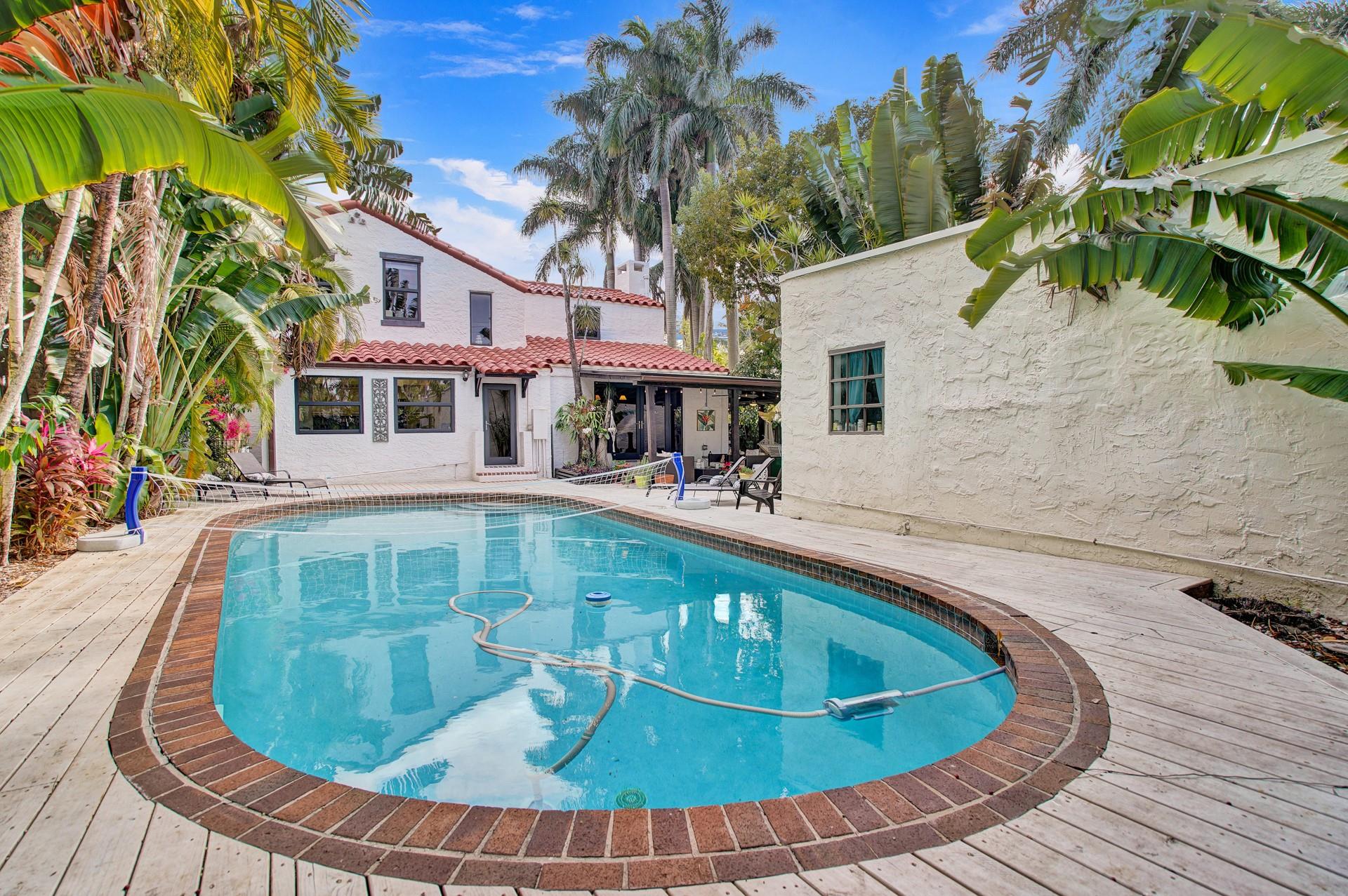 Luxuriously updated Spanish Colonial less than 1 mile from the beach AND vibrant downtown Hollywood! Main house is a 3BD/2BA, plus detached 1 car garage with Tesla supercharger, and 1 bed/1 bath w kitchenette w entrance from alley (currently rented M2M @ $1200, tenant can stay or go). Heated saltwater swimming pool surrounded by wood deck, travertine backyard w barbecue and terrace perfect for entertaining. Upscale kitchen w industrial gas range, Samsung Hub refrigerator, Bosch dishwasher. Inviting living room w gas fireplace and 12′ vaulted ceilings with gorgeous exposed beams. Beautiful dark wood floors in bedrooms and original Saltillo tile in living and dining room. Updated showers, master bath with Jacuzzi. Impact windows and doors throughout.