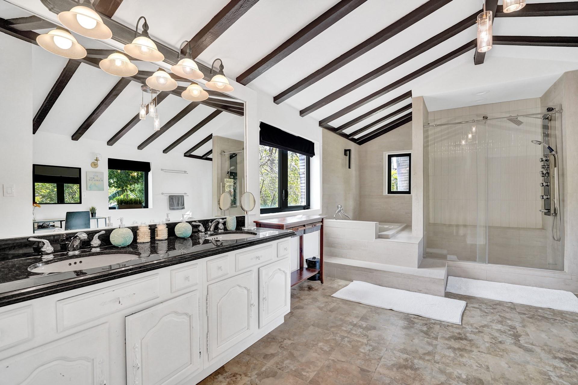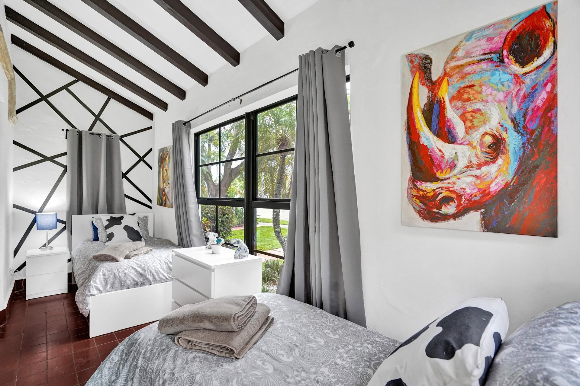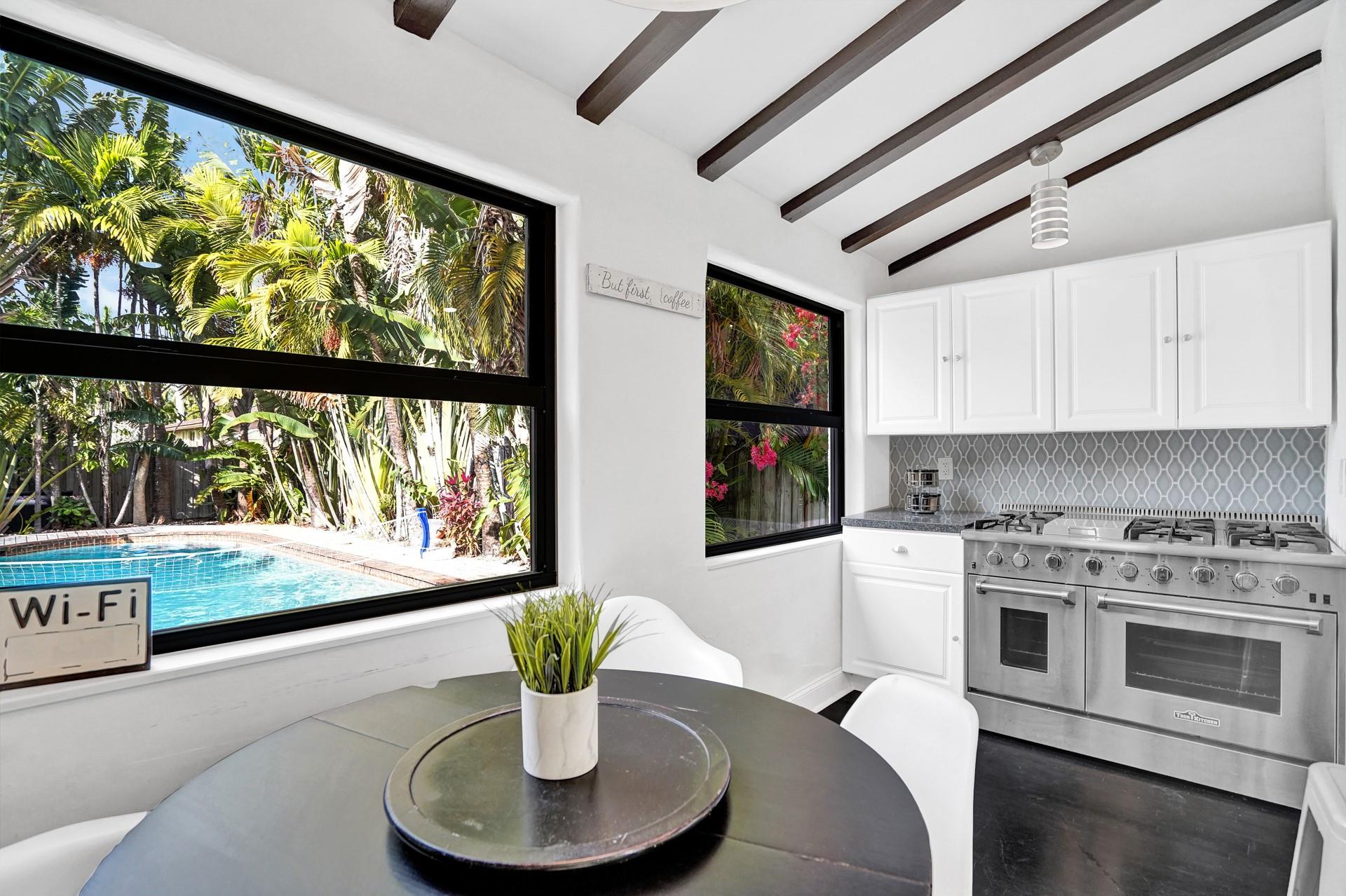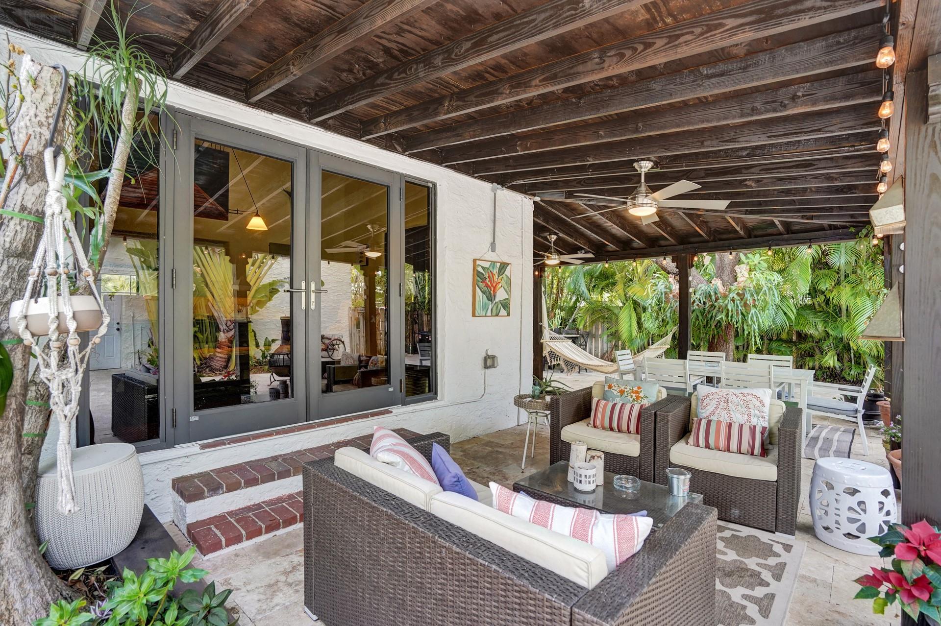 Luxuriously updated Spanish Colonial less than 1 mile from the beach AND vibrant downtown Hollywood! Main house is a 3BD/2BA, plus detached 1 car garage with Tesla supercharger, and 1 bed/1 bath w kitchenette w entrance from alley (currently rented M2M @ $1200, tenant can stay or go). Heated saltwater swimming pool surrounded by wood deck, travertine backyard w barbecue and terrace perfect for entertaining. Upscale kitchen w industrial gas range, Samsung Hub refrigerator, Bosch dishwasher. Inviting living room w gas fireplace and 12′ vaulted ceilings with gorgeous exposed beams. Beautiful dark wood floors in bedrooms and original Saltillo tile in living and dining room. Updated showers, master bath with Jacuzzi. Impact windows and doors throughout.