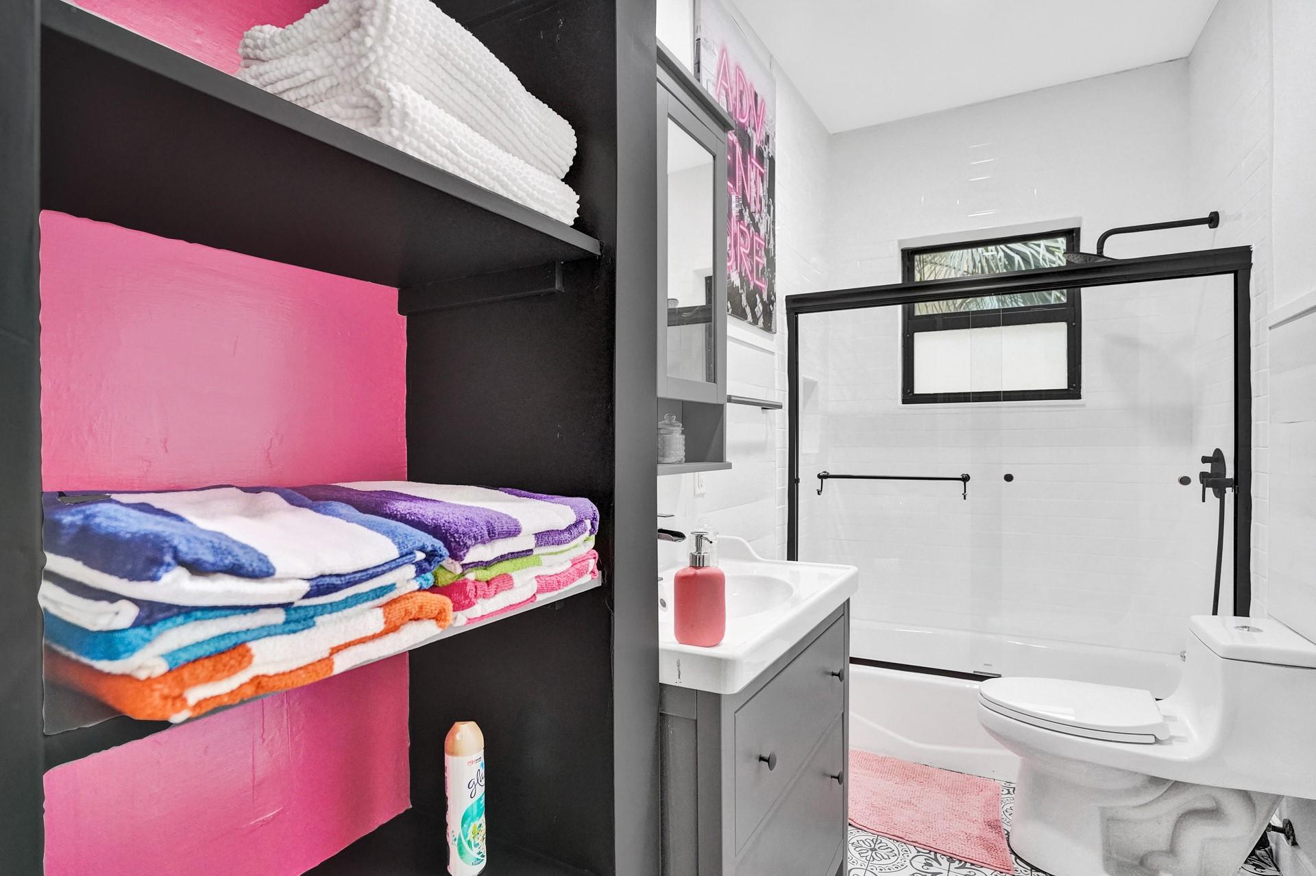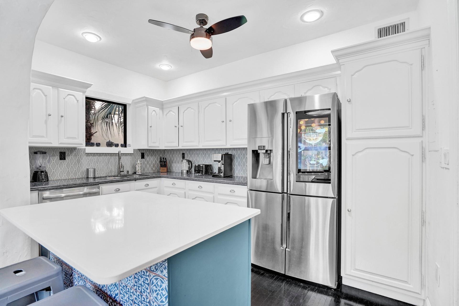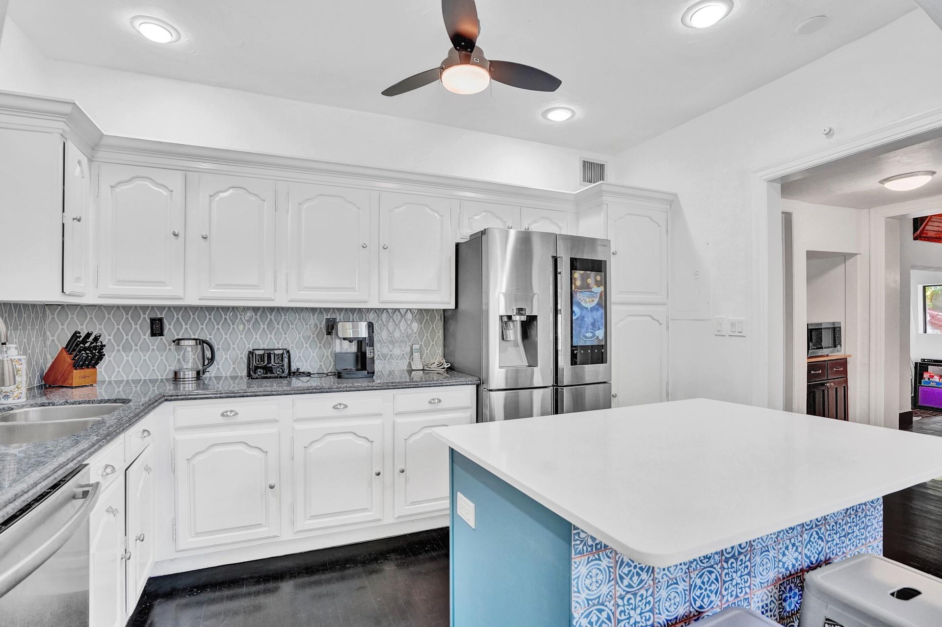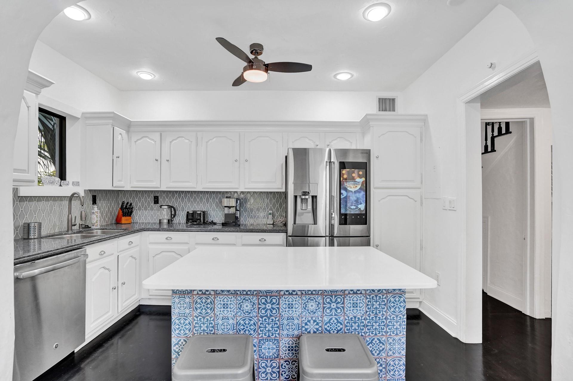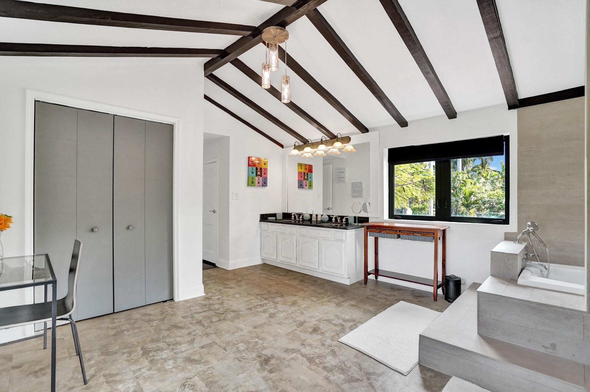 Luxuriously updated Spanish Colonial less than 1 mile from the beach AND vibrant downtown Hollywood! Main house is a 3BD/2BA, plus detached 1 car garage with Tesla supercharger, and 1 bed/1 bath w kitchenette w entrance from alley (currently rented M2M @ $1200, tenant can stay or go). Heated saltwater swimming pool surrounded by wood deck, travertine backyard w barbecue and terrace perfect for entertaining. Upscale kitchen w industrial gas range, Samsung Hub refrigerator, Bosch dishwasher. Inviting living room w gas fireplace and 12′ vaulted ceilings with gorgeous exposed beams. Beautiful dark wood floors in bedrooms and original Saltillo tile in living and dining room. Updated showers, master bath with Jacuzzi. Impact windows and doors throughout.