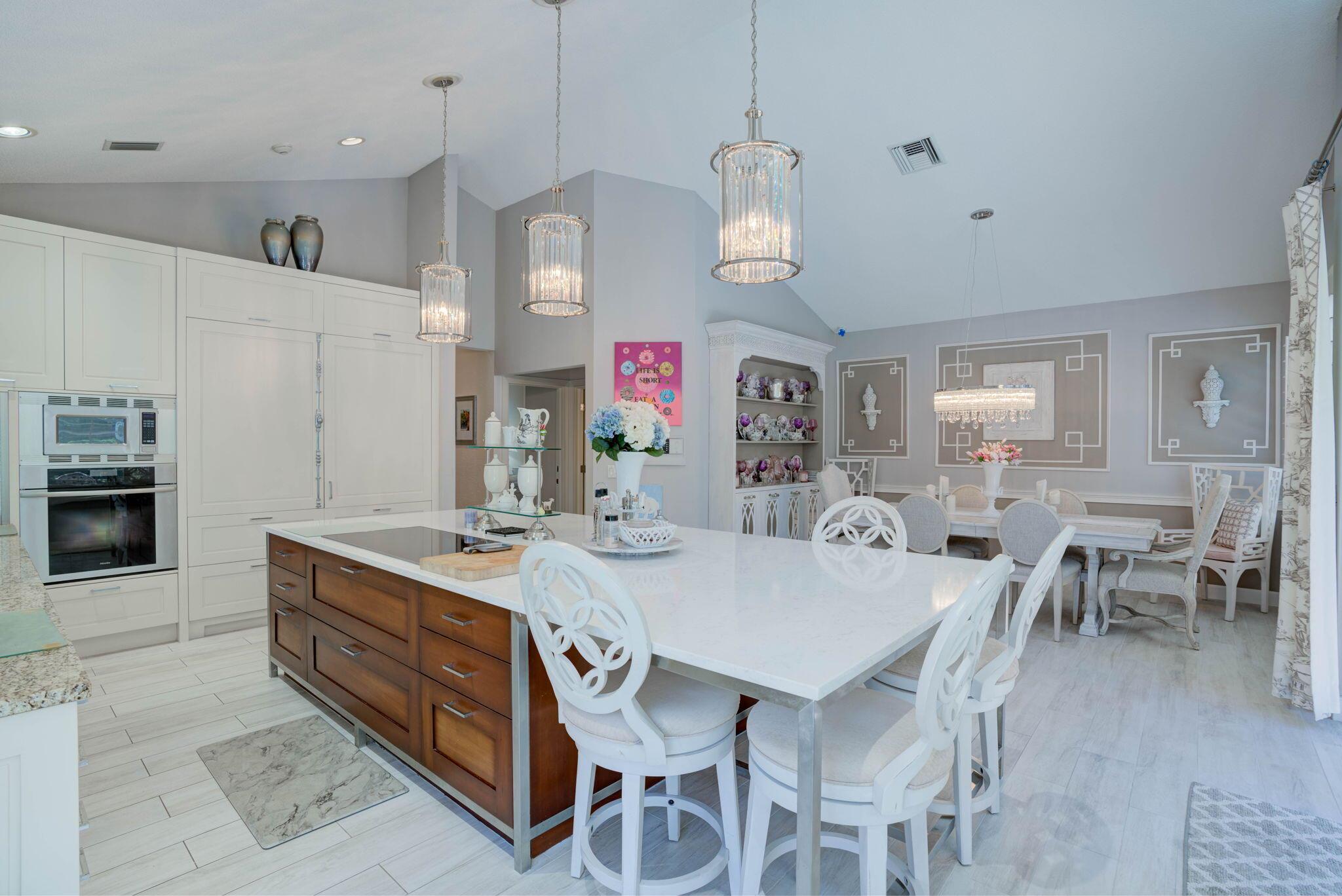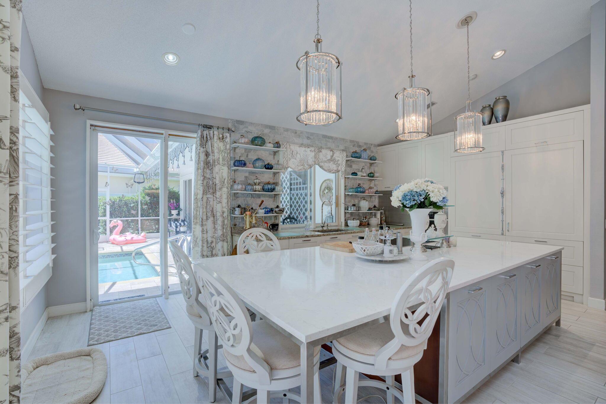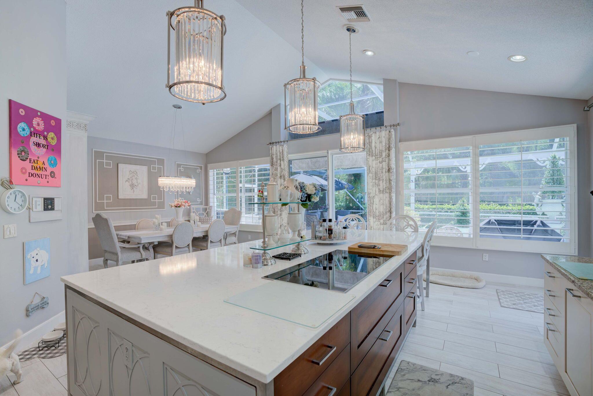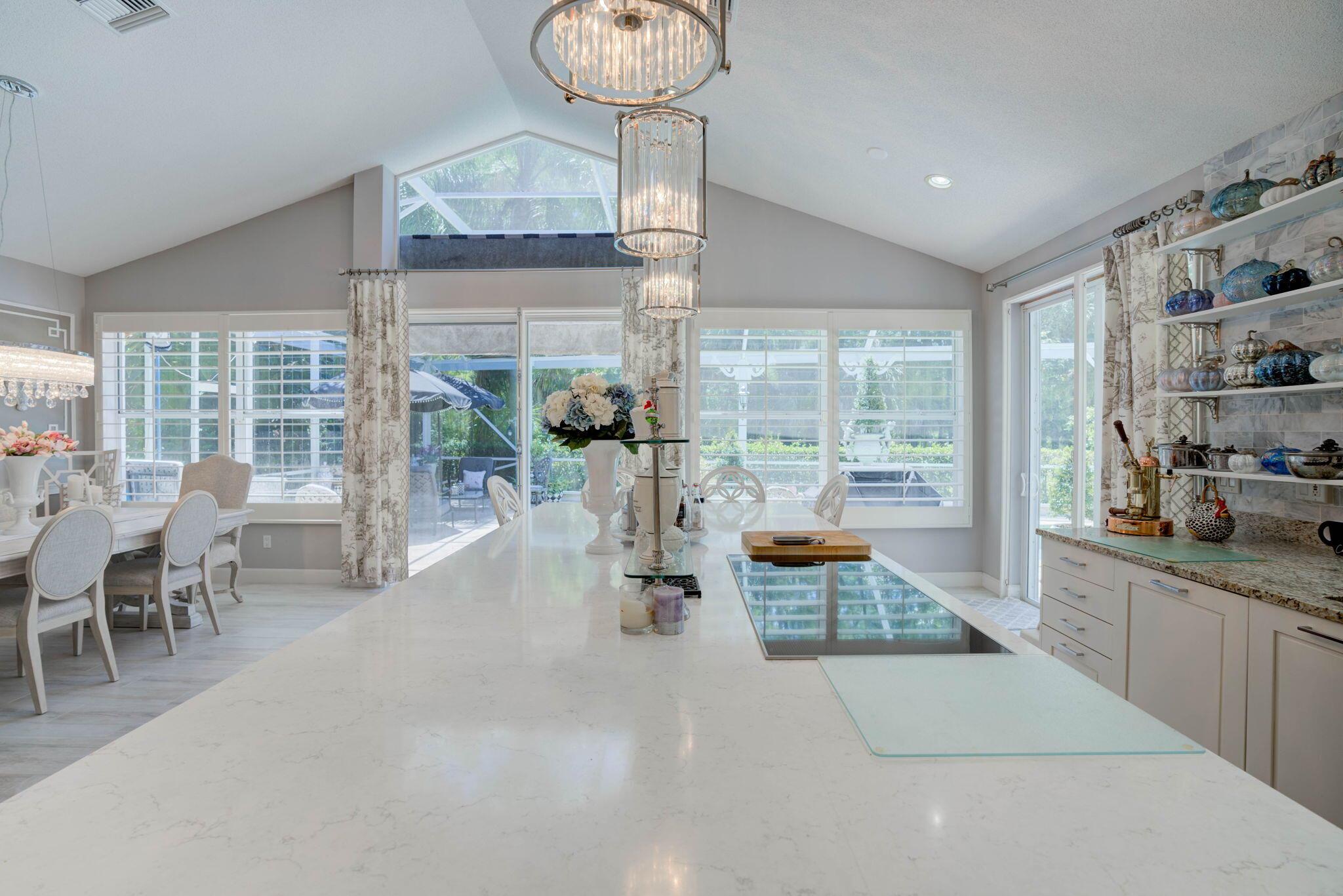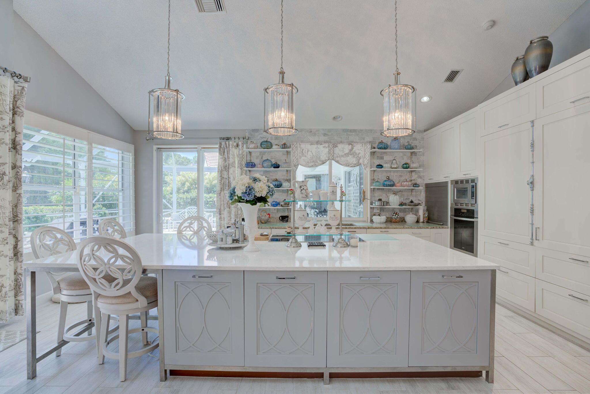 This exclusive residence features 4 bedrooms, 3 full bathrooms and a den. This home resides in one of the premier spots, within PGA National Resort, with a 24-hour manned gate known as the Island. This community is nestled within a 240-acre, natural preserve, teeming with wildlife. This home exudes luxury and elegance, from the grand entrance with an arched window above the wooden double doors to the contemporary living room with high-vaulted ceilings, and large windows. The split -floor plan has Master -bedroom separated from the three other bedrooms, giving it the privacy needed, when company visits. The gourmet kitchen has an open-spacious layout, with a very light and bright feel. It features a large central island that serves as a focal point and provides additional workspace and