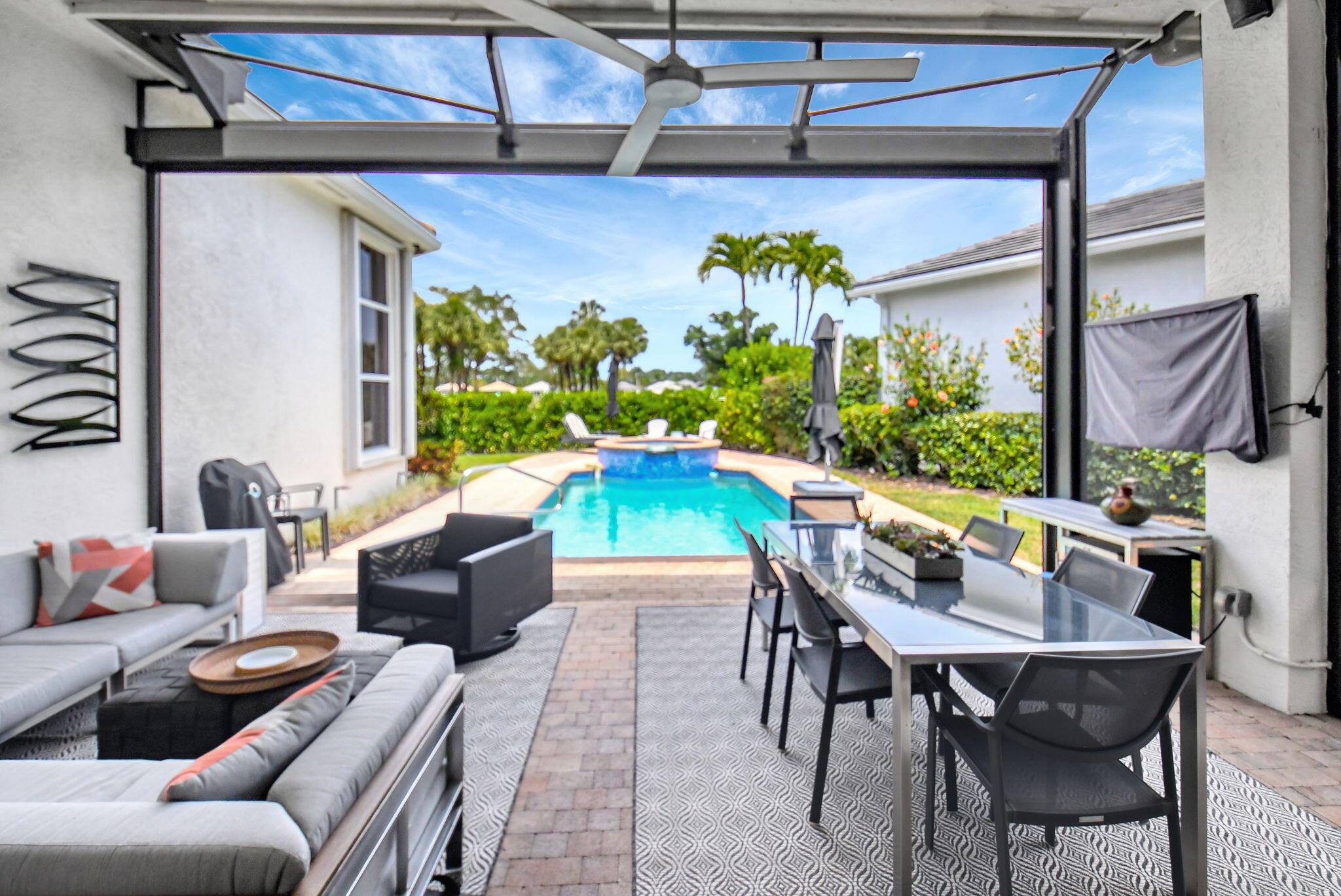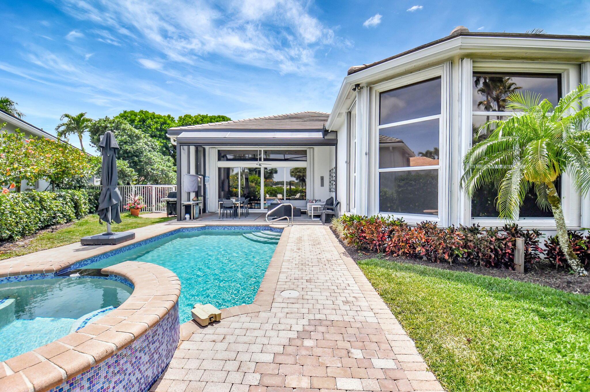 Enjoy luxury living with a FULL GOLF MEMBERSHIP!! This stunning one story home featuring 3 spacious bedrooms and 3 beautiful updated bathrooms. This completely renovated residence boasts a new roof, hardwood floors, gourmet kitchen equipped with top tier appliances and elegant finishes. Additional highlights, a full house generator, electric window treatments, pool and heated spa. A phantom screen on the patio for your year round enjoyment and so much more.