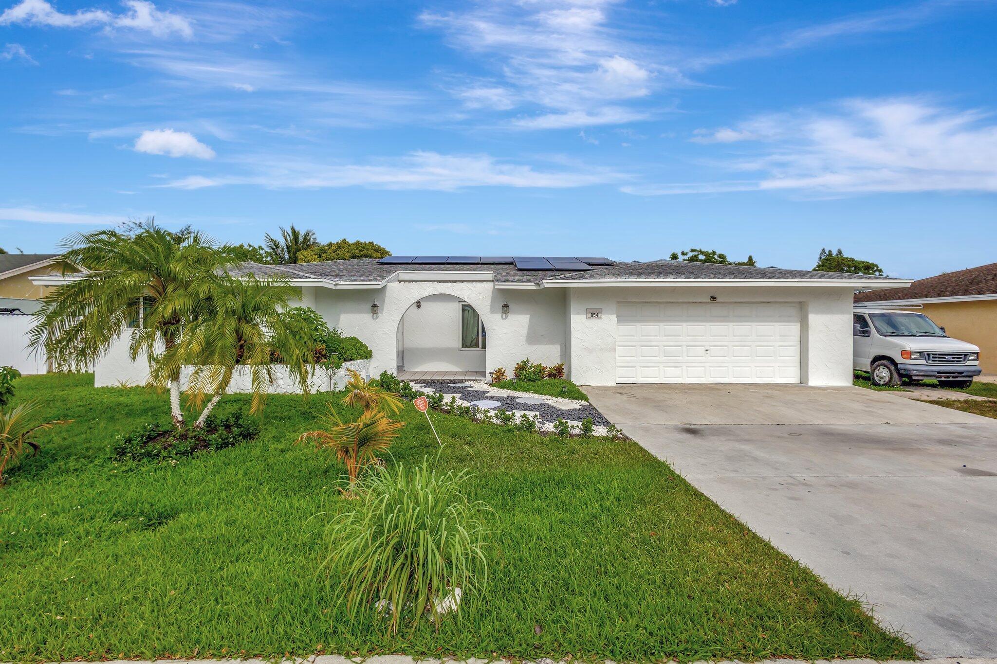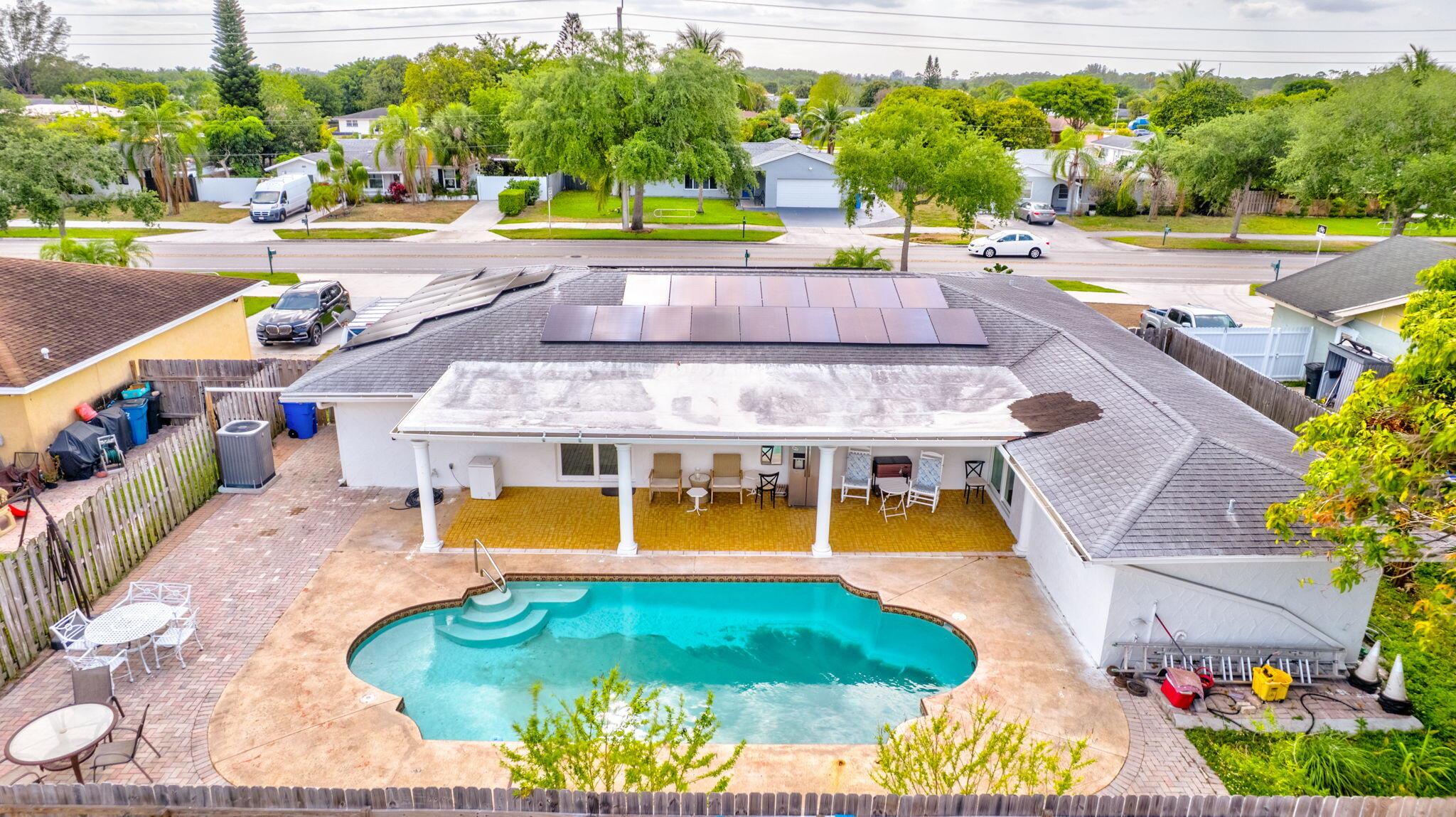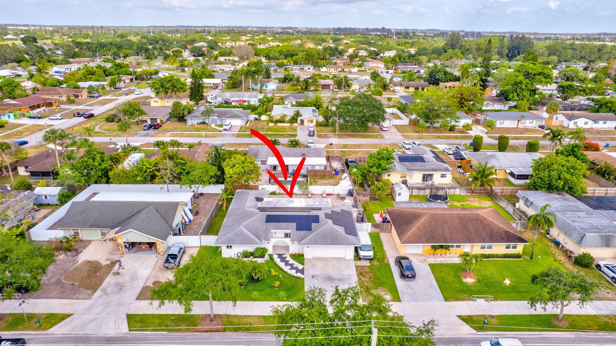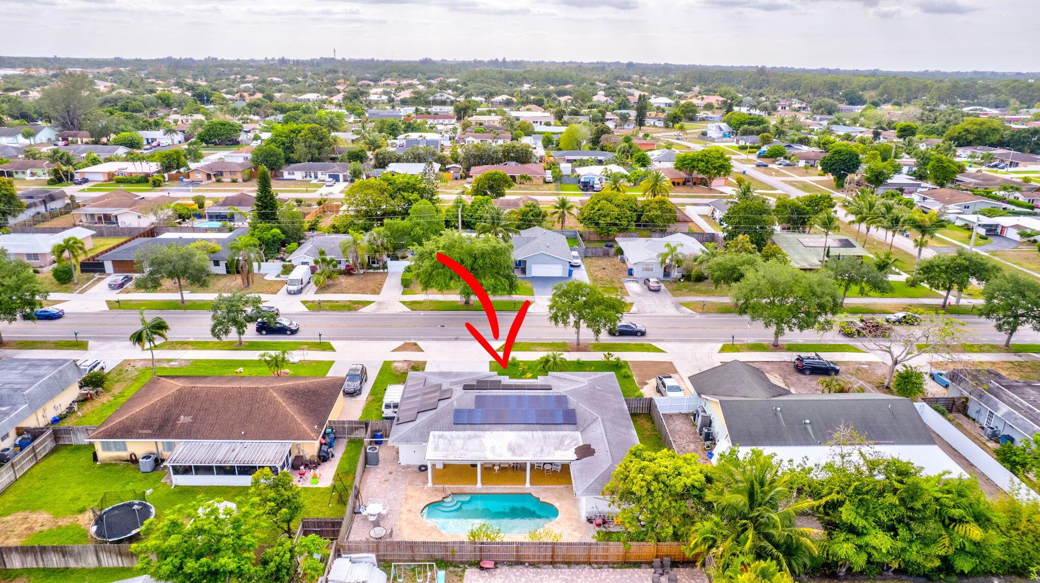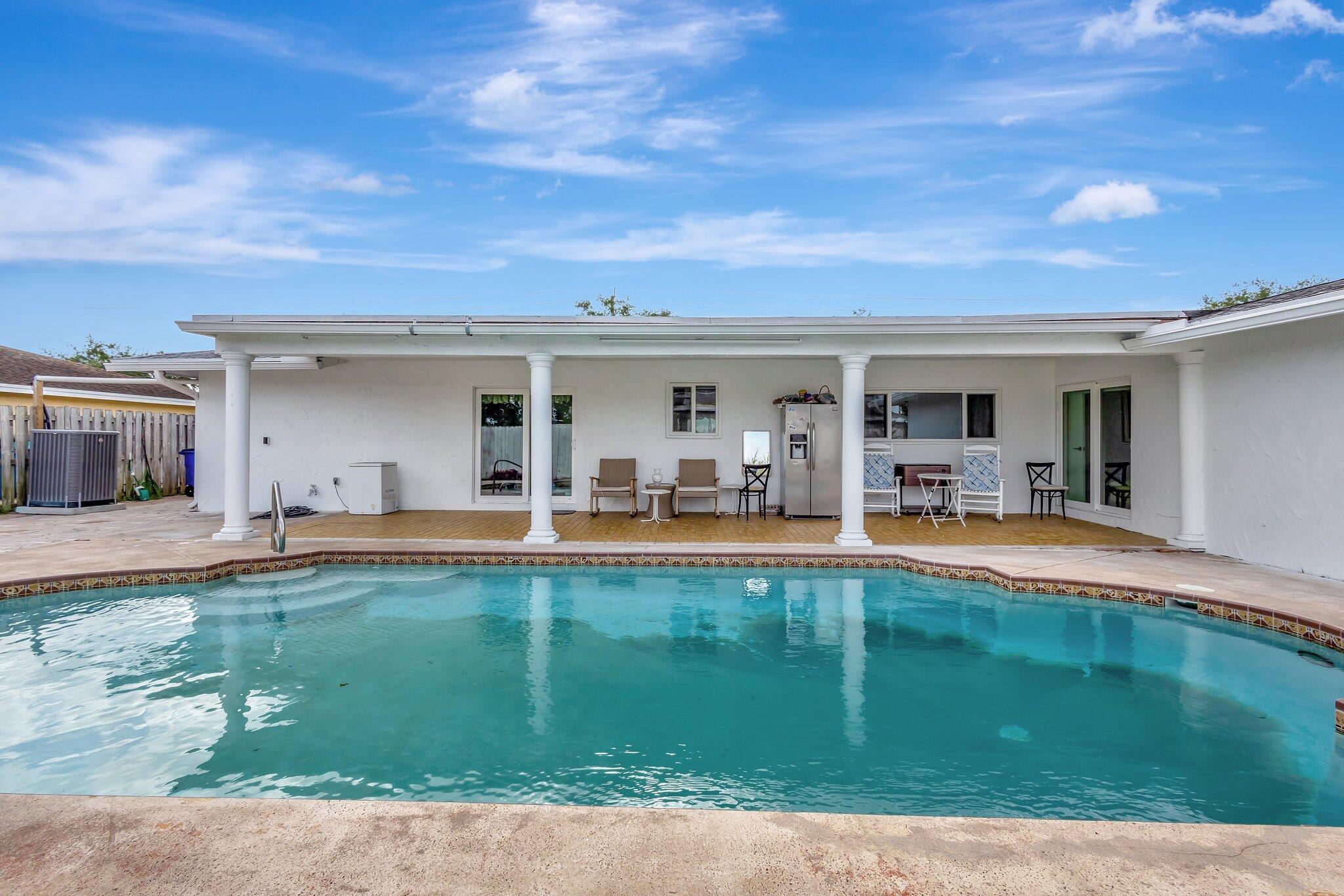 Beautifully renovated 3 bed, 2 bath home in Royal Palm Beach with no HOA! The heart of this home is the stunning backyard oasis, featuring a covered patio, fenced yard, and gorgeous in-ground pool. Enjoy seamless flow from the large kitchen to dining–perfect for entertaining. Spacious open floor plan with porcelain tile, huge bedrooms, and tons of storage. Features 2022 A/C, 2022 water Heater,Impact windows, and brand new Solar Panels- enjoy the benefits of a lower electrical bill. Located close to shops, parks, and schools. A true move-in ready gem!