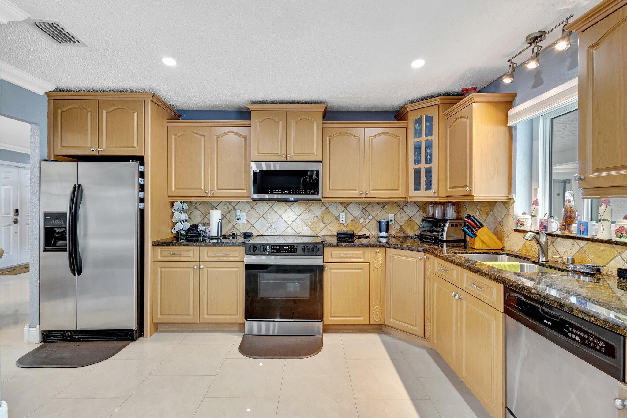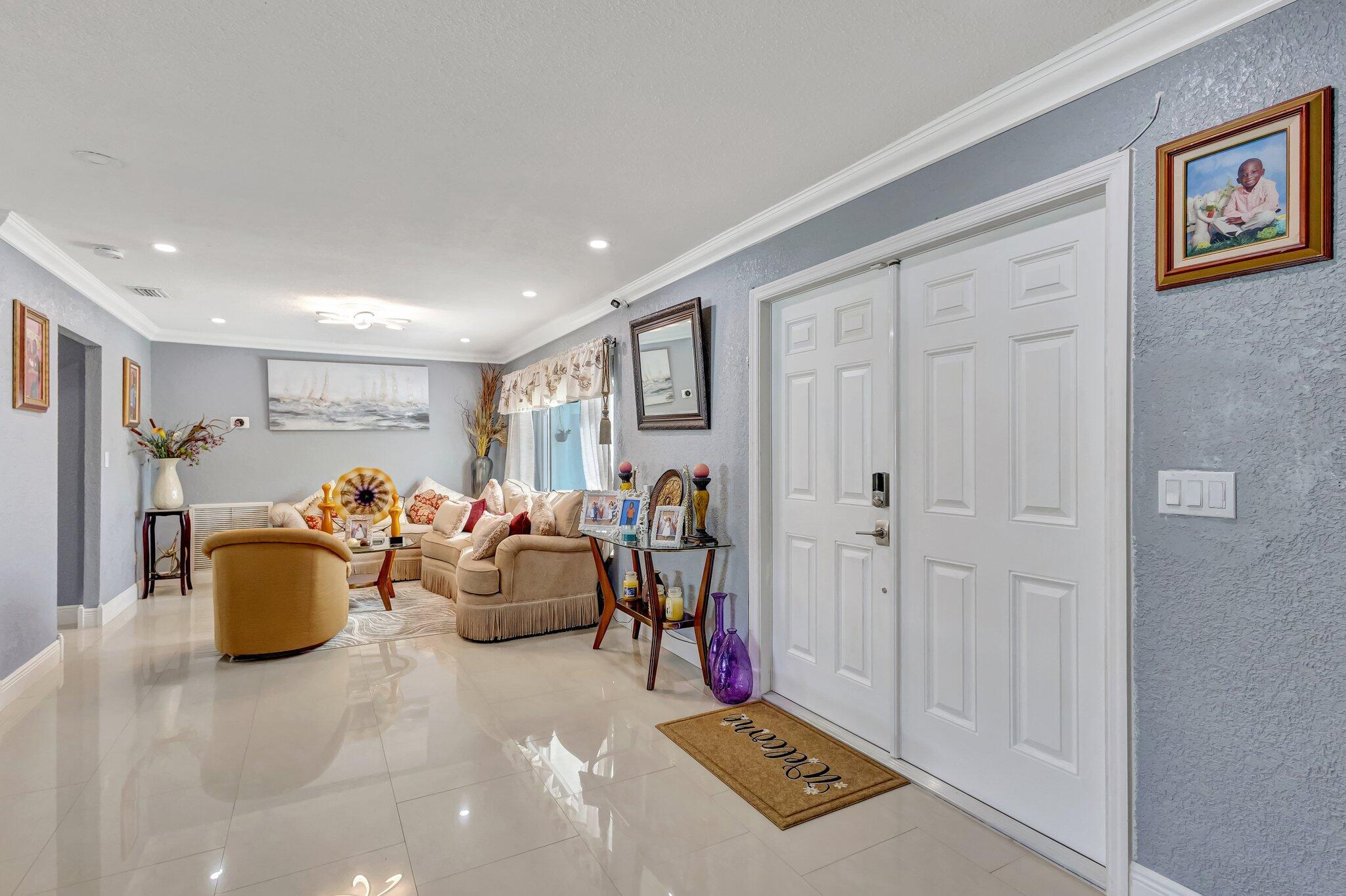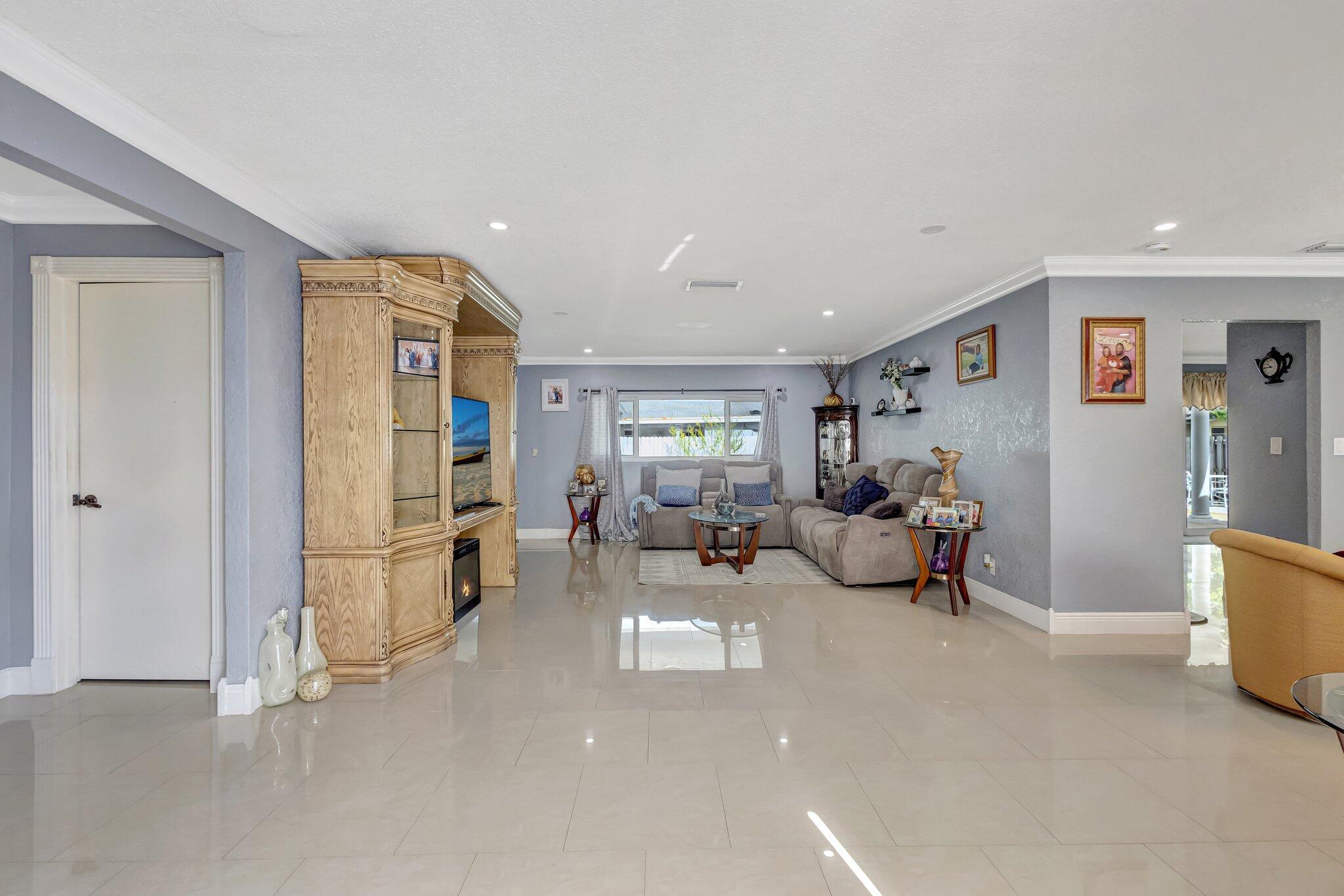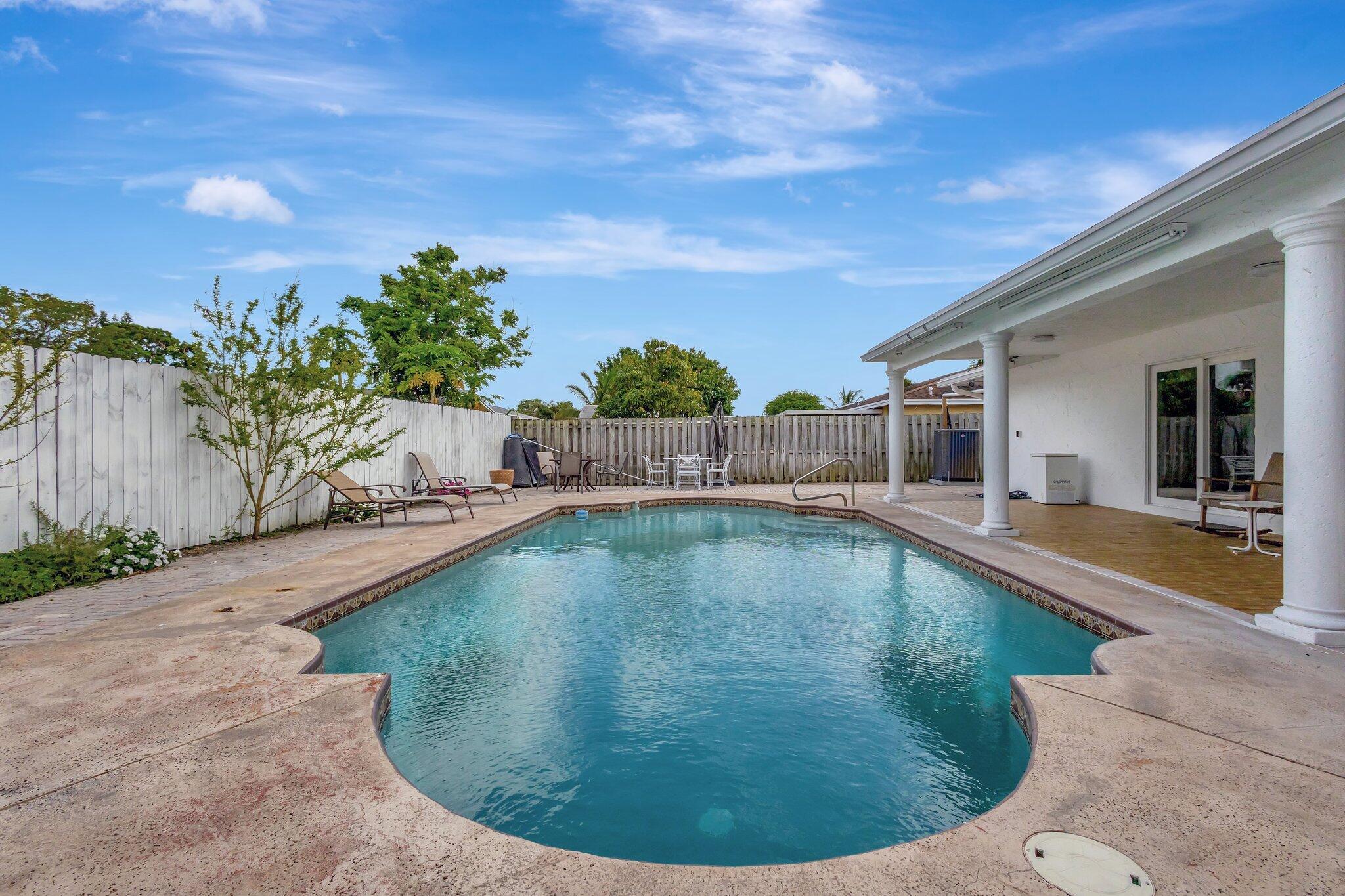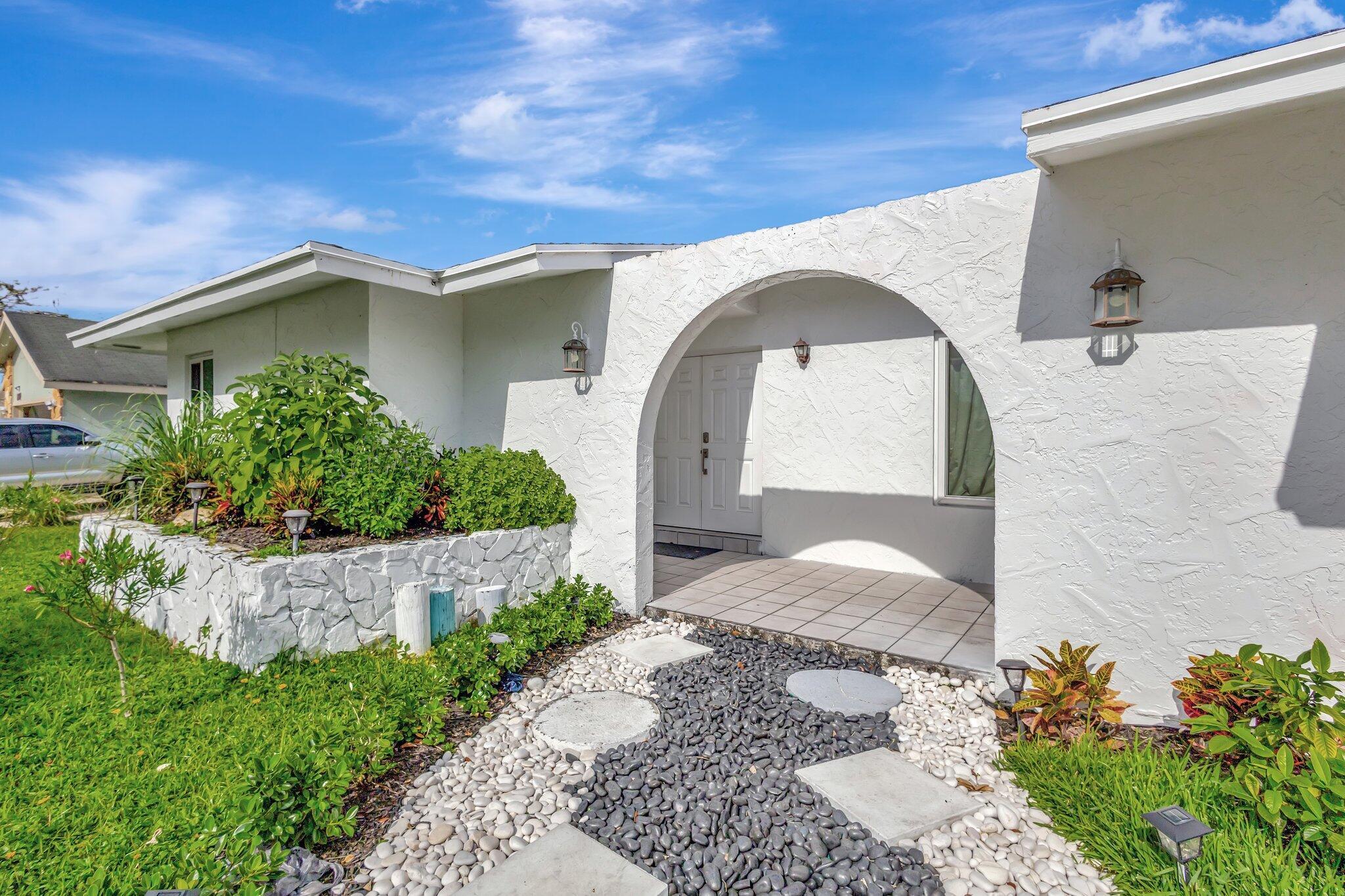 Beautifully renovated 3 bed, 2 bath home in Royal Palm Beach with no HOA! The heart of this home is the stunning backyard oasis, featuring a covered patio, fenced yard, and gorgeous in-ground pool. Enjoy seamless flow from the large kitchen to dining–perfect for entertaining. Spacious open floor plan with porcelain tile, huge bedrooms, and tons of storage. Features 2022 A/C, 2022 water Heater,Impact windows, and brand new Solar Panels- enjoy the benefits of a lower electrical bill. Located close to shops, parks, and schools. A true move-in ready gem!
