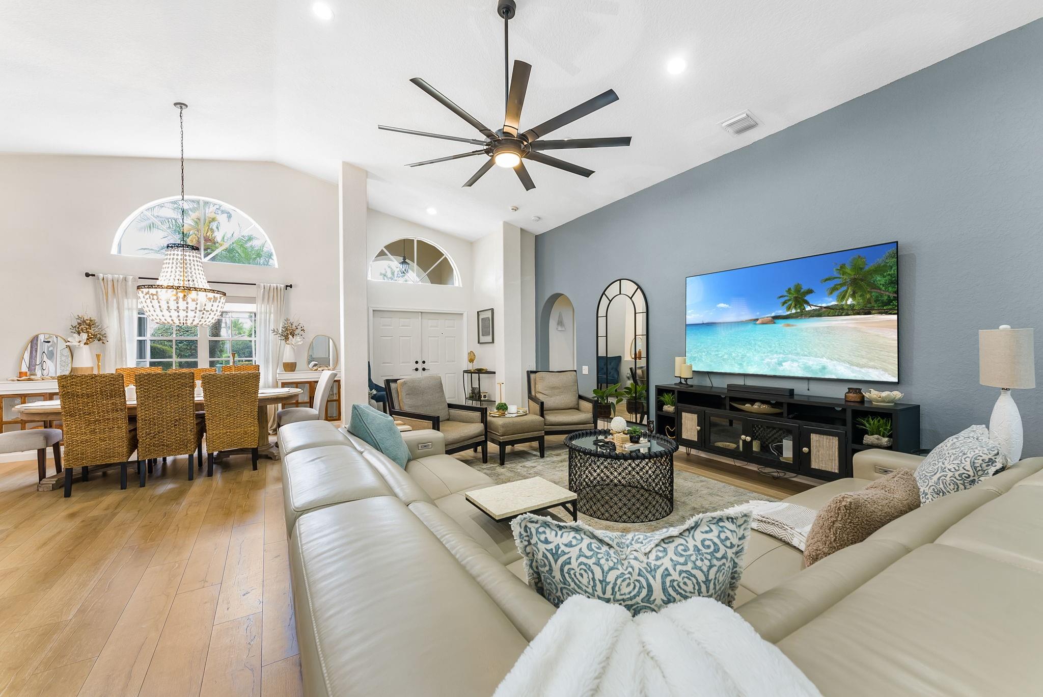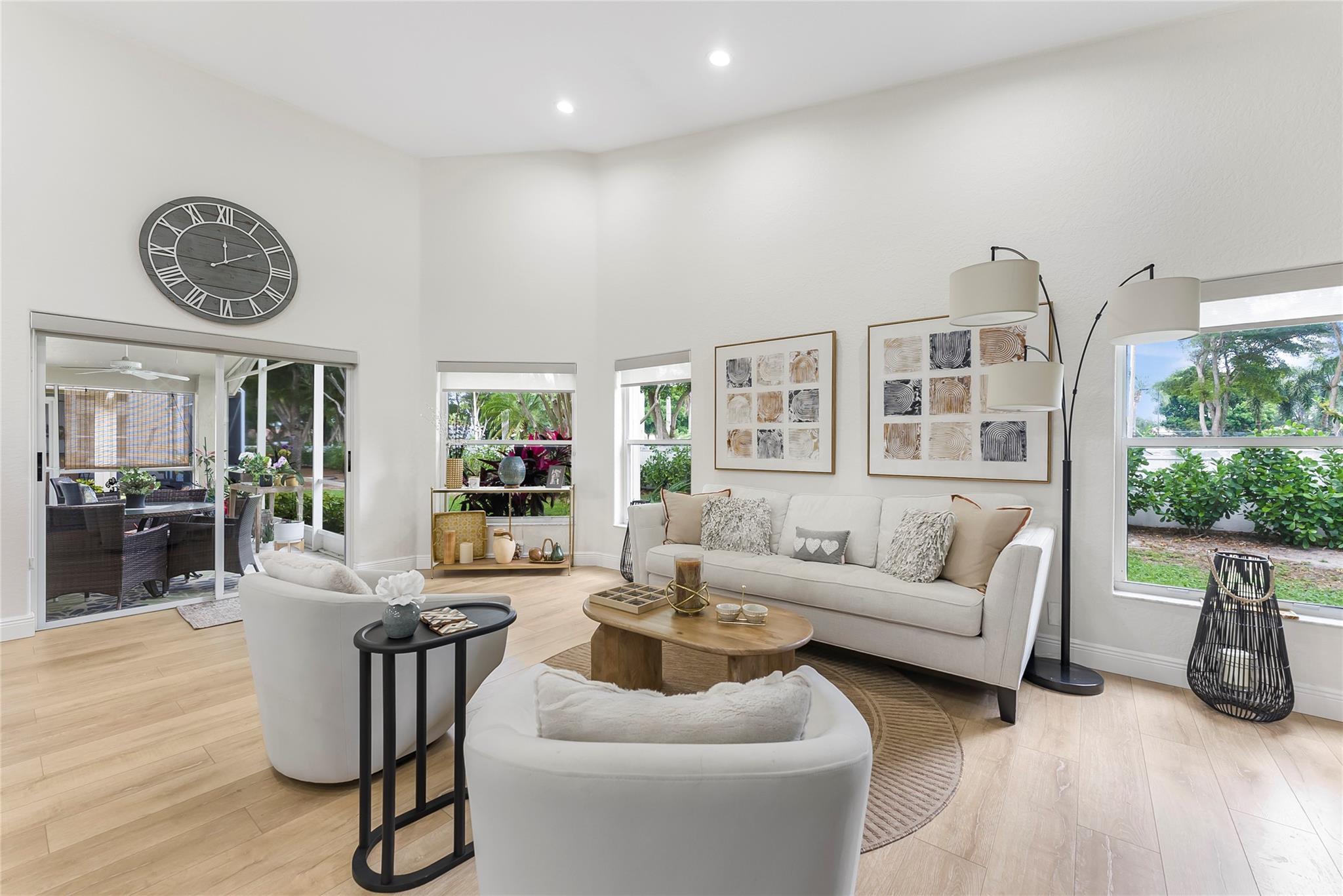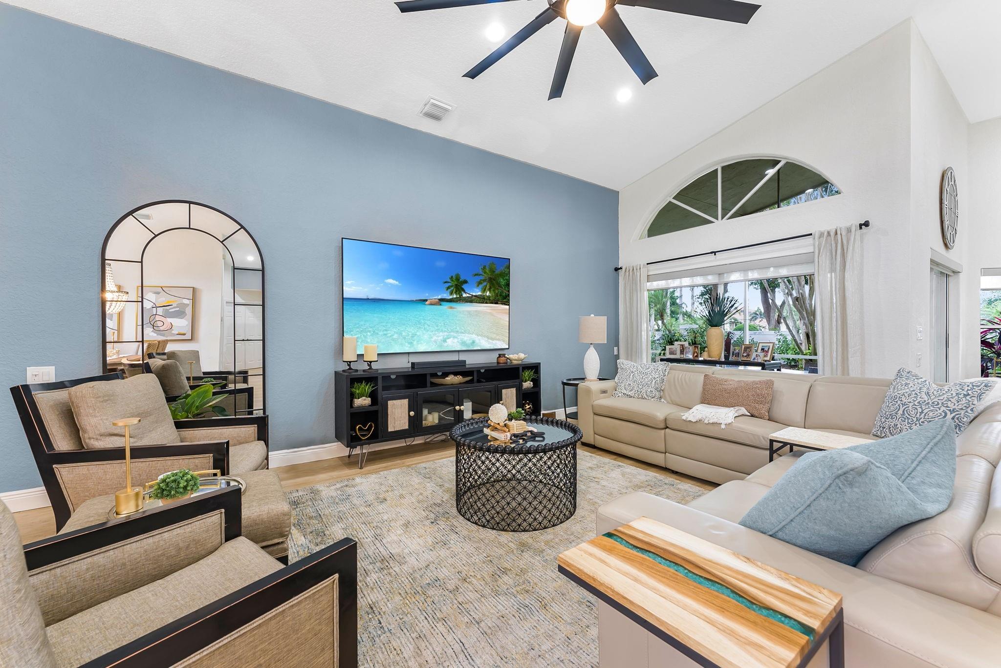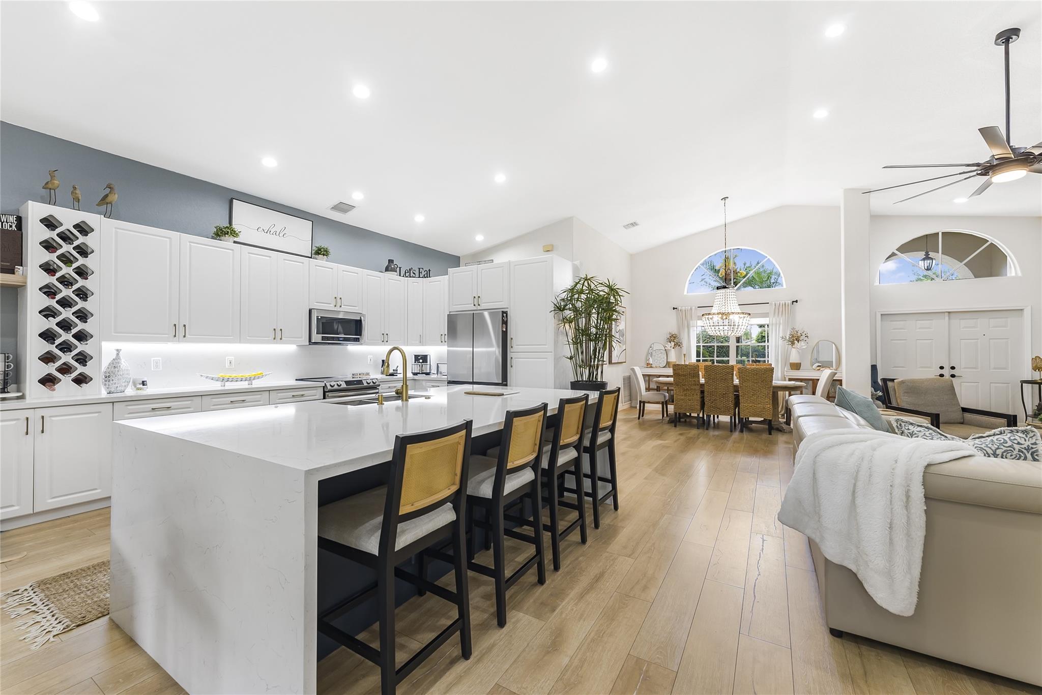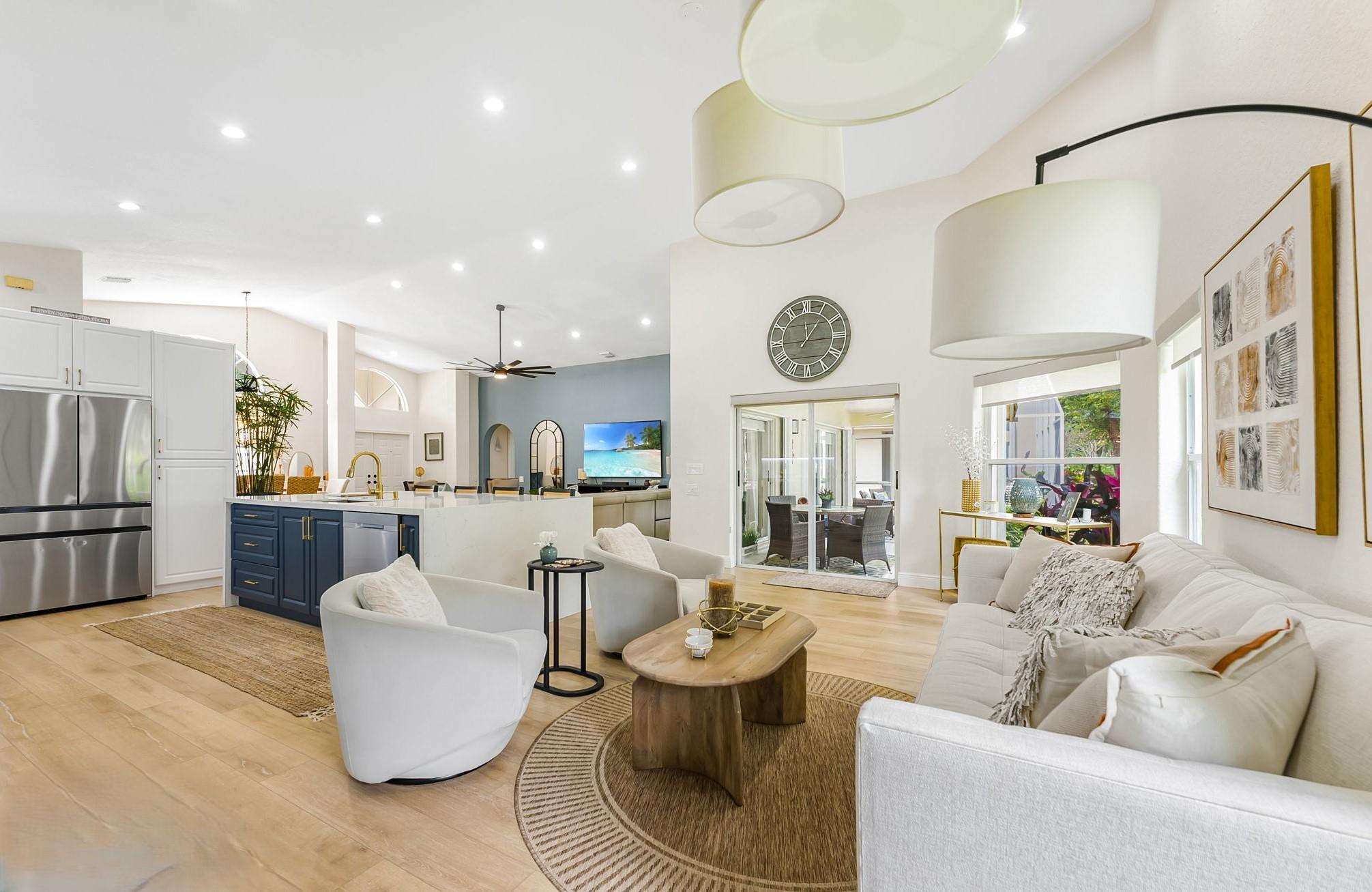 Welcome to this beautifully renovated 3-bedroom, 2.5-bathroom home in the exclusive 55+ subdivision of Lakeridge Falls inside the Westchester Golf community. Thoughtfully designed with both comfort and style in mind, this home features a beautiful open floor plan, soaring ceilings, spacious living areas, expansive windows that fill the space with natural light, and an impressive kitchen; ideal for entertaining! Step out onto the serene lanai, surrounded by lush greenery—perfect for peaceful mornings or relaxing evenings. This home offers the perfect blend of elegance, tranquility, and active living. NO MANADATORY MEMBERSHIPS REQUIRED!
