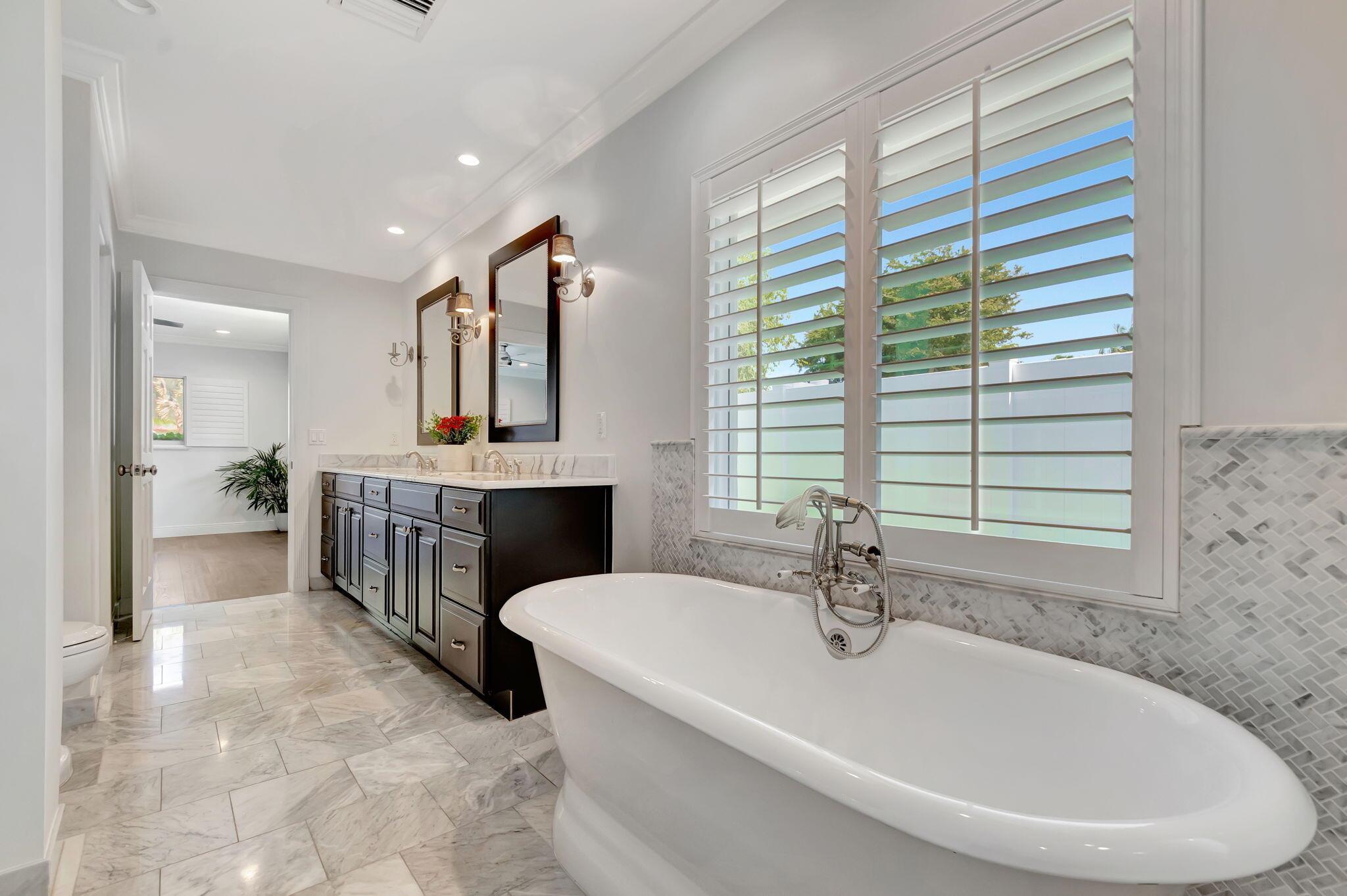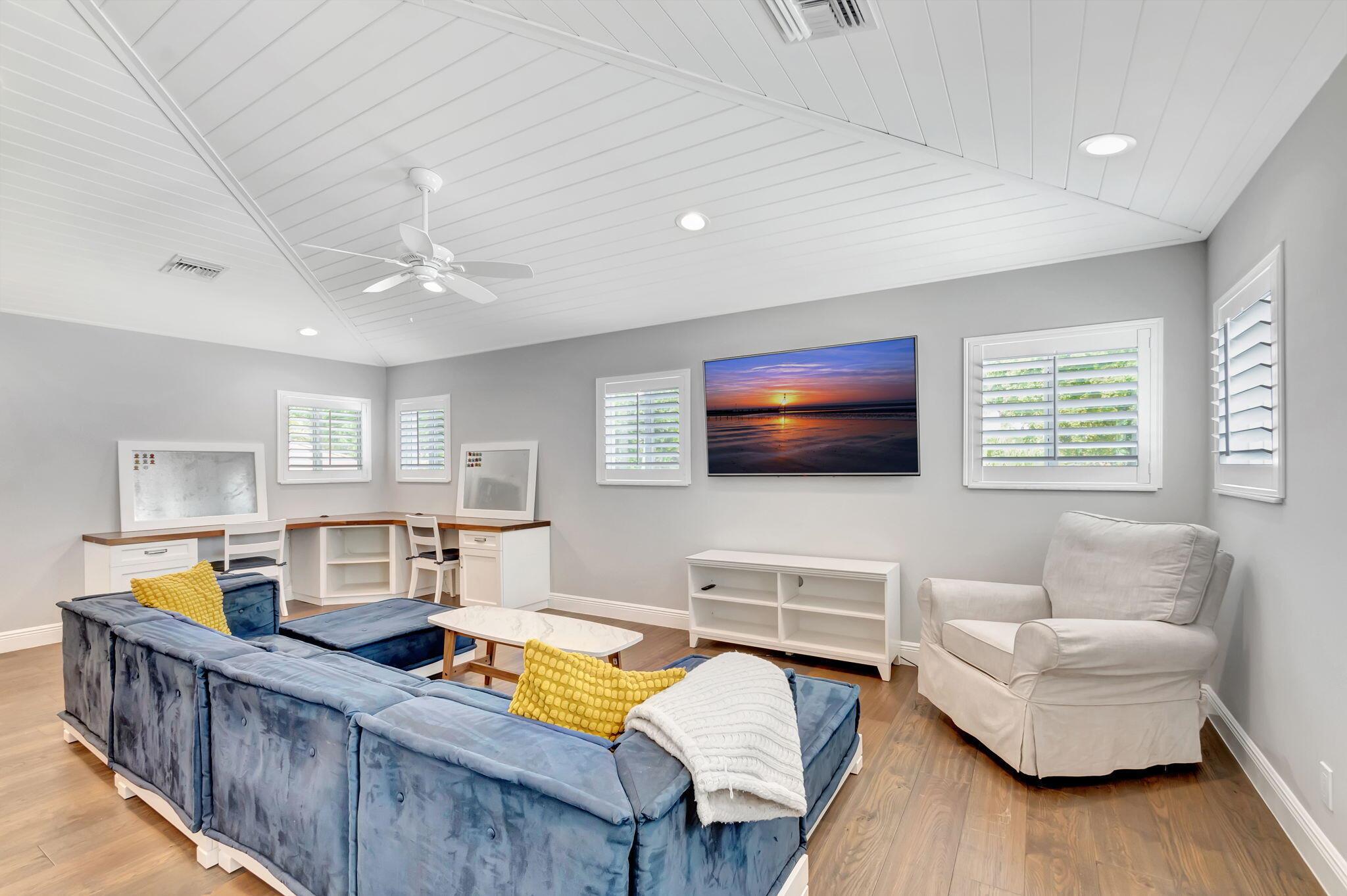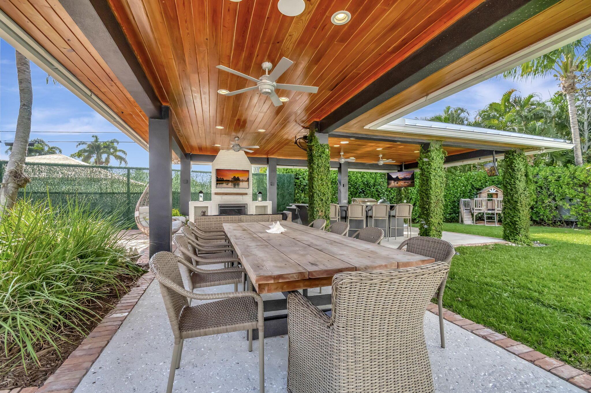 This breathtaking 6-bedroom, 6.5-bathroom Key West-style pool home blends timeless appeal with contemporary comfort, offering the ultimate Florida lifestyle. Situated on over 1/3 acre, this tropical oasis is perfectly situated in the heart of Lake Ida, and just minutes from renowned Atlantic Avenue and beautiful beaches. This home has been thoughtfully renovated with exceptional taste, showcasing a perfect balance of stylish design and modern functionality while offering options for multi-generational living. The ground floor includes 2 spacious primary bedroom suites, 2 guest bedrooms, a chef’s kitchen, living room, dining room, 2 family rooms, 2.5 guest bathrooms and a thoughtfully designed laundry room all accentuated by hardwood floors, old Chicago brick and custom tile floors. The