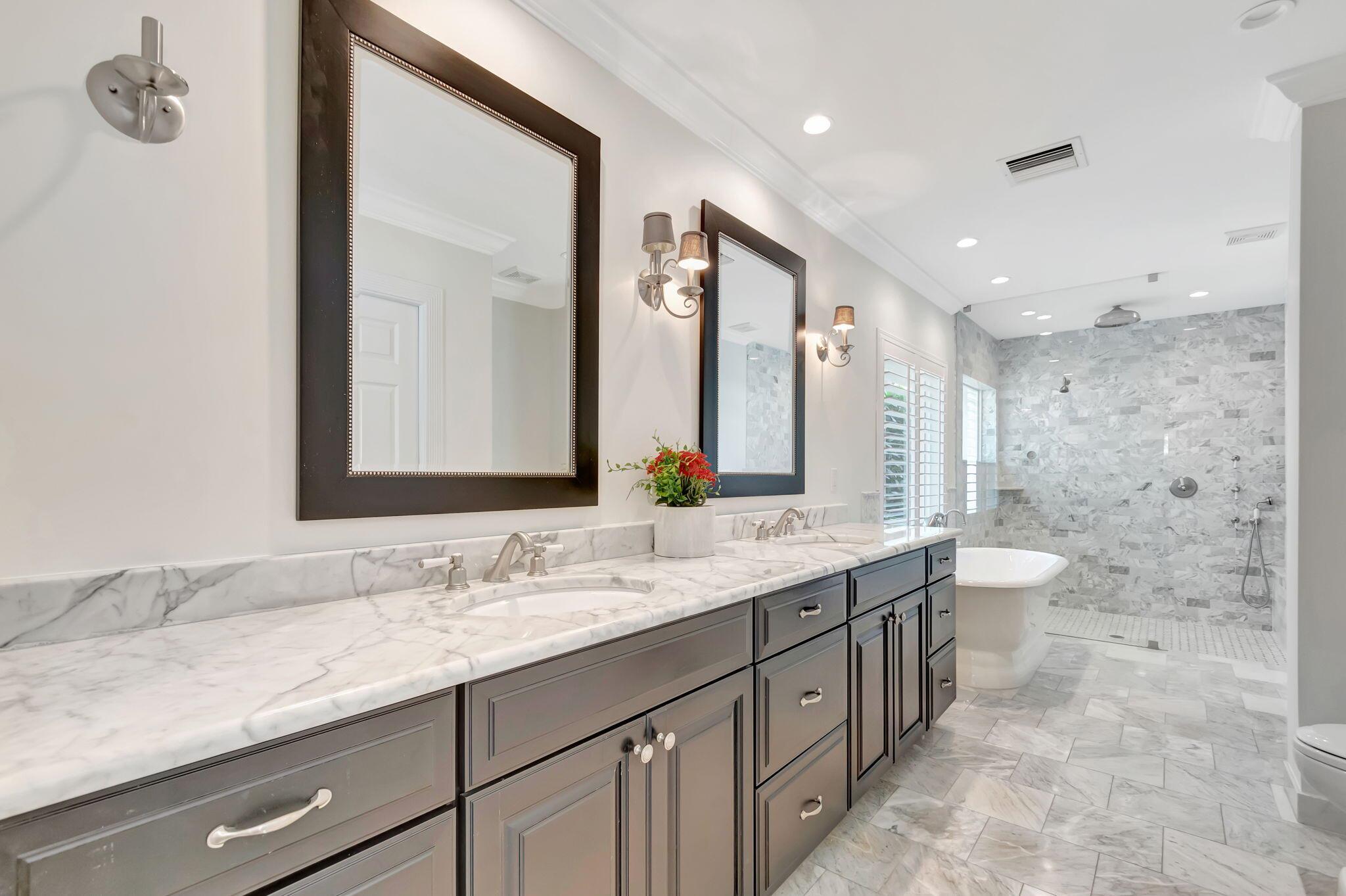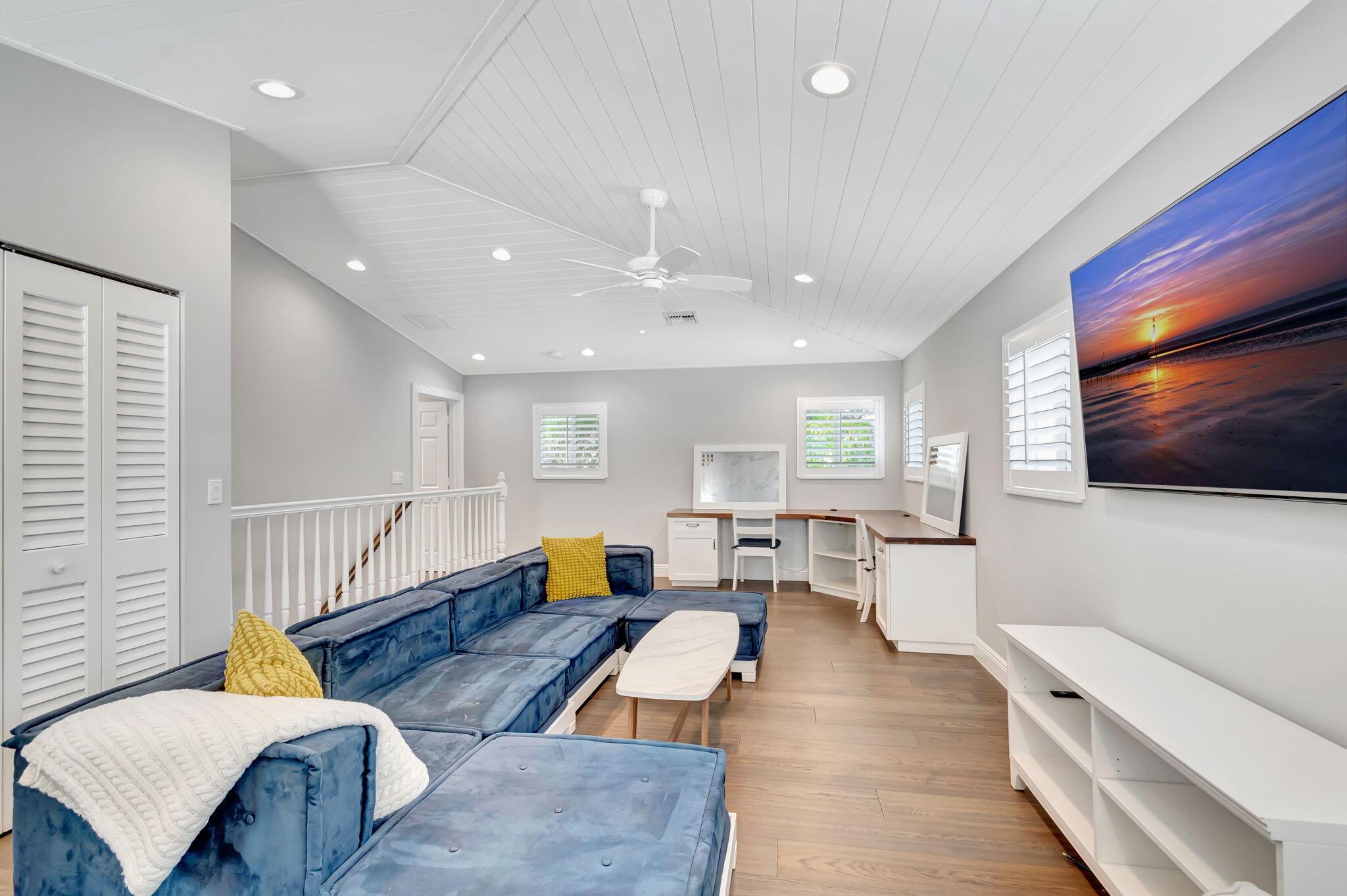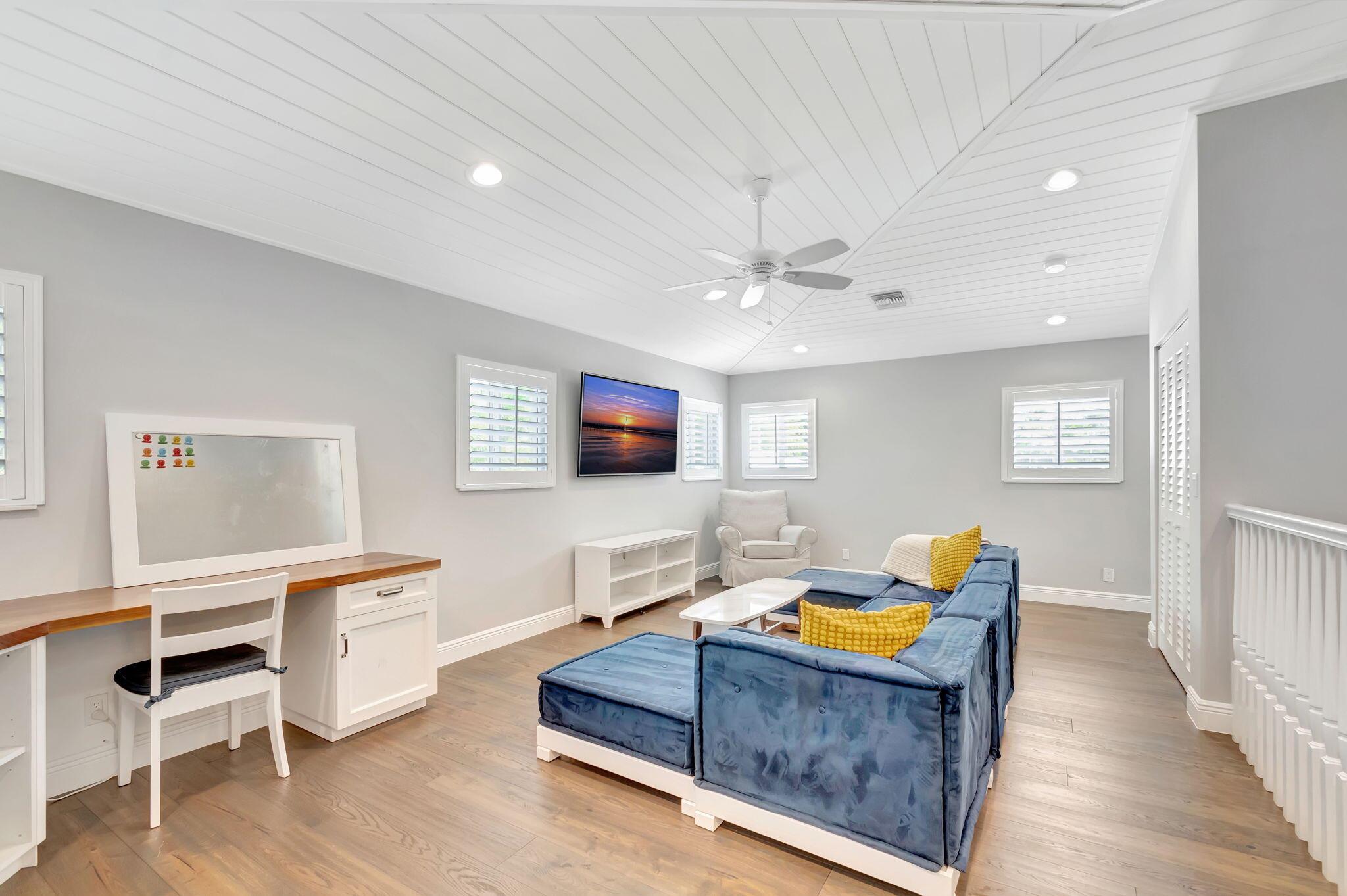 This breathtaking 6-bedroom, 6.5-bathroom Key West-style pool home blends timeless appeal with contemporary comfort, offering the ultimate Florida lifestyle. Situated on over 1/3 acre, this tropical oasis is perfectly situated in the heart of Lake Ida, and just minutes from renowned Atlantic Avenue and beautiful beaches. This home has been thoughtfully renovated with exceptional taste, showcasing a perfect balance of stylish design and modern functionality while offering options for multi-generational living. The ground floor includes 2 spacious primary bedroom suites, 2 guest bedrooms, a chef’s kitchen, living room, dining room, 2 family rooms, 2.5 guest bathrooms and a thoughtfully designed laundry room all accentuated by hardwood floors, old Chicago brick and custom tile floors. The