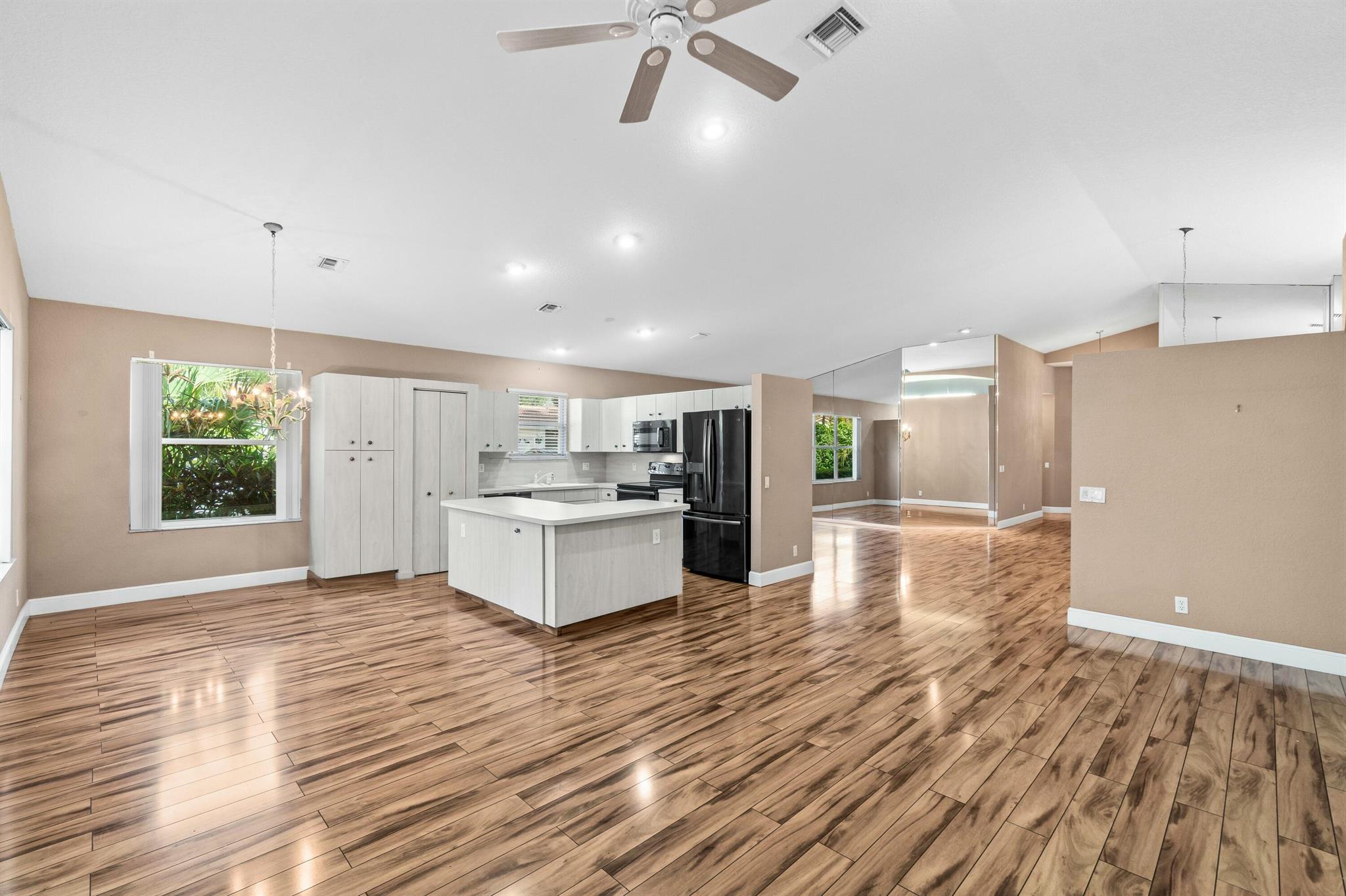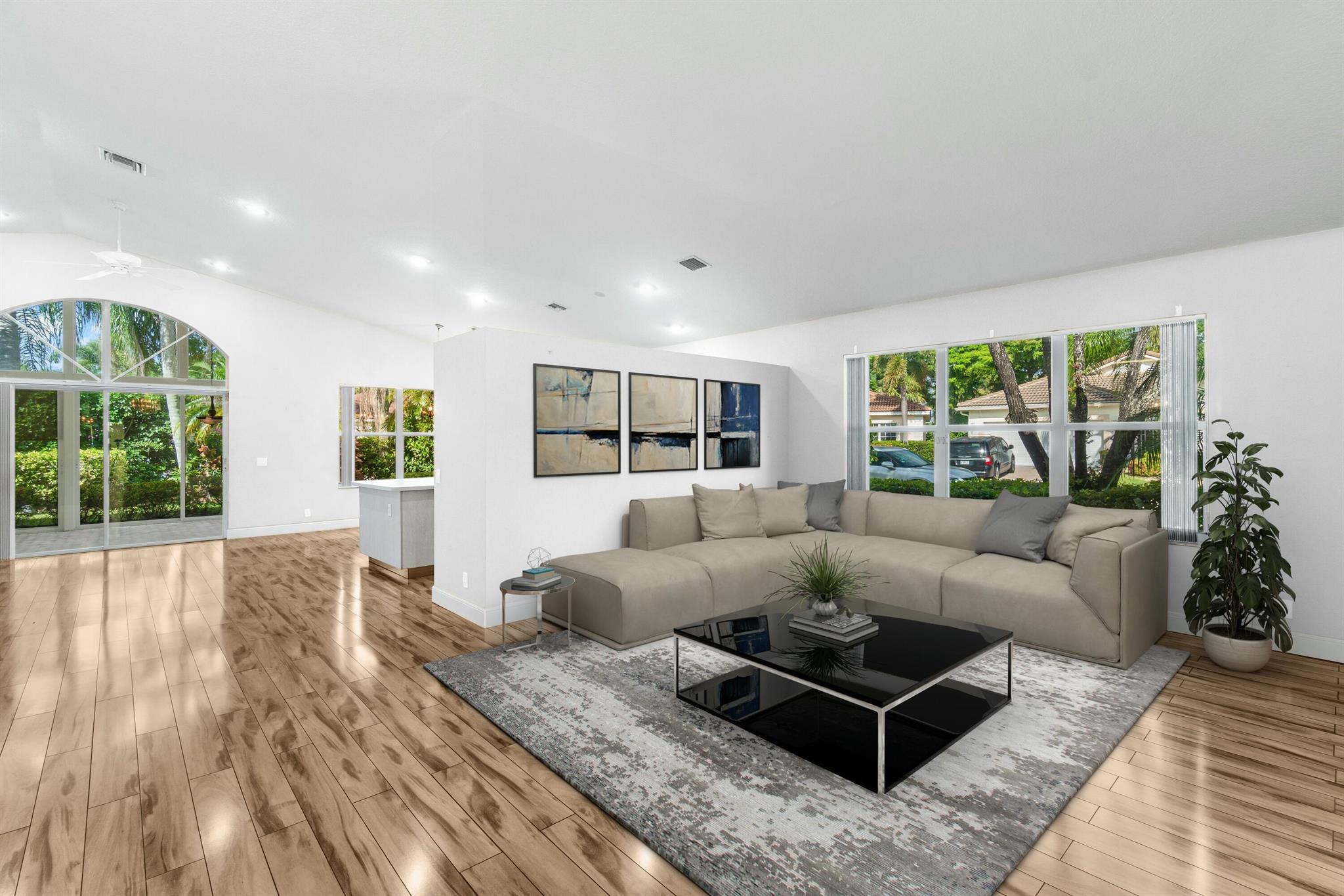 LOW HOA, newer Roof & AC, this oversize corner-lot offers an enclosed lanai with mini-split for year-round comfort and views of mature, tropical landscaping. With a newly renovated clubhouse, premier recreational facilities and amenities, this community embraces the active South Florida lifestyle. This single family home boasts an open floor plan, vaulted ceilings, large primary suite with 2 closets, 2 guest suites with walk-in closet as well as a 2-car garage with driveway.