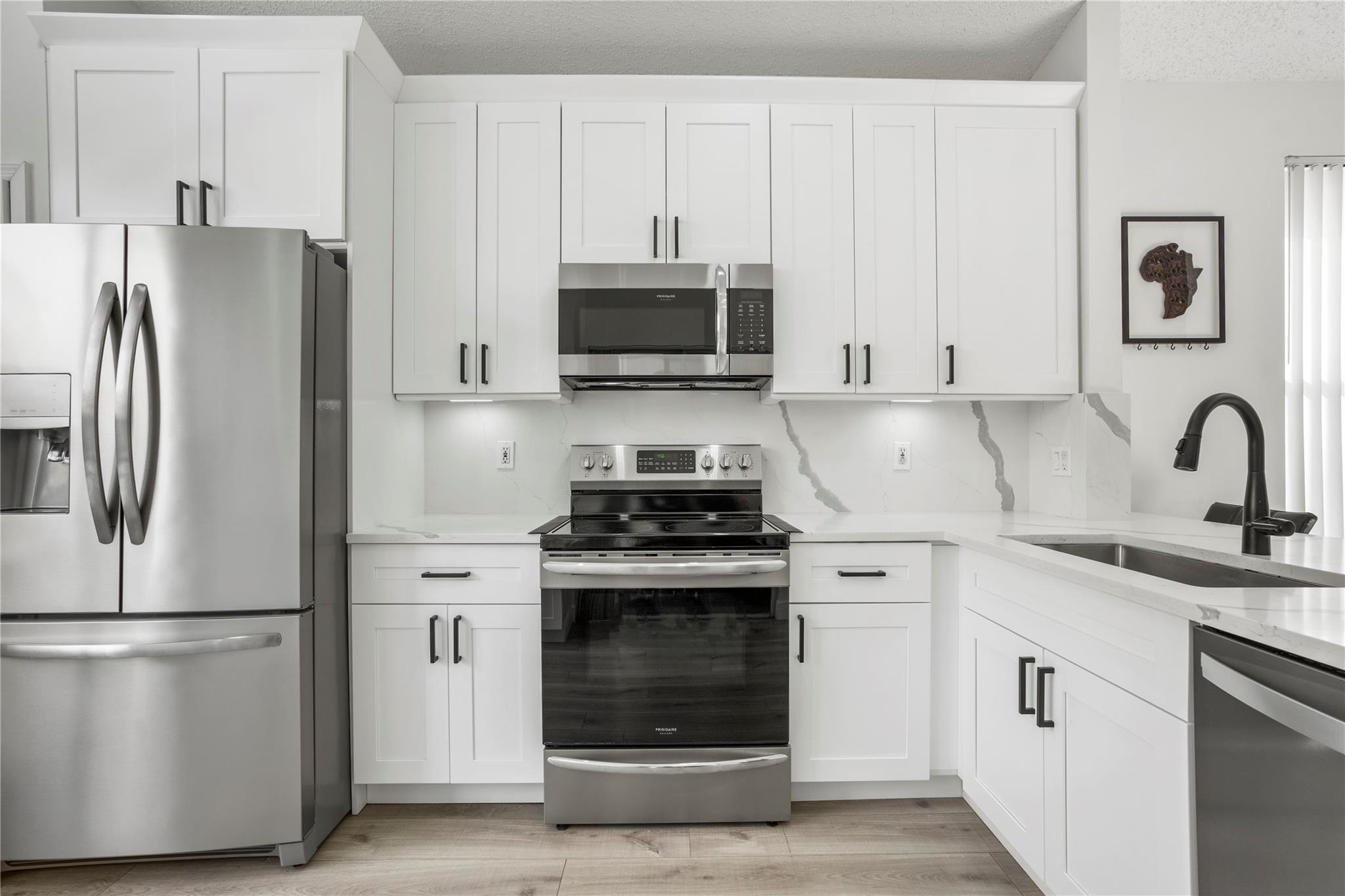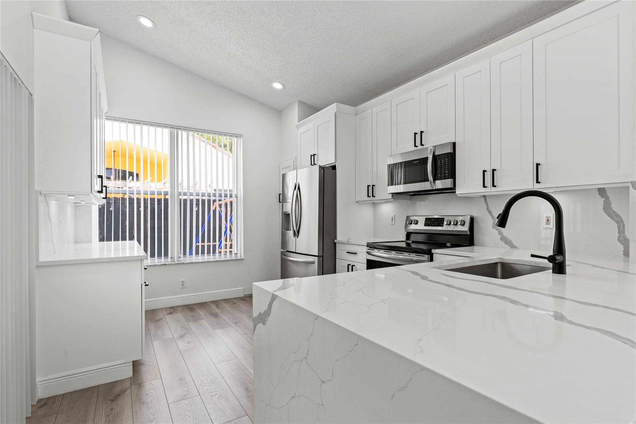 Home is located in a gated, resort-style community of Verona Lakes offers 1,734 sq ft of thoughtfully designed living space on a 5,050 sq ft lot. The kitchen remodel featuring quartz countertops, stainless steel appliances, white shaker cabinets, and tons of storage. The home also boasts new flooring, baseboards, downlighting, and fresh interior paint for a clean, modern look. The spacious primary suite includes dual walk-in closets with custom built-ins, a Roman tub, and a separate shower—your own private oasis.