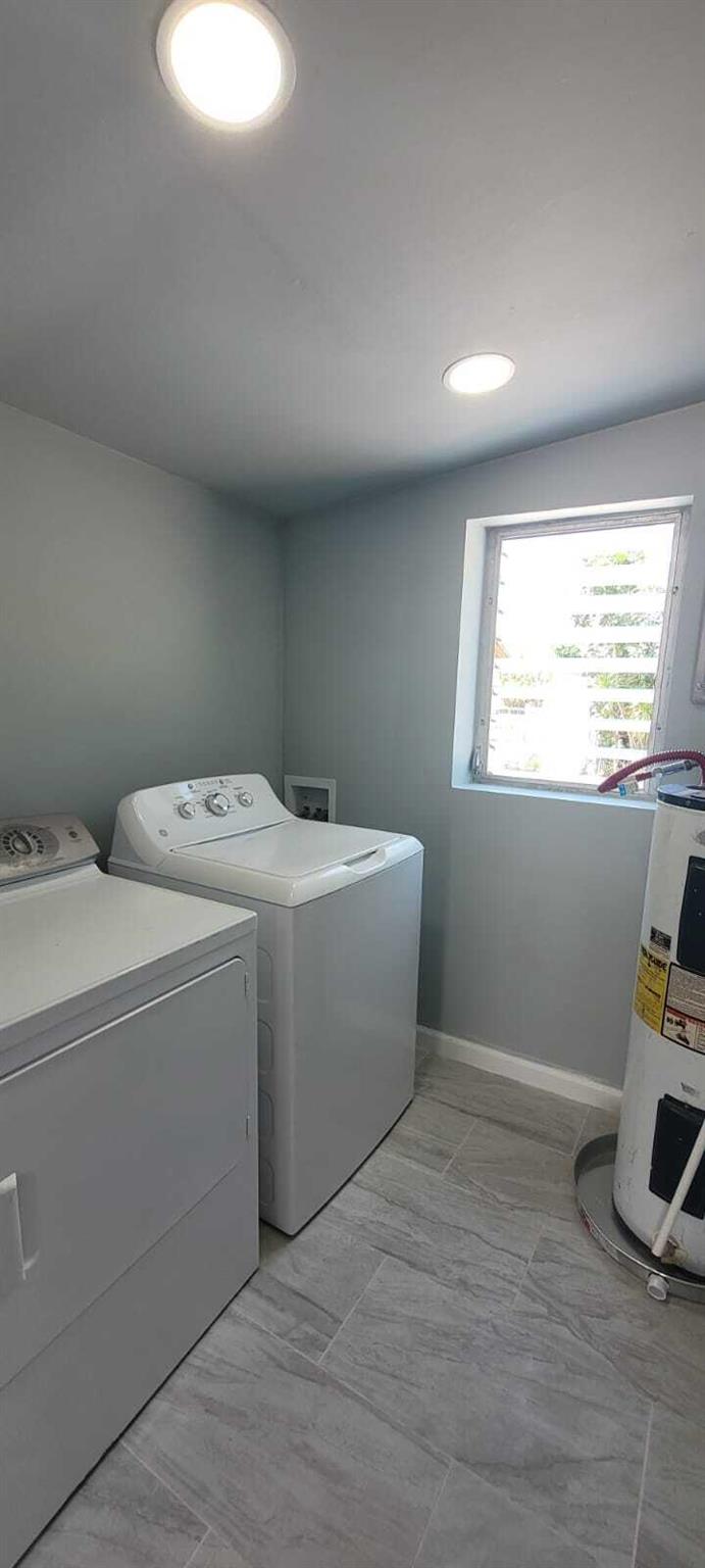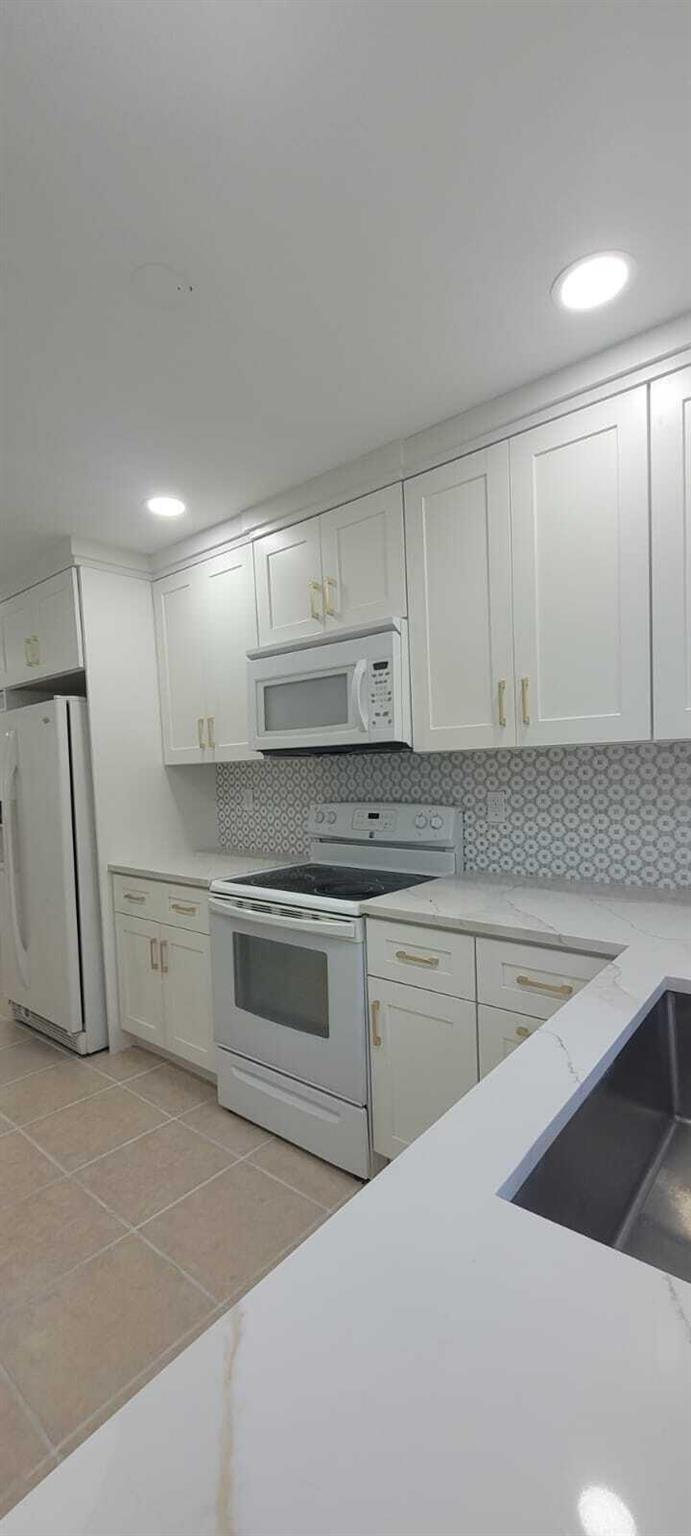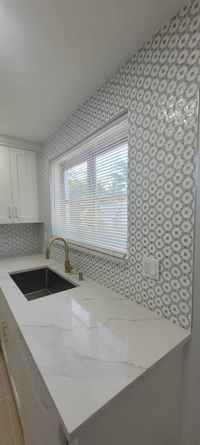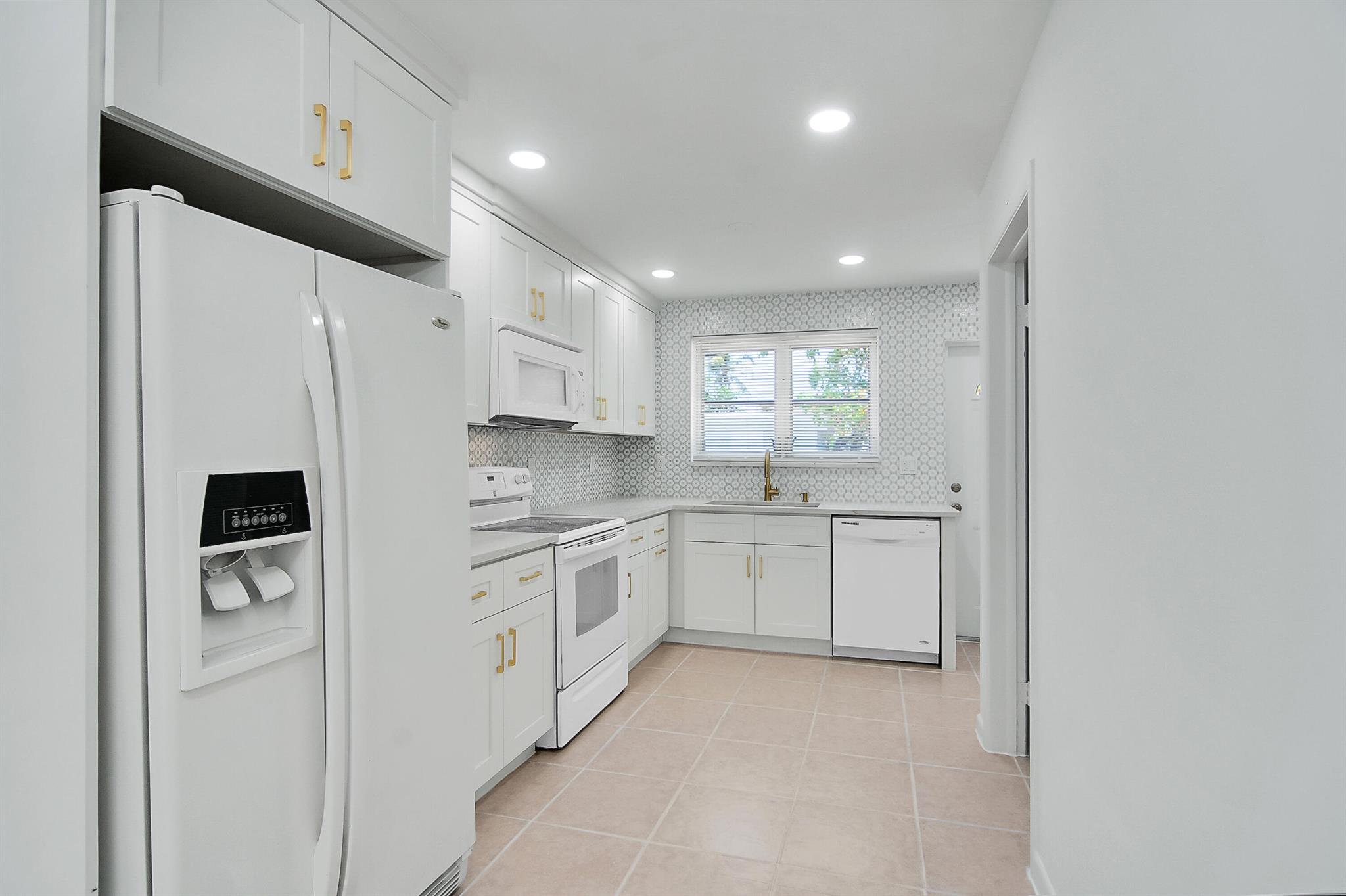 Beautifully remodeled 3BR/1BA home in Lake Worth featuring quartz countertops, premium tile backsplash, and a stunning modern bathroom with a frameless glass shower and matte black finishes. Enjoy a bright, open layout with LED lighting, tile flooring throughout, and fresh paint inside and out. The updated kitchen includes white shaker cabinets, modern hardware, and sleek appliances. Split A/C units provide efficient cooling. Exterior highlights include a 1-car carport, large fenced backyard with storage shed, and extra rear parking pad. Located on a quiet street just minutes from downtown, beaches, shopping, and major highways. Move-in ready and perfect as a primary home or investment!