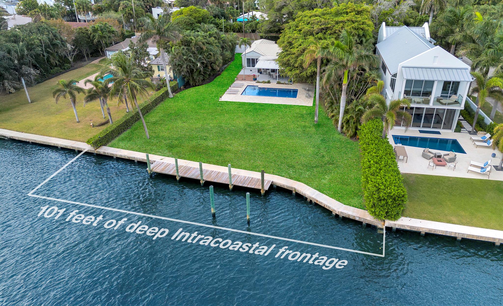 Welcome to this exceptionally rare gem on the exclusive Fisher Lane in the prestigious Palm Trail neighborhood of Delray Beach. Nestled on over a half-acre waterfront lot with 101′ of direct intracoastal frontage and 220′ of lot depth with private dock, this property offers endless potential for builders, investors, or end-users alike. This unique address of 1 Fisher Lane is perfectly situated on main channel of the intracoastal waterway and on a quiet ”private lane” with beautiful trees. With only three other homes on this secluded street, you’ll experience unparalleled privacy and tranquility.