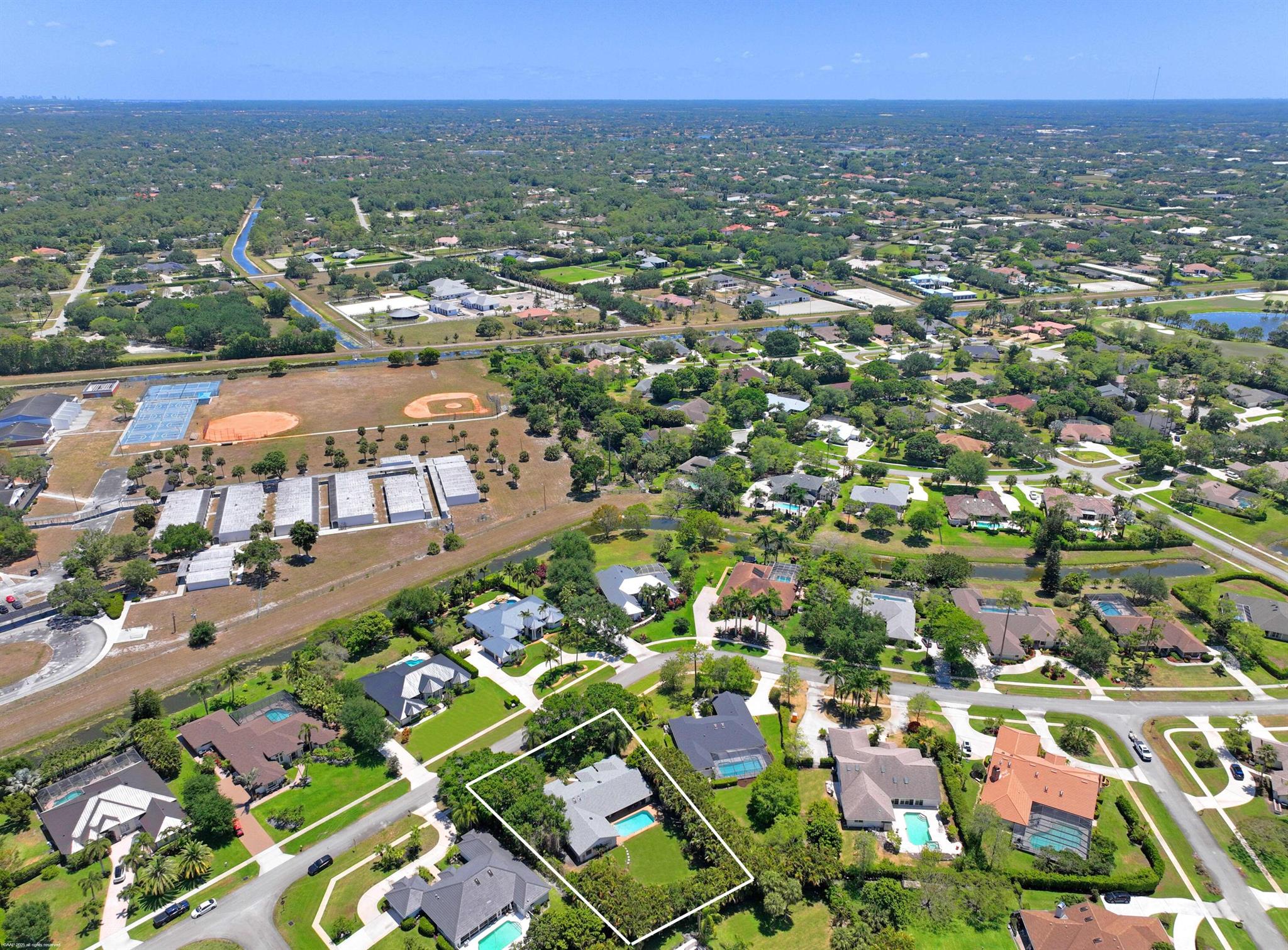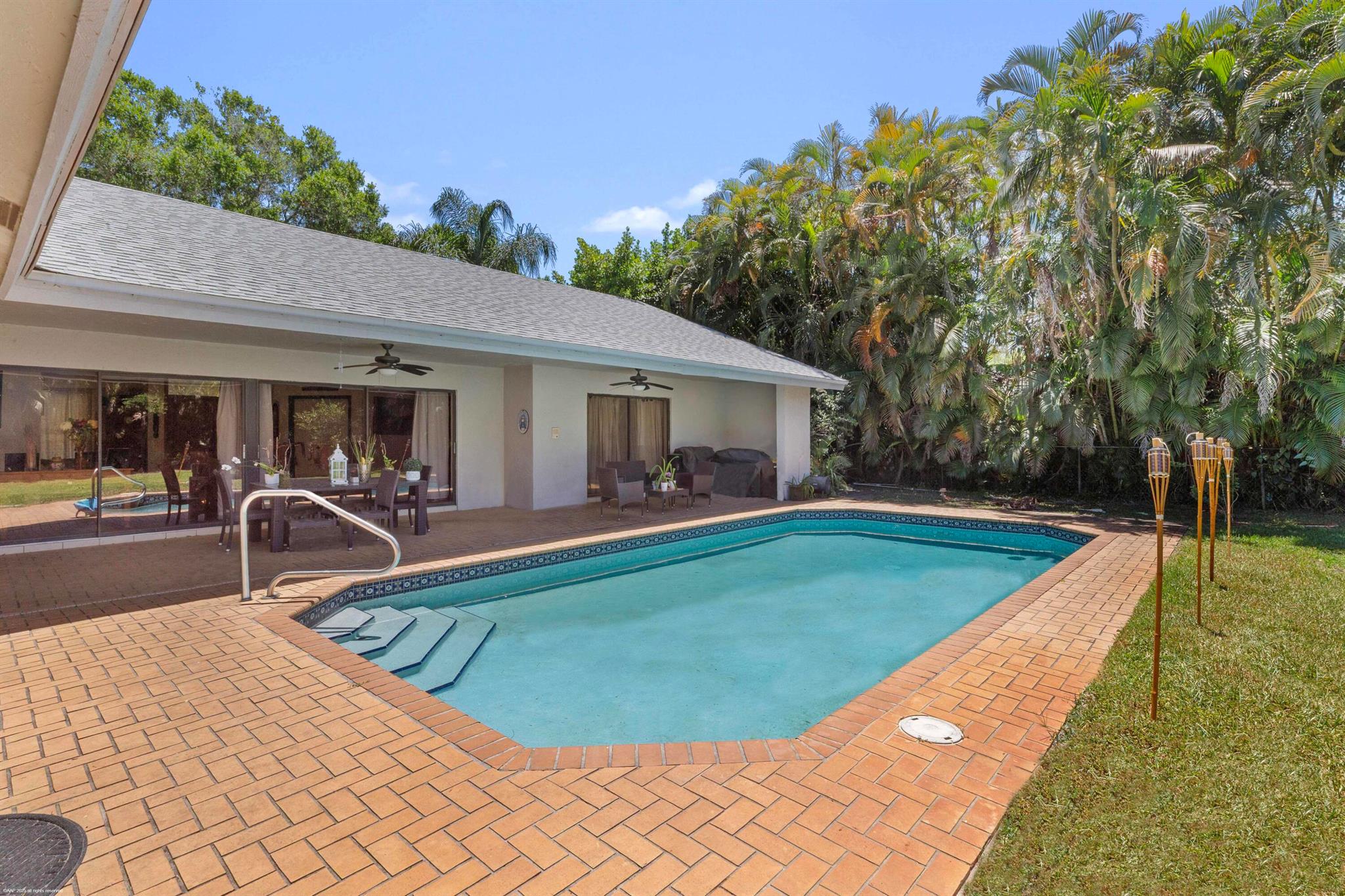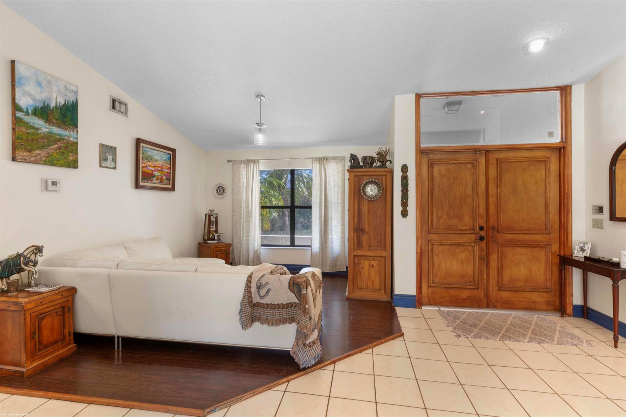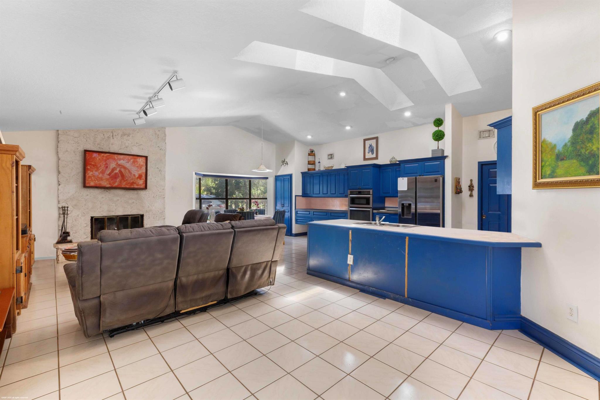 This single family pool home is nestled on a lush and tropical half-acre lot in the highly sought-after community of Meadow Wood and boasts a brand NEW ROOF (2025). 2 of the bedrooms have been converted into a separate apartment with its own kitchen and entrance, but also with direct access into the the main house (currently a total of 3bdr, 2 in the main house and 1 in the attached apt- can easily be converted back). Perfect for equestrian enthusiasts, the property is just around the corner from golf cart paths, providing easy access to WEF! The residence features a split floor plan with soaring ceilings and abundant natural light. There is an open dining area, living room a with coral stone fireplace plus a separate den.
