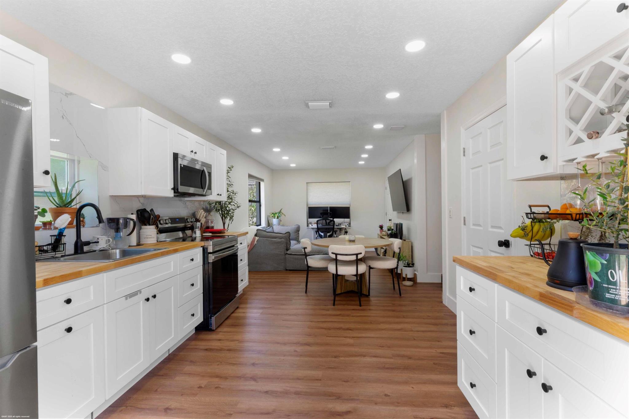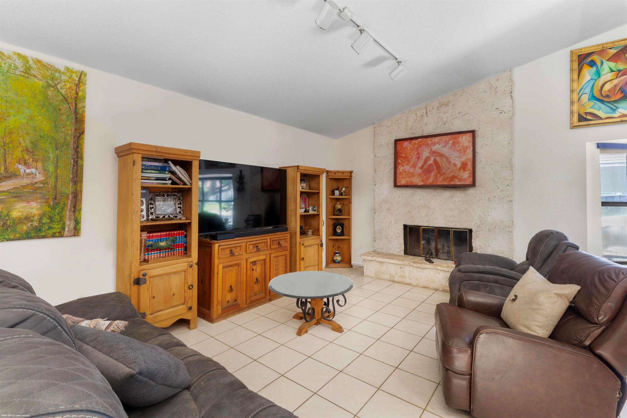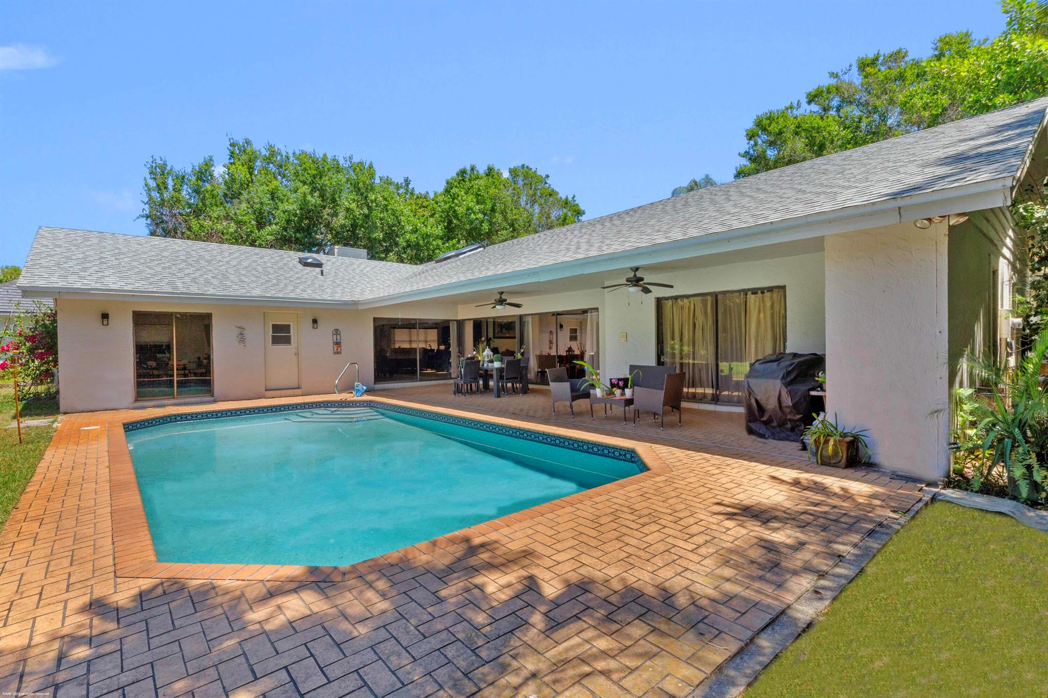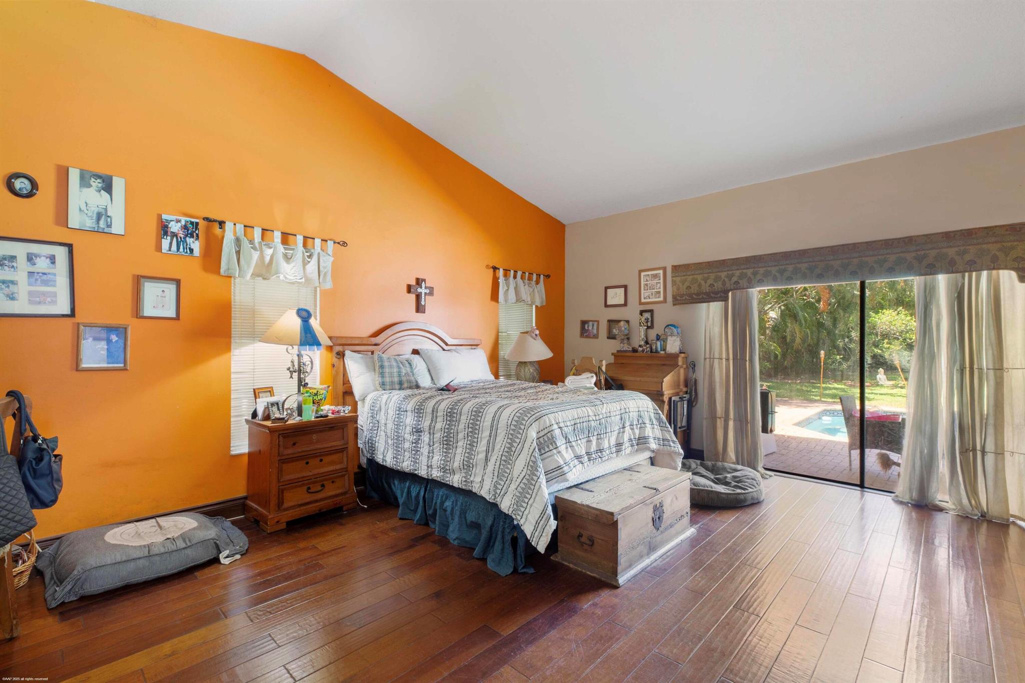 This single family pool home is nestled on a lush and tropical half-acre lot in the highly sought-after community of Meadow Wood and boasts a brand NEW ROOF (2025). 2 of the bedrooms have been converted into a separate apartment with its own kitchen and entrance, but also with direct access into the the main house (currently a total of 3bdr, 2 in the main house and 1 in the attached apt- can easily be converted back). Perfect for equestrian enthusiasts, the property is just around the corner from golf cart paths, providing easy access to WEF! The residence features a split floor plan with soaring ceilings and abundant natural light. There is an open dining area, living room a with coral stone fireplace plus a separate den.