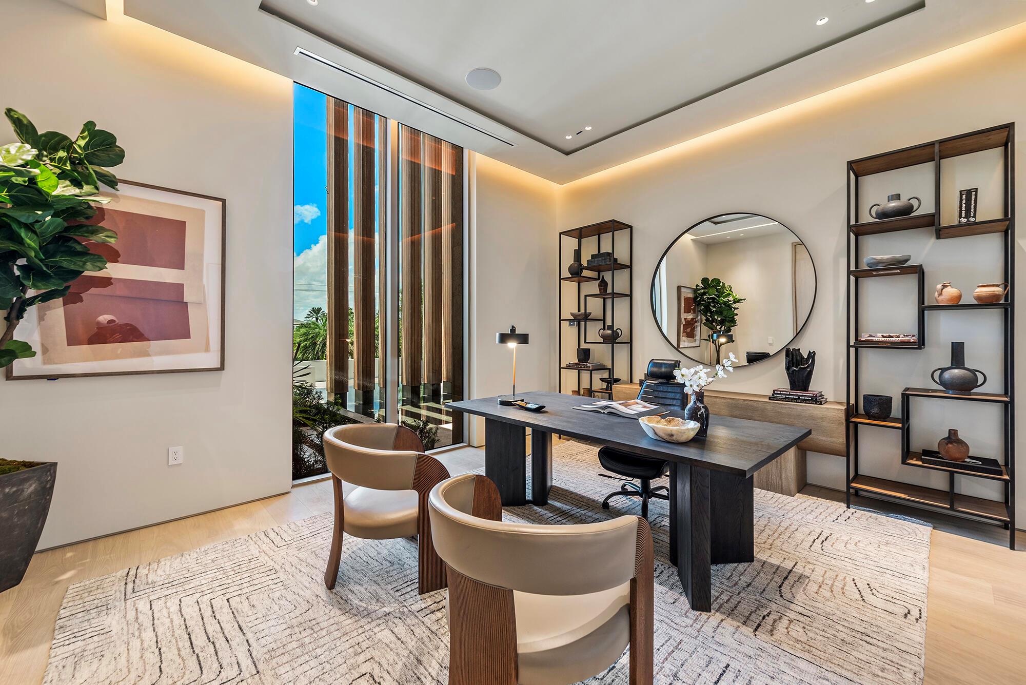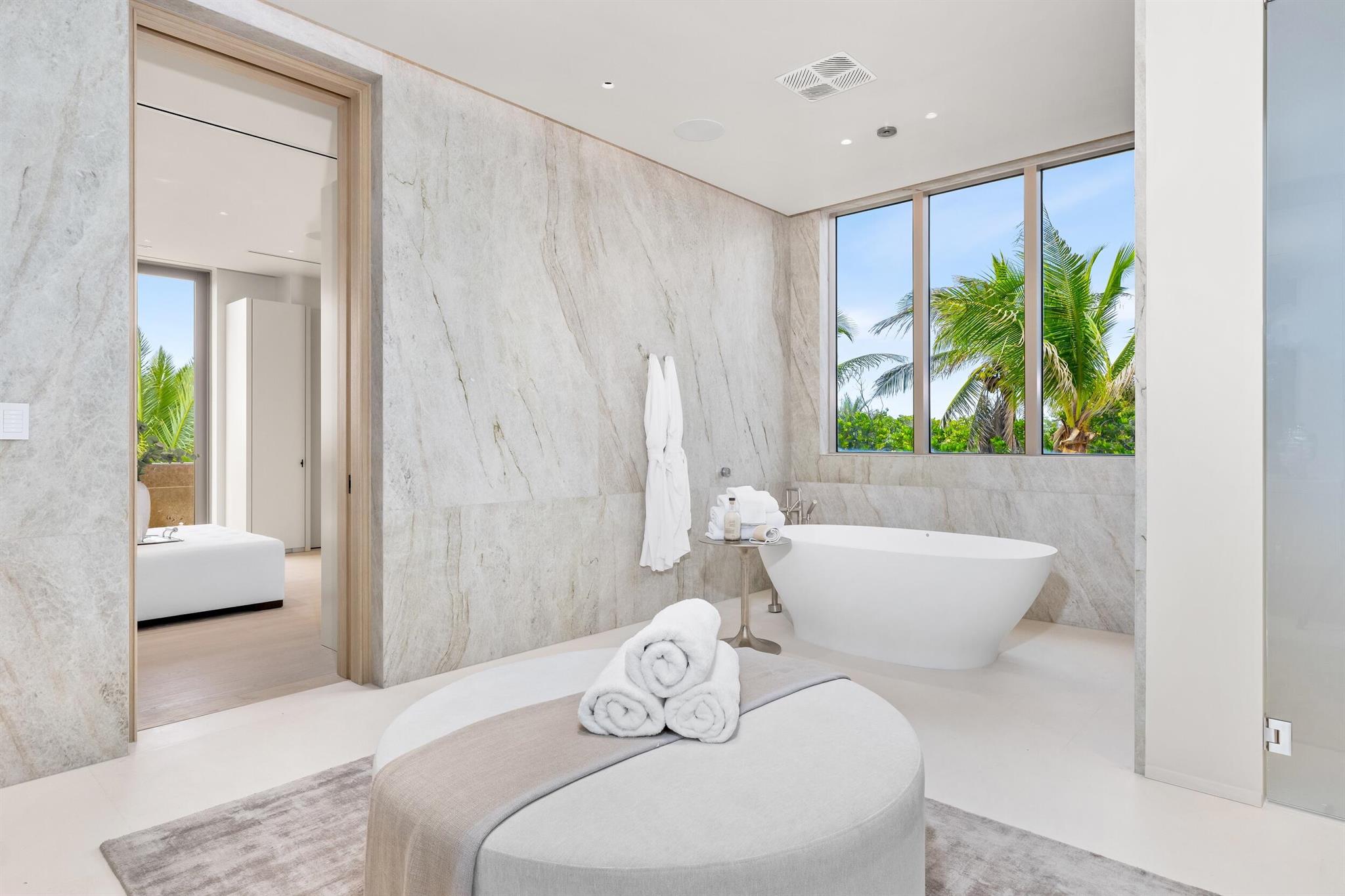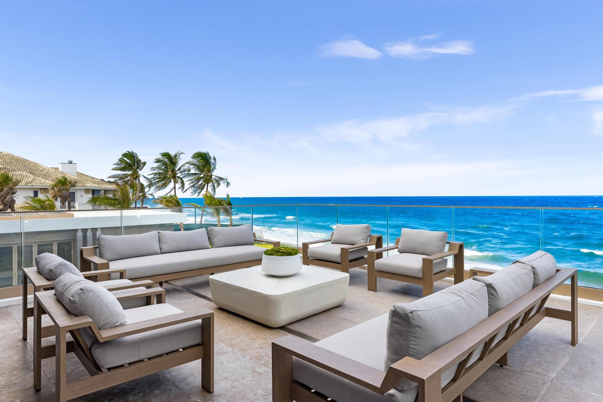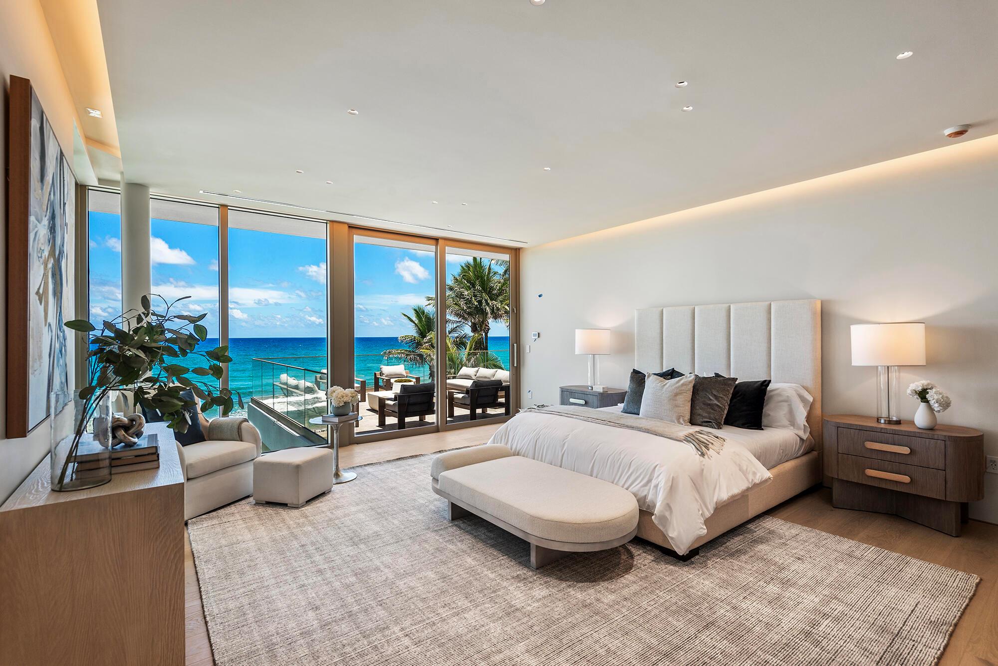 Owner will consider a property trade! Rare, custom contemporary estate home built in 2024. Situated on a premier 1.5+/- acre lot with 172 feet +/- on the Atlantic Ocean and the Intracoastal Waterway. This immaculate, newly constructed home is comprised of 3 stories with a gracious floor plan and commanding water views. No detail has been overlooked with stunning full slab Limestone & wide-plank oak floors, impact windows and doors, and custom finishes throughout. The grand motor court brings you to the gorgeous entry with beautiful fountains on either side. Soaring double-height foyer opens to light-filled waterfront living room. The main floor also features a gracious VIP suite with large en-suite bath and walk-in closet, formal dining room, family room and sunroom.