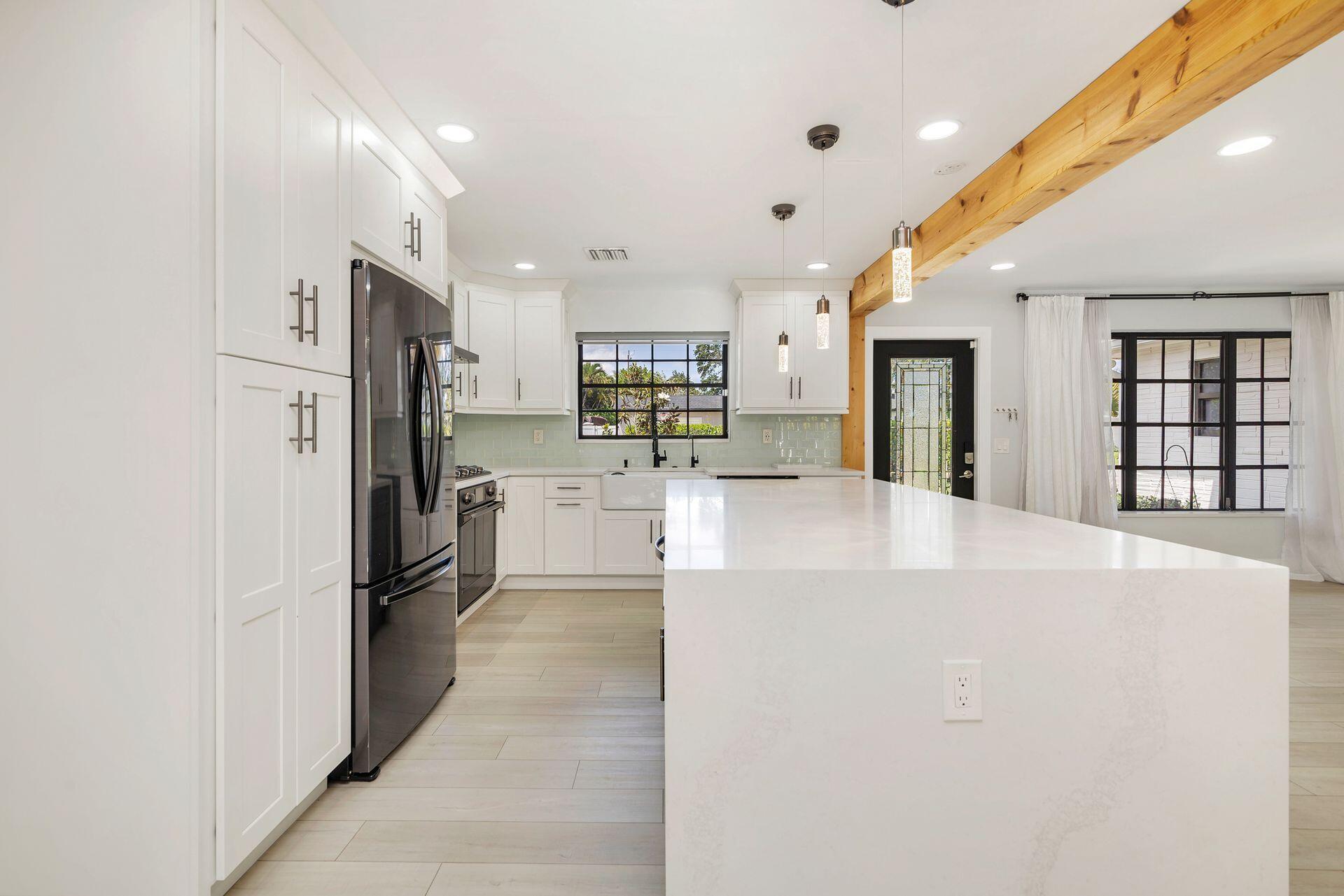 Beautifully renovated (originally 4) now 3 bedrooms, 3.5 baths, pool home on an oversized 11,375 sq ft lot in the popular lake community of Lake Clarke Shores! Upgraded Kitchen with high-end appliances, kitchen GAS range and large island with waterfall edges. New saltwater pool built in 2023. Lanai/covered patio area with exposed wood beams. Circular driveway with plenty space to park your trailer, golf cart. One of the original bedrooms was converted into what now is the large walk-in closet, now part of the primary bedroom suite.The garage was converted into an in-law guest quarters per code but without permits by prior owner. It has its own kitchen and full bath, ideal for guests, college kids, or separate office space. Roof 20+ years old no leaks but seller will give buyer credit