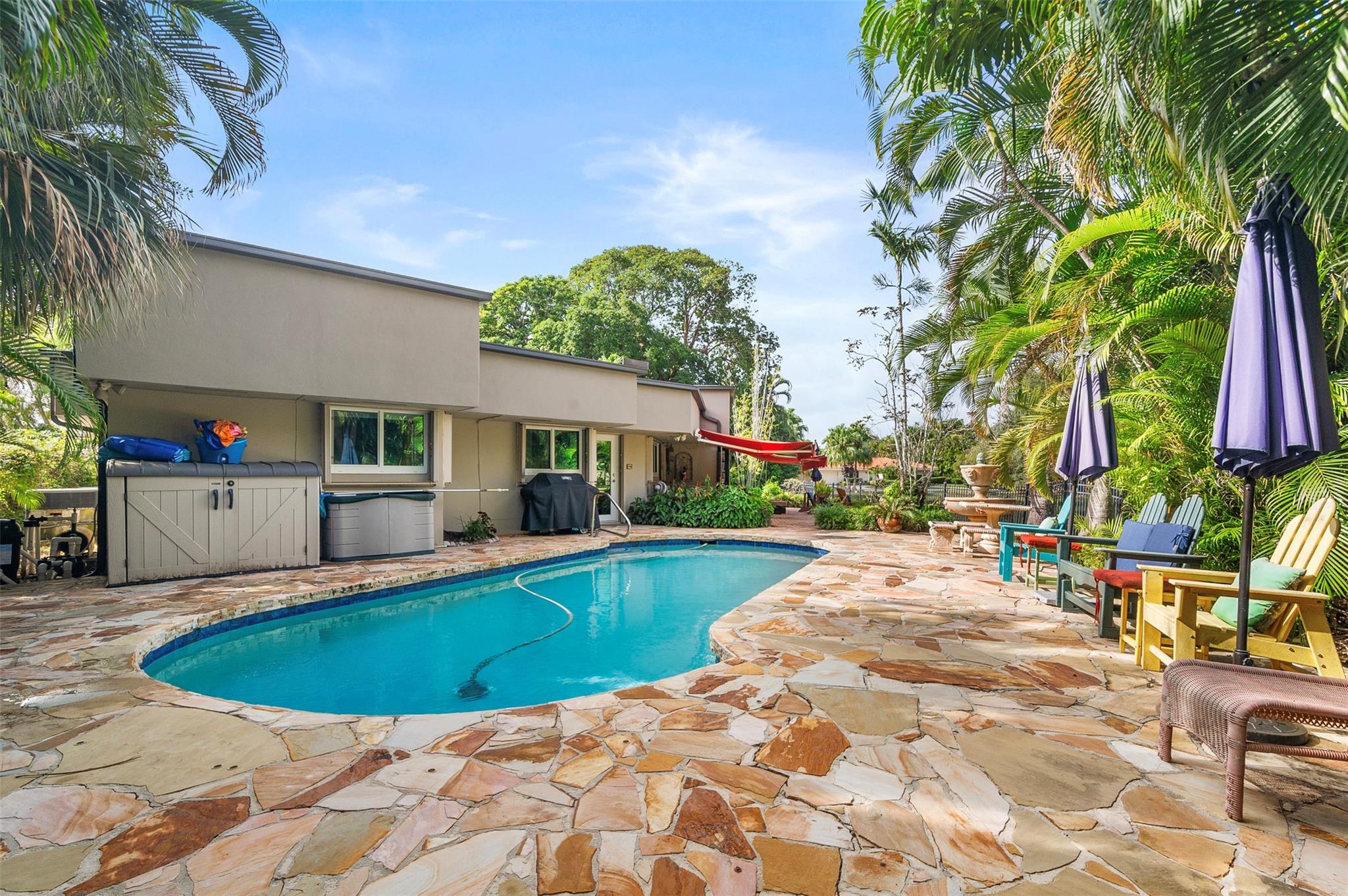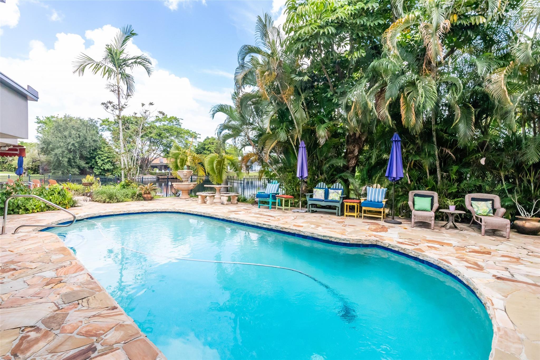 Welcome to Jacaranda Country Club, where beauty meets convenience. This beautiful 4-bedroom, 2.5-bathroom home offers a perfect blend of comfort and elegance. Situated on a spacious lot with no neighbor to the right, enjoy the added privacy and views provided by the adjacent park. Relax in a huge backyard; your private oasis with 170 feet on the water. Take a dip in the sparkling pool while soaking in the breathtaking point lake views.