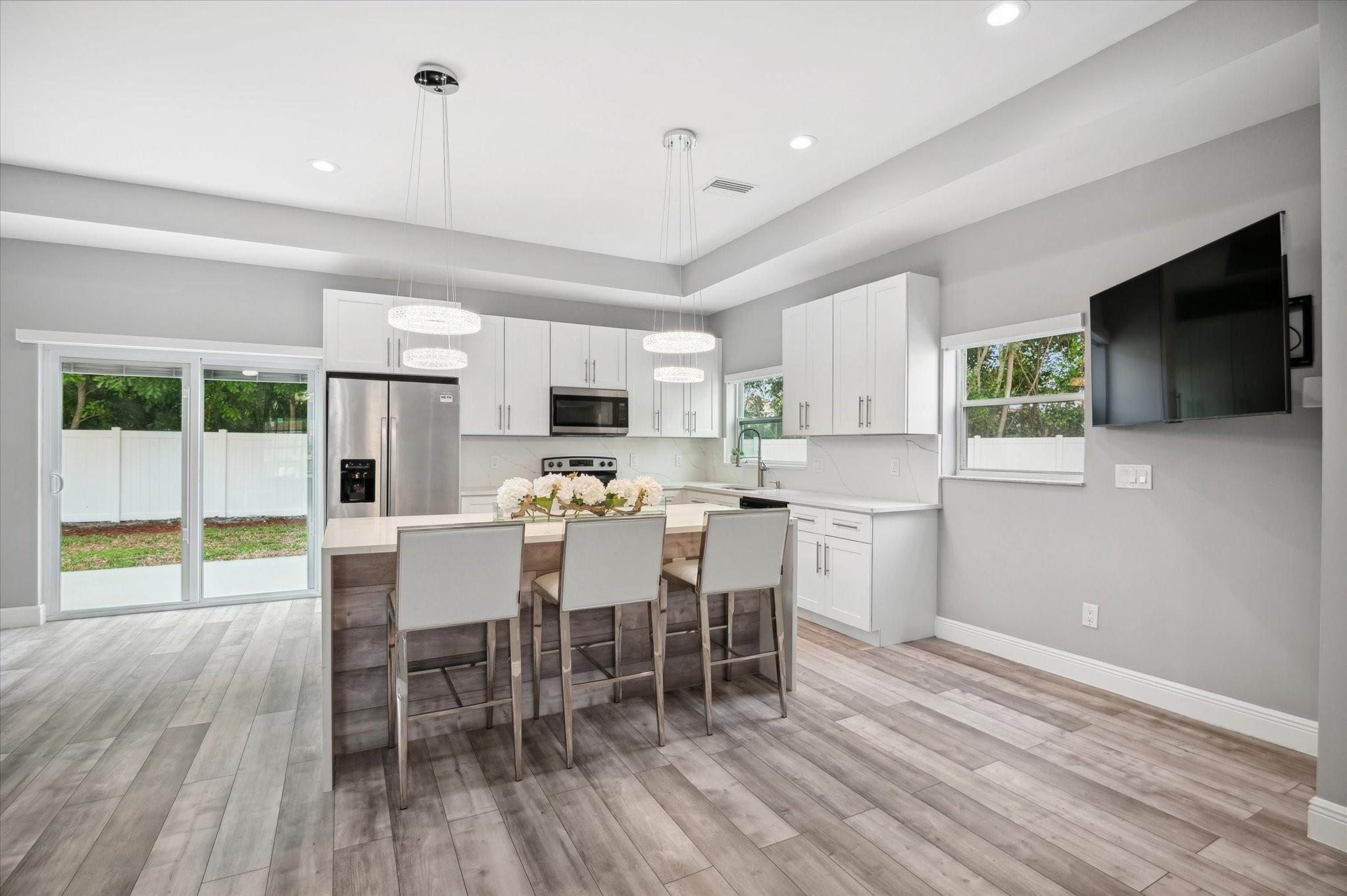 Stunning 4 bedroom, 2 bathroom meticulously remodeled open-concept living space filled with natural light, featuring high ceilings and elegant finishes that create a sophisticated yet inviting atmosphere. Newly renovated kitchen boasting top-of-the-line stainless steel appliances, sleek quartz countertops, & spacious island, perfect for entertaining guests. Primary suite serves as your private retreat, with a spa-like en-suite bathroom designed for ultimate relaxation. Full impact windows, brand new fenced in yard & brand-new roof. Prime West Boca Location! HOA Includes an Olympic-sized heated pool, tennis & pickleball courts. Plus, this pet-friendly community/no HOA application required! Top-rated school zone, including Hammock Pointe Elementary and Spanish River. Come make this your home