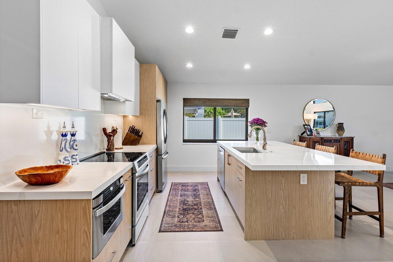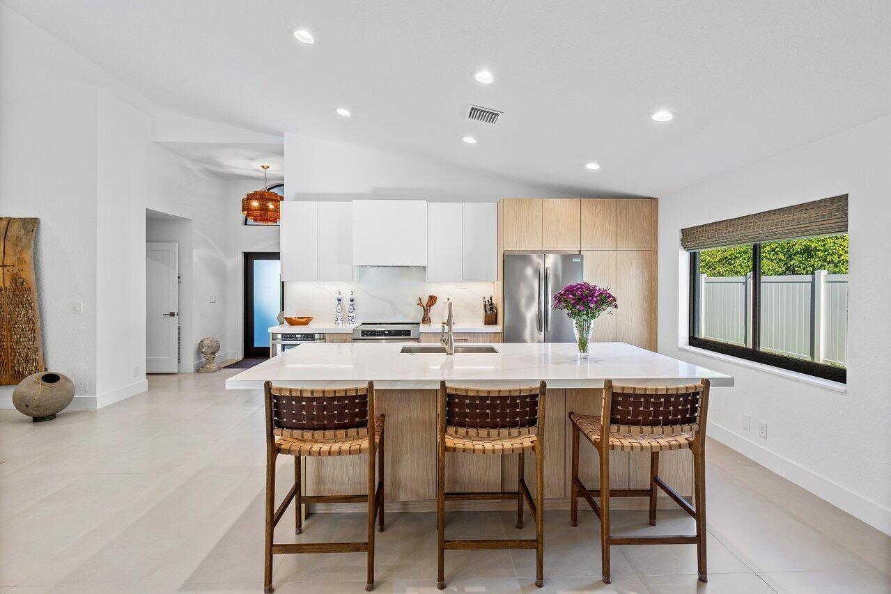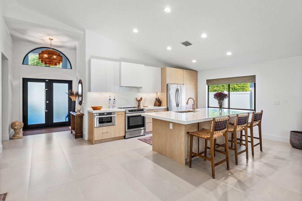 Welcome to 1175 Sea Grape in the charming Sabal Lakes community of Delray Beach. This inviting single-story home has nearly 2,000sf with 3 beds/2 baths and open concept living area. The highlight is a modern, open kitchen with a central island, SS appliances, and sleek finishes. You’ll love the 2024 roof and impact windows and doors, oversized porcelain flooring, modern interior doors and trim, and a custom built-in closets throughout. Extra perks include fresh landscaping and paint, newer water heater, and Trane A/C system. Full home water filtration system, custom window treatments, white 6′ privacy fence adjacent to the easy-access community pool, plus privacy tinting on the hurricane impact glass front doors.