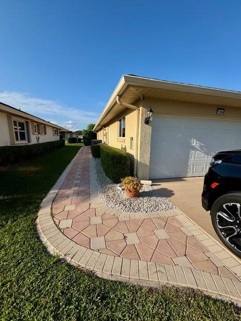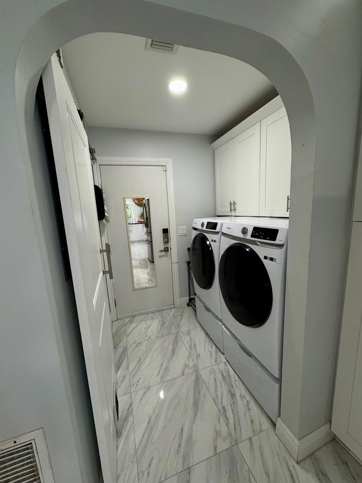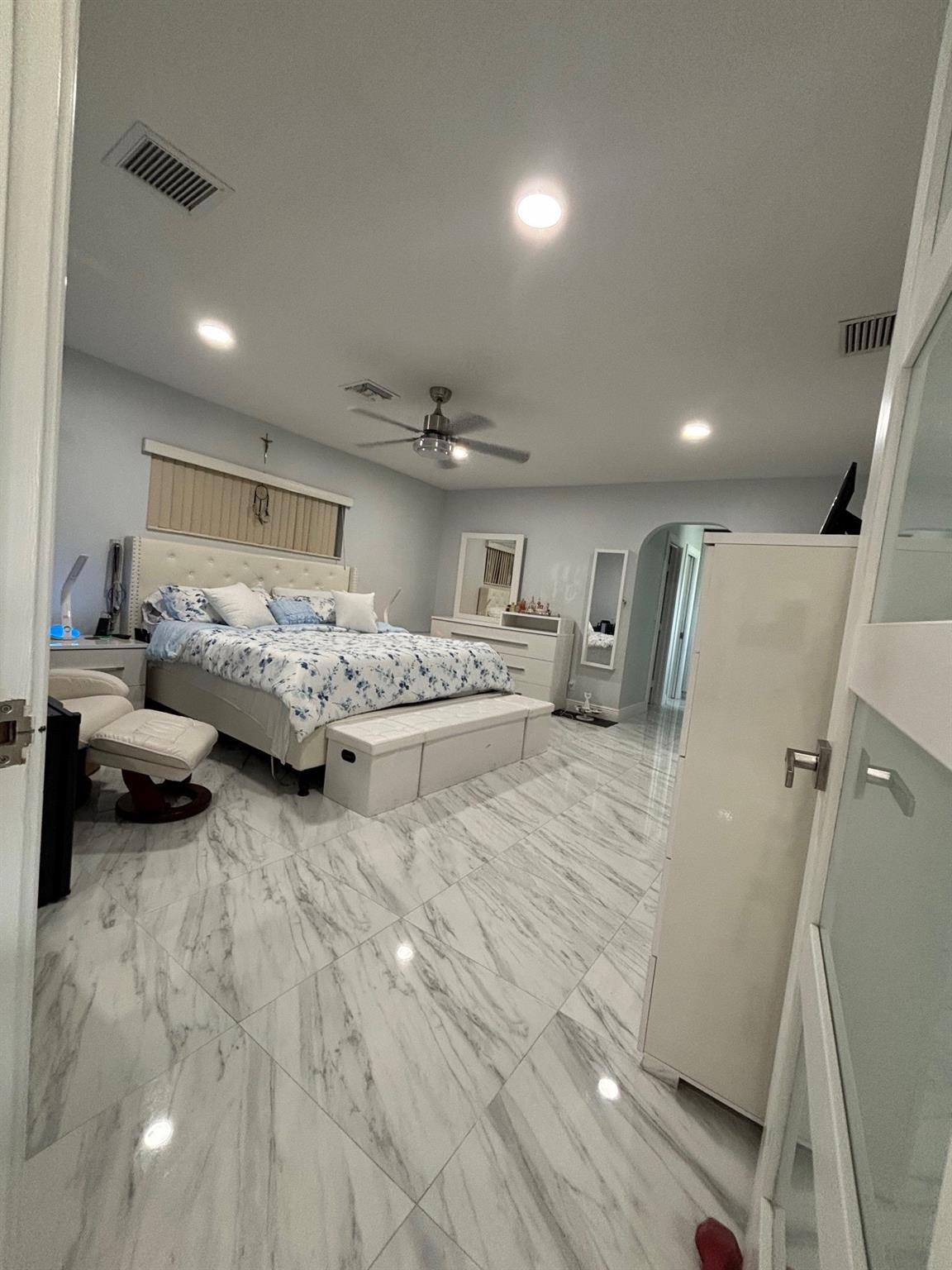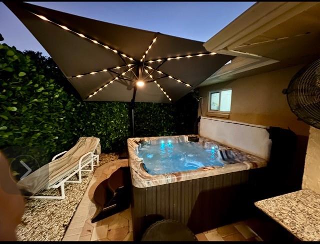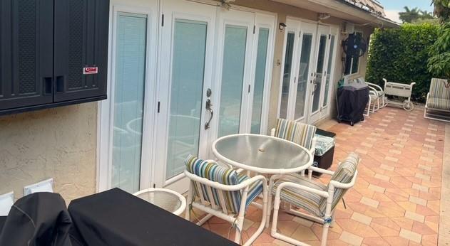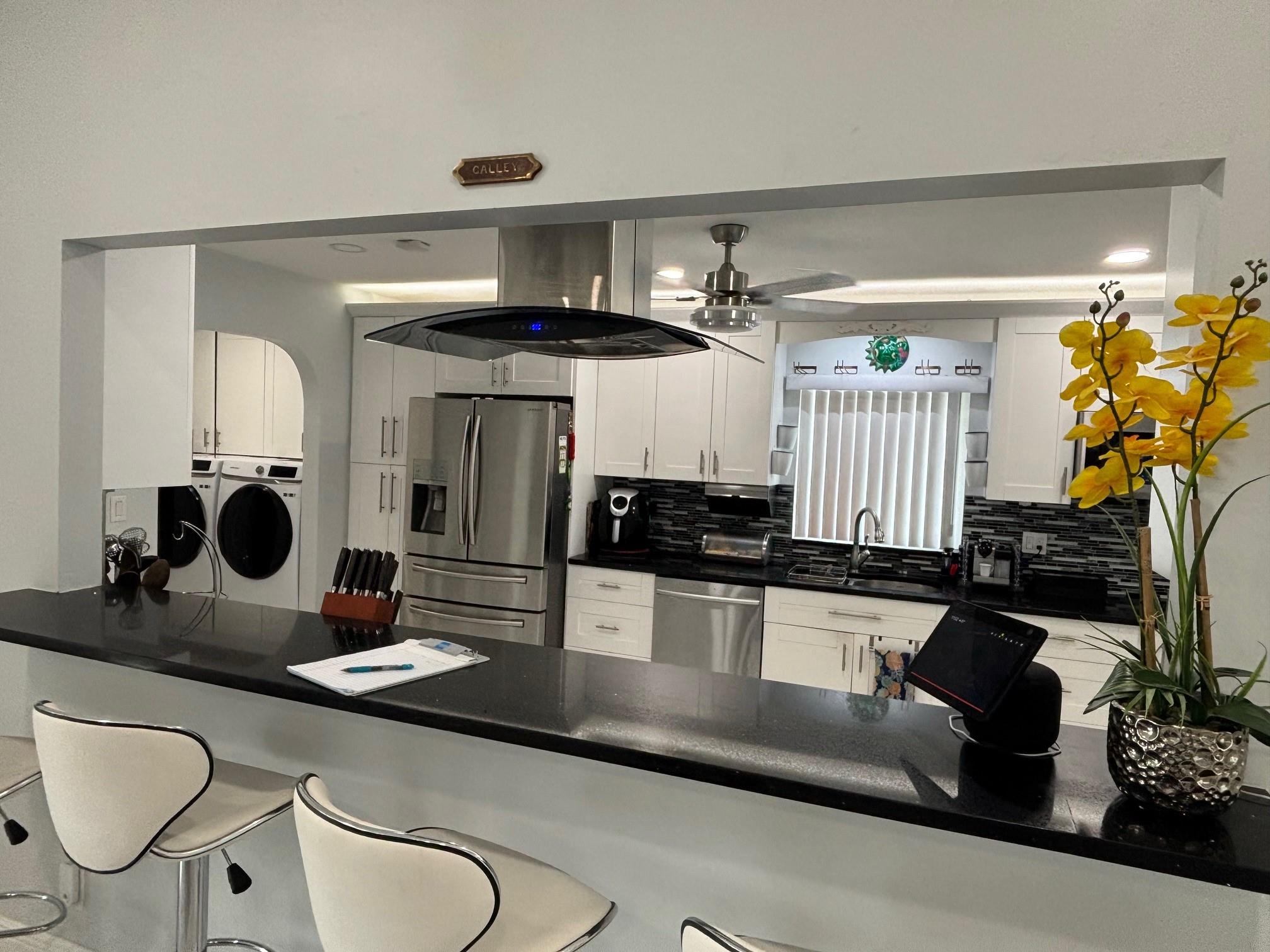 This beautifully upgraded modern home offers 3 spacious bedrooms & 2 sleek bathrooms. All-impact windows & doors, including French doors in the back, a front door with keypad entry, & an impact garage door. The sellers are in the process of installing a new roof. Upgraded kitchen adds a touch of luxury, and features like Alexa-compatible switches, ceiling fans, smart garage opener, 6 security cameras, and motion sensors throughout the home bring modern to your fingertips. Relax outdoors with a private plug-and-play jacuzzi, paved backyard and courtyard, electric retractable awnings, outdoor wall fans, and included patio furniture front and back. The courtyard features a water fountain. Shopping, dining, entertainment,5 miles from the beach! 55+ community. Emotional support animals welcome.