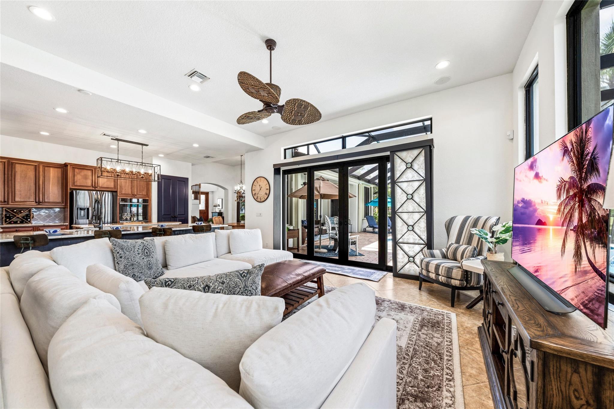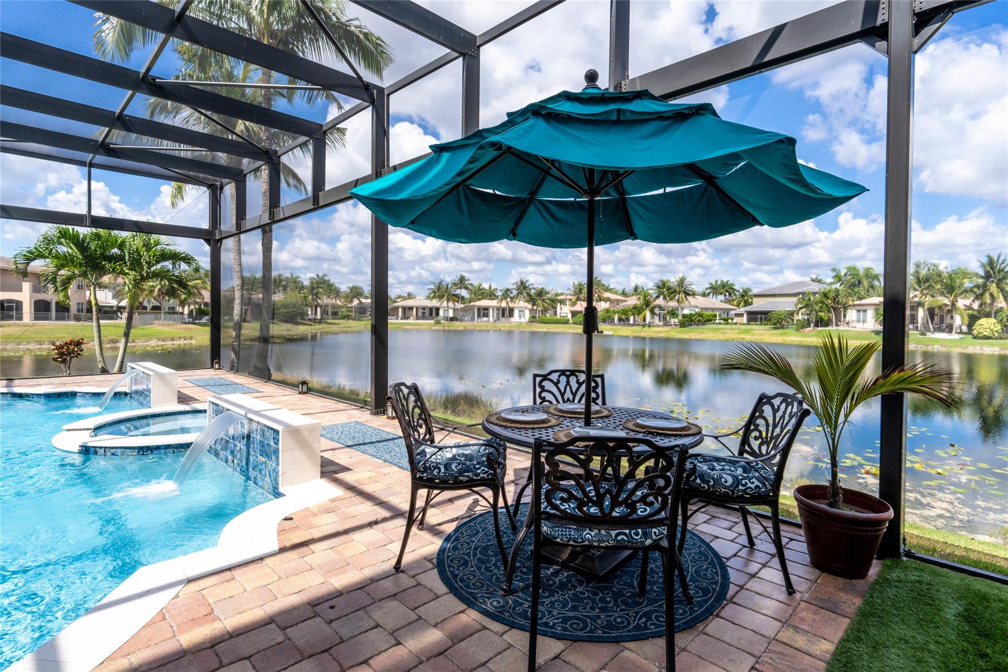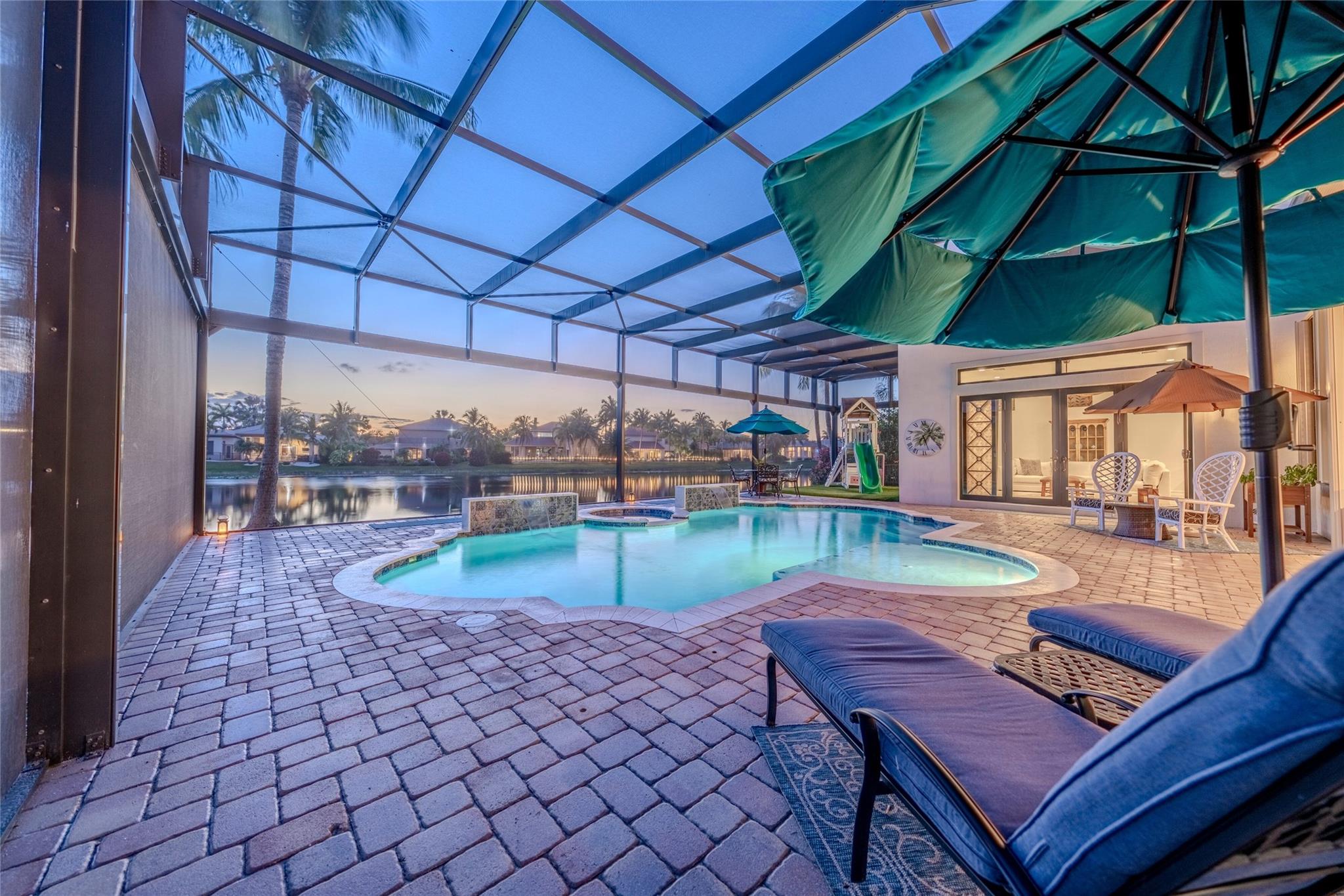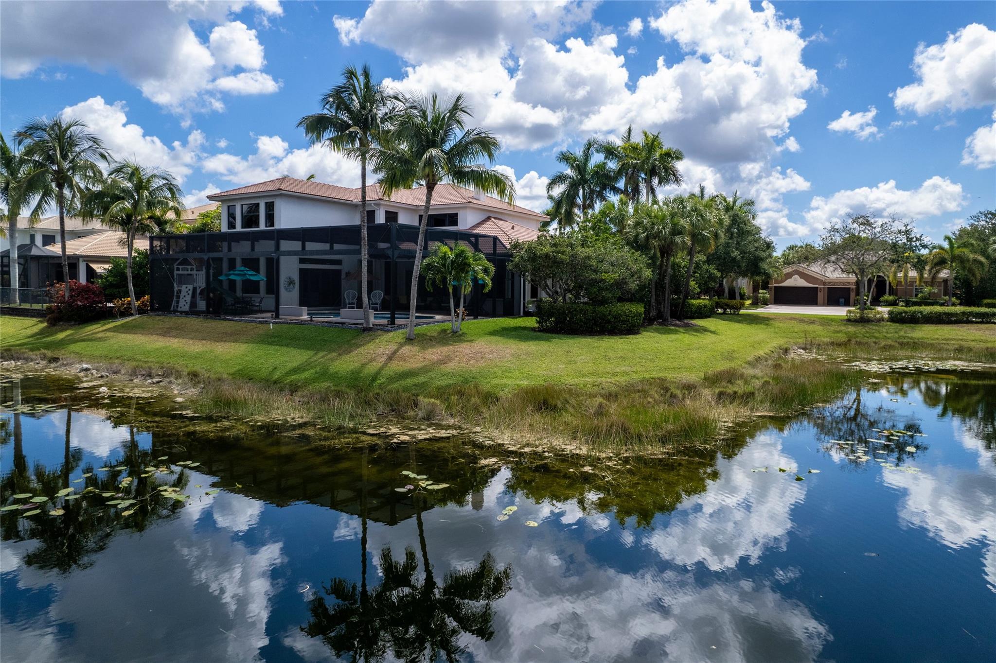 Picture perfect in every way – starting with the premium corner, lakefront lot with endless water views! This desirable floorplan offers 6 bedrooms + office + loft + huge bonus room! Nearly $250K of recent upgrades include: IMPACT windows/doors + accordion shutters; newly painted exterior (2020); gorgeous, remodeled kitchen w/new black stainless appliances, range hood, wood cabinets, Quartzite countertops & extended island; newer a/c’s (2018); new H2O heater (2022); updated, spa-like primary bathroom w/soaking tub; newer washer/dryer (2023/2019); fully renovated/extended, heated pool + new screen enclosure + artificial turf w/child padding (2020); new landscaping & lighting; and much more (see attached list)! Heron Bay offers resort-style amenities w/low HOA fees! All A-rated schools!