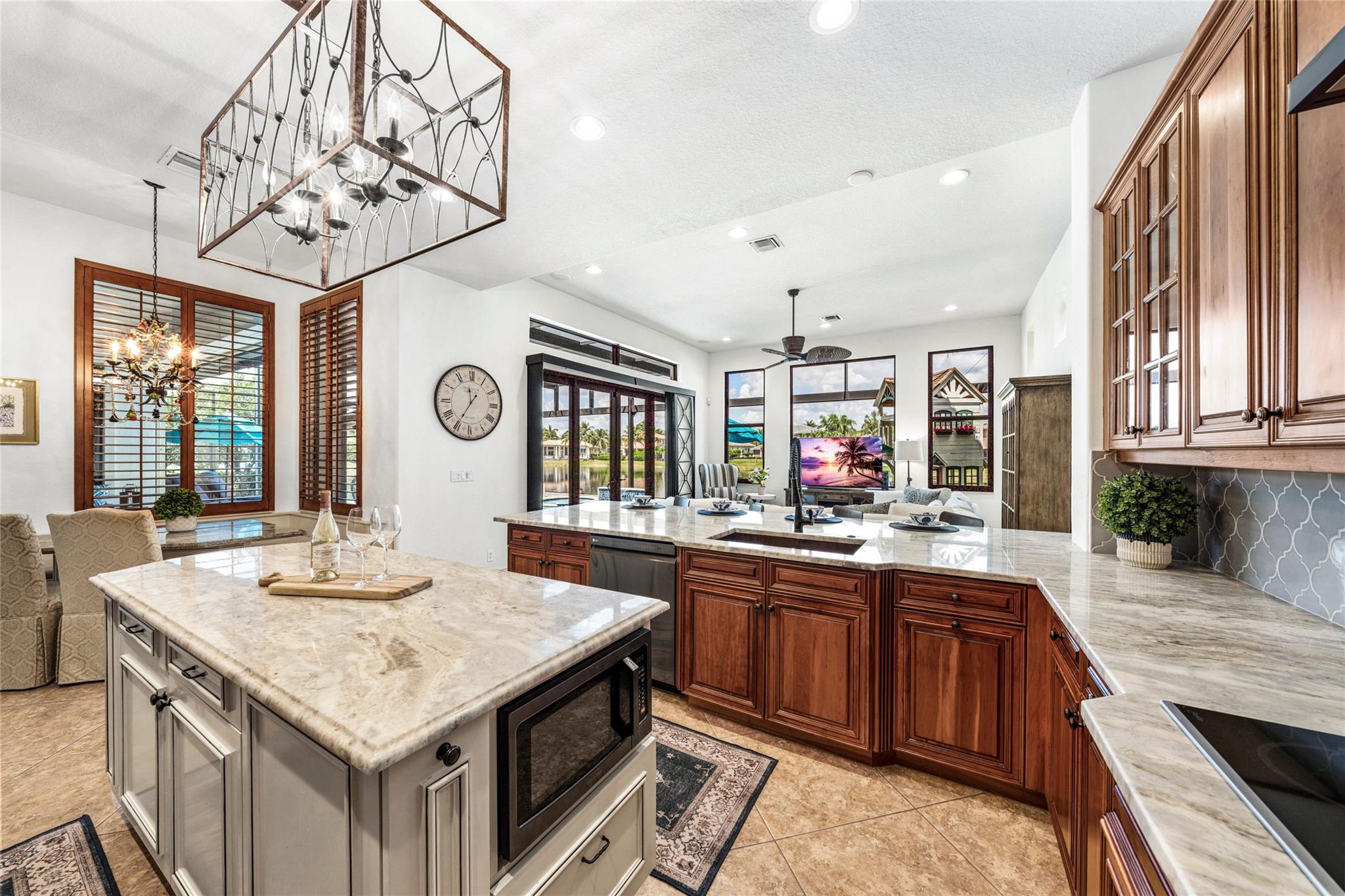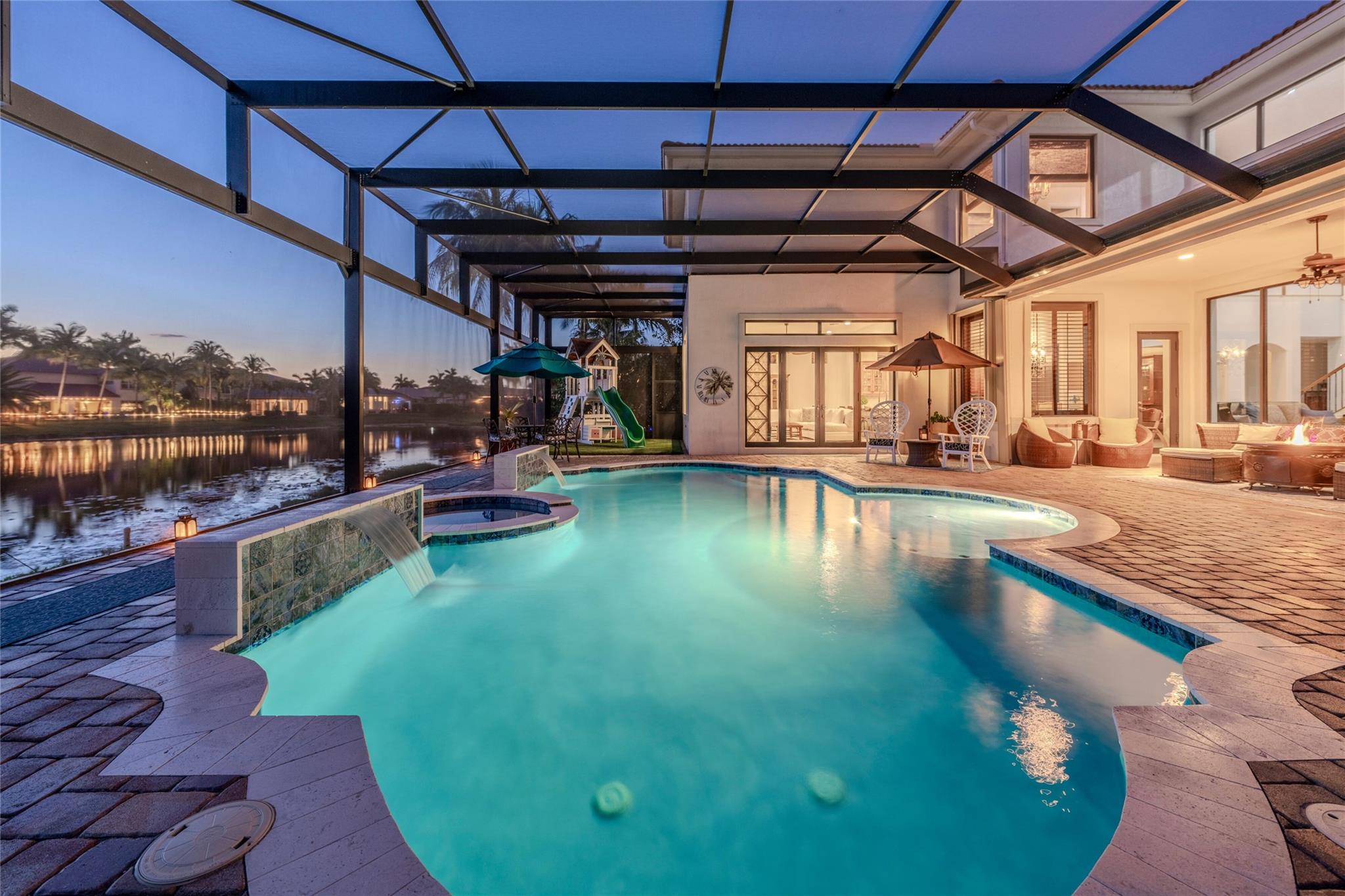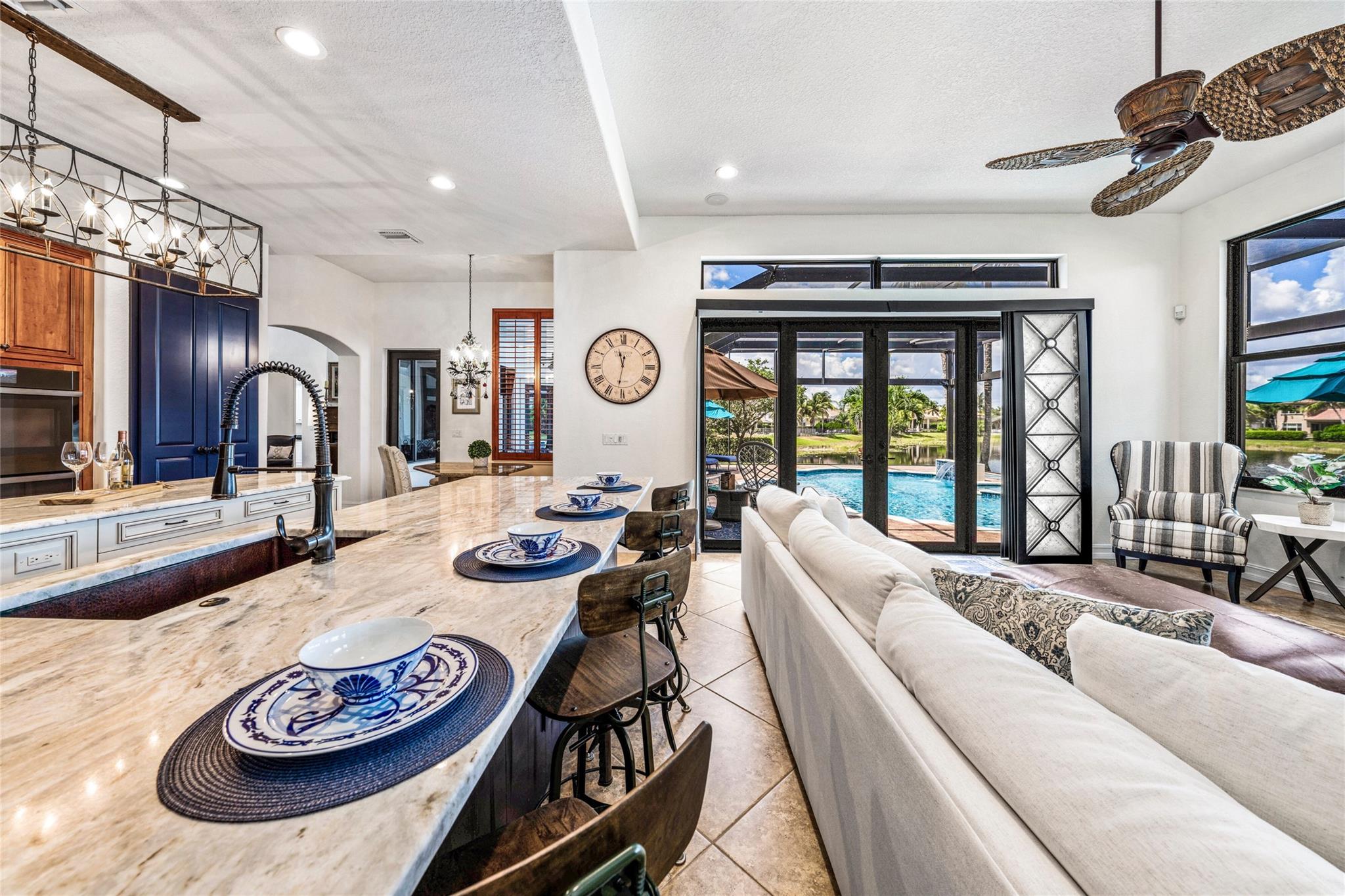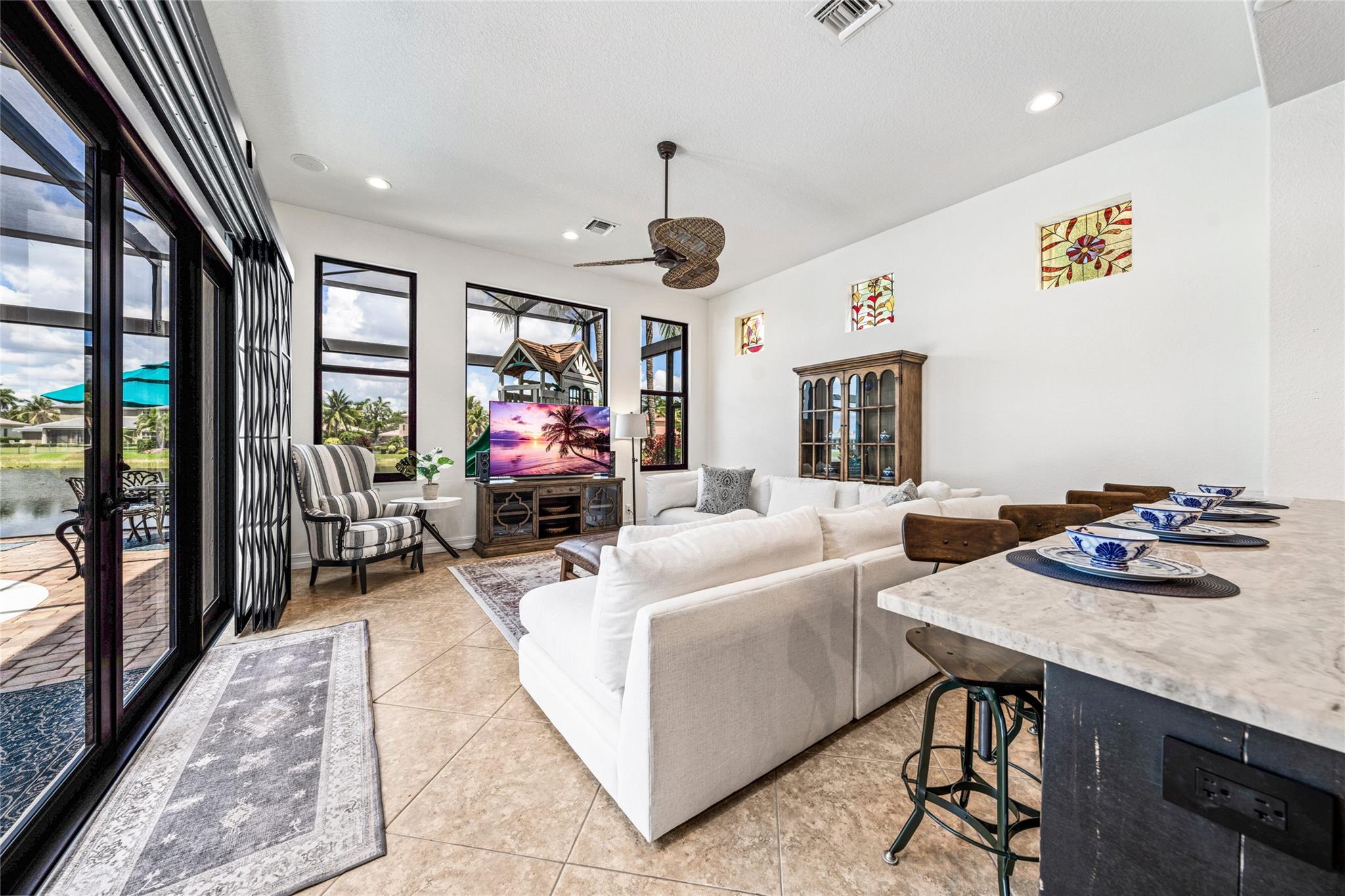 Picture perfect in every way – starting with the premium corner, lakefront lot with endless water views! This desirable floorplan offers 6 bedrooms + office + loft + huge bonus room! Nearly $250K of recent upgrades include: IMPACT windows/doors + accordion shutters; newly painted exterior (2020); gorgeous, remodeled kitchen w/new black stainless appliances, range hood, wood cabinets, Quartzite countertops & extended island; newer a/c’s (2018); new H2O heater (2022); updated, spa-like primary bathroom w/soaking tub; newer washer/dryer (2023/2019); fully renovated/extended, heated pool + new screen enclosure + artificial turf w/child padding (2020); new landscaping & lighting; and much more (see attached list)! Heron Bay offers resort-style amenities w/low HOA fees! All A-rated schools!
