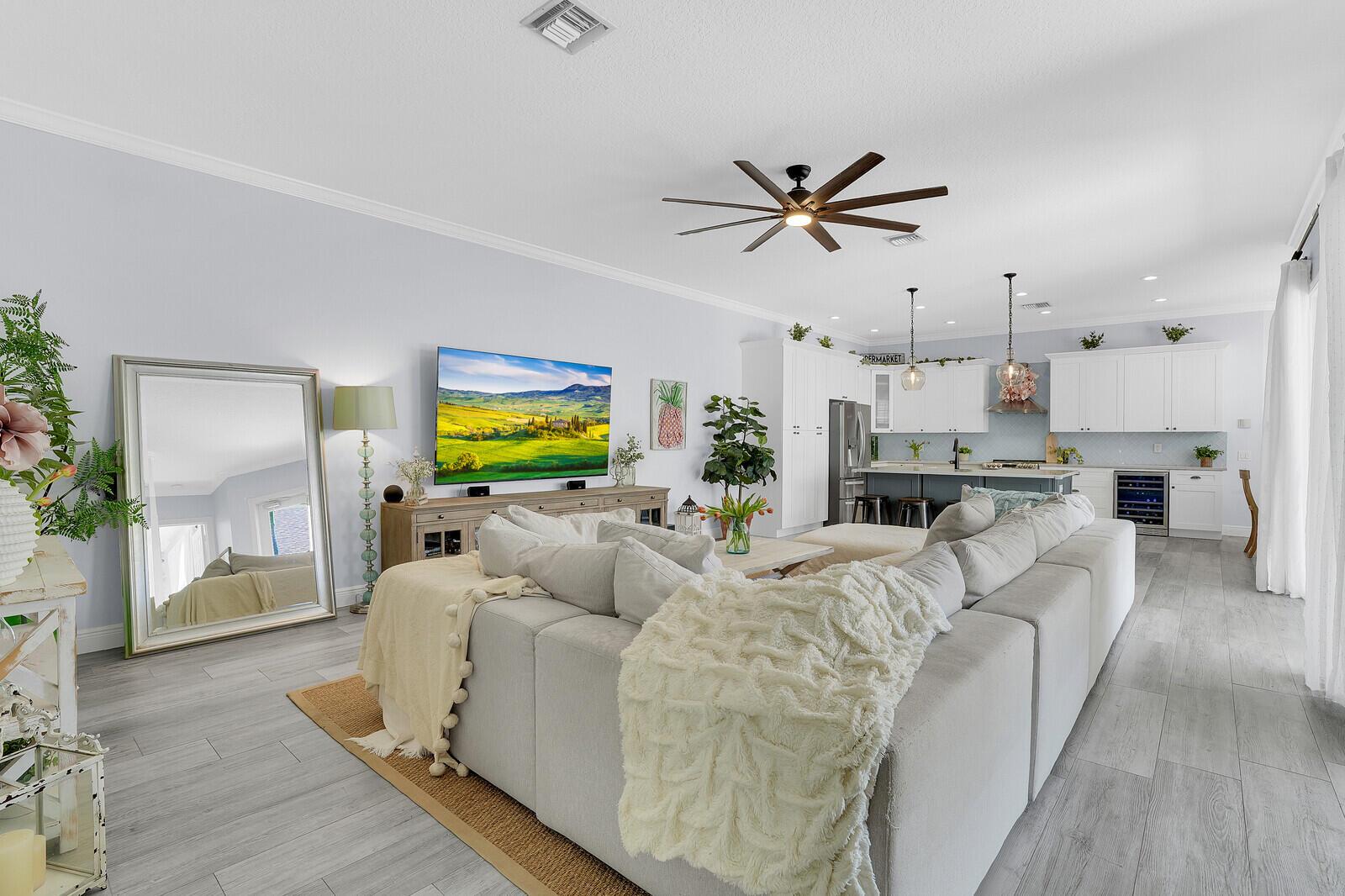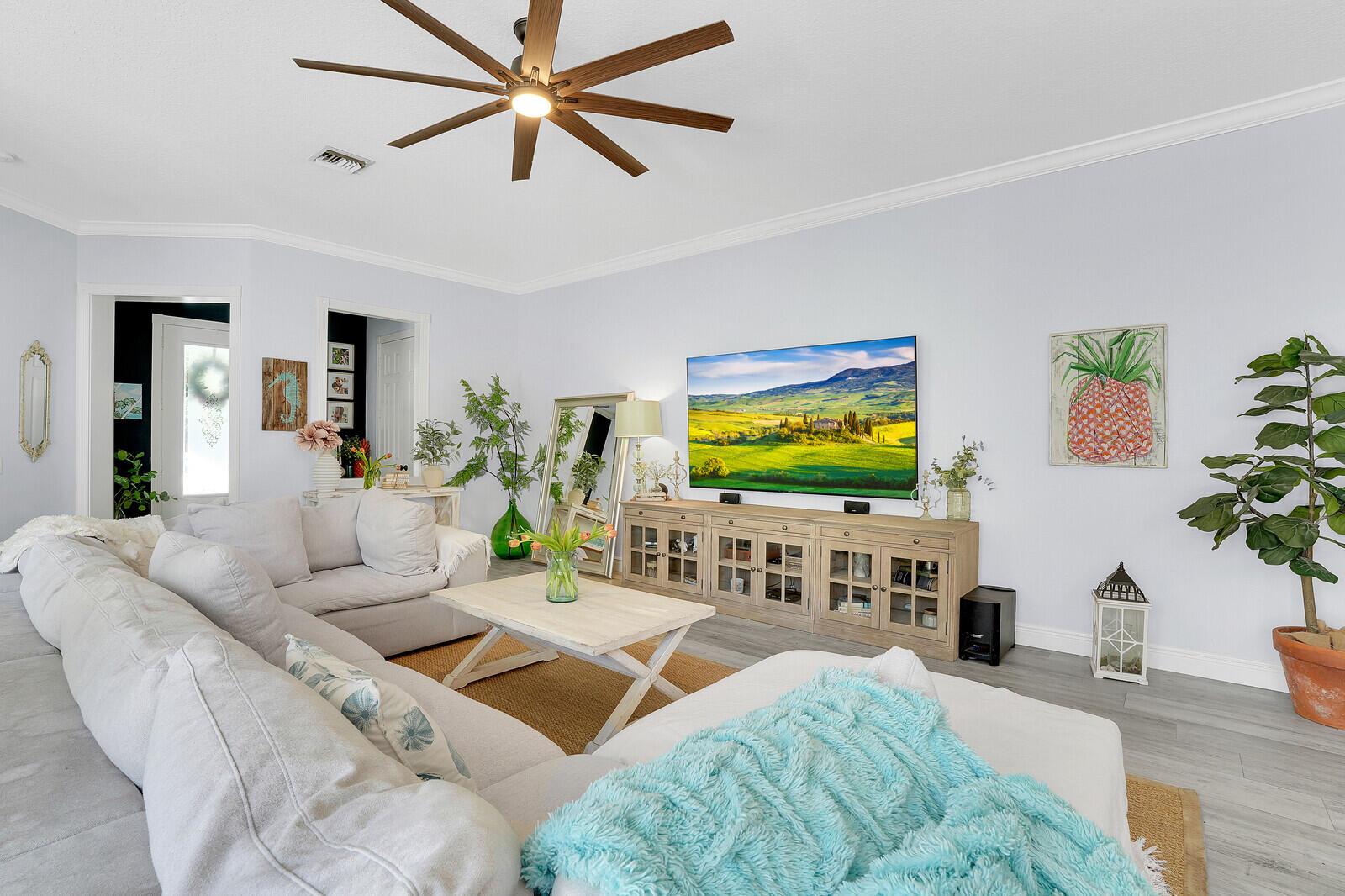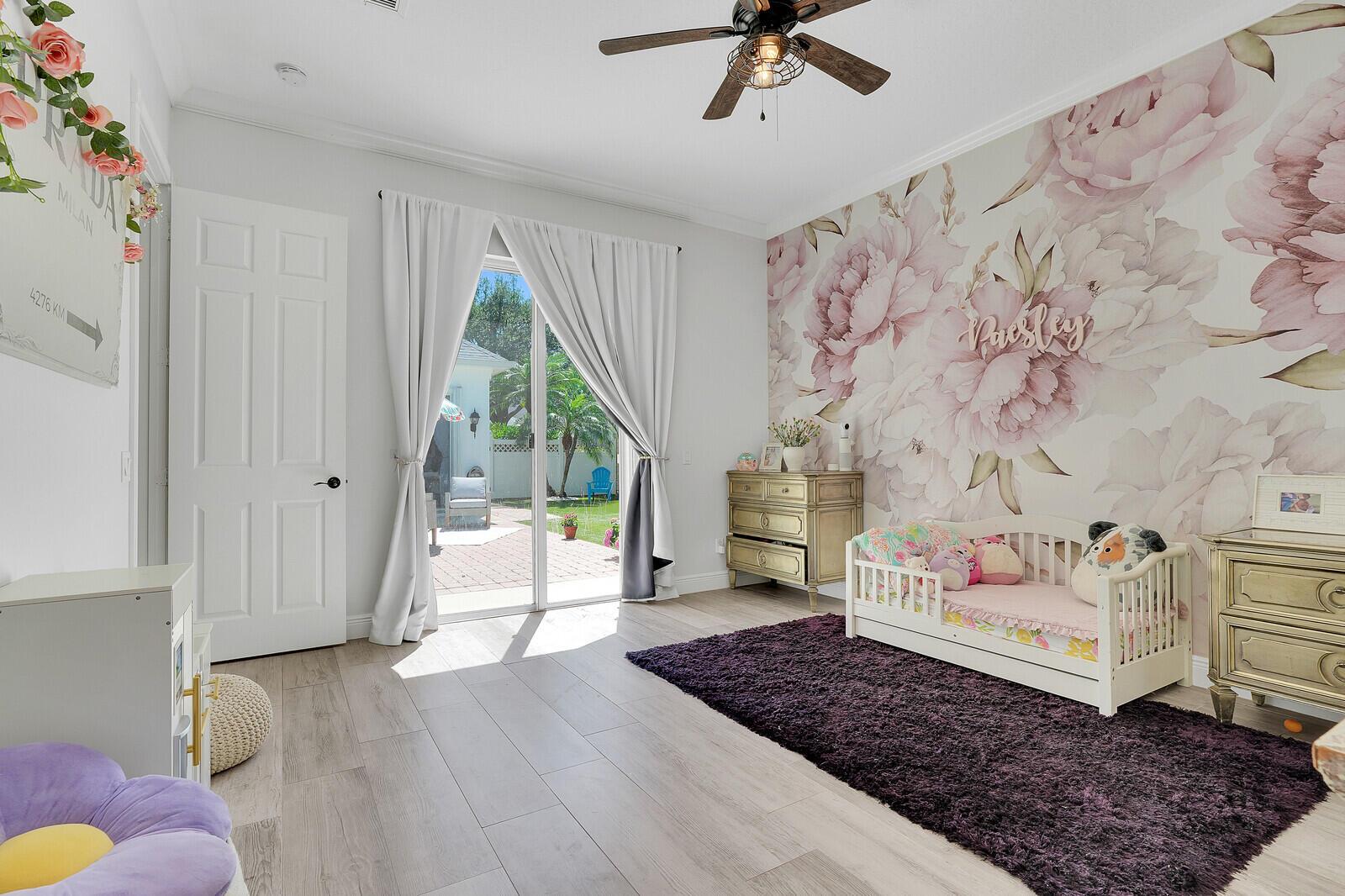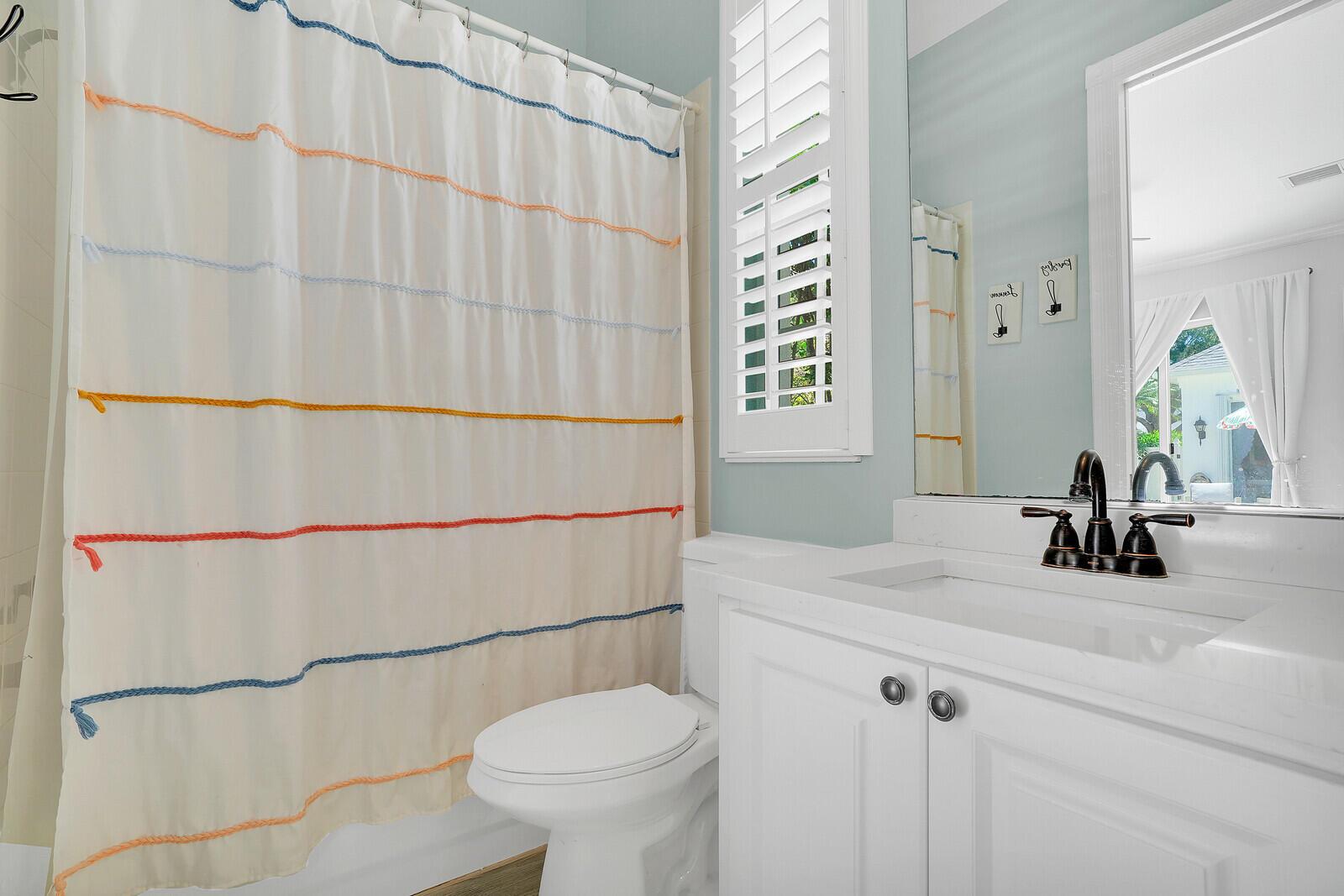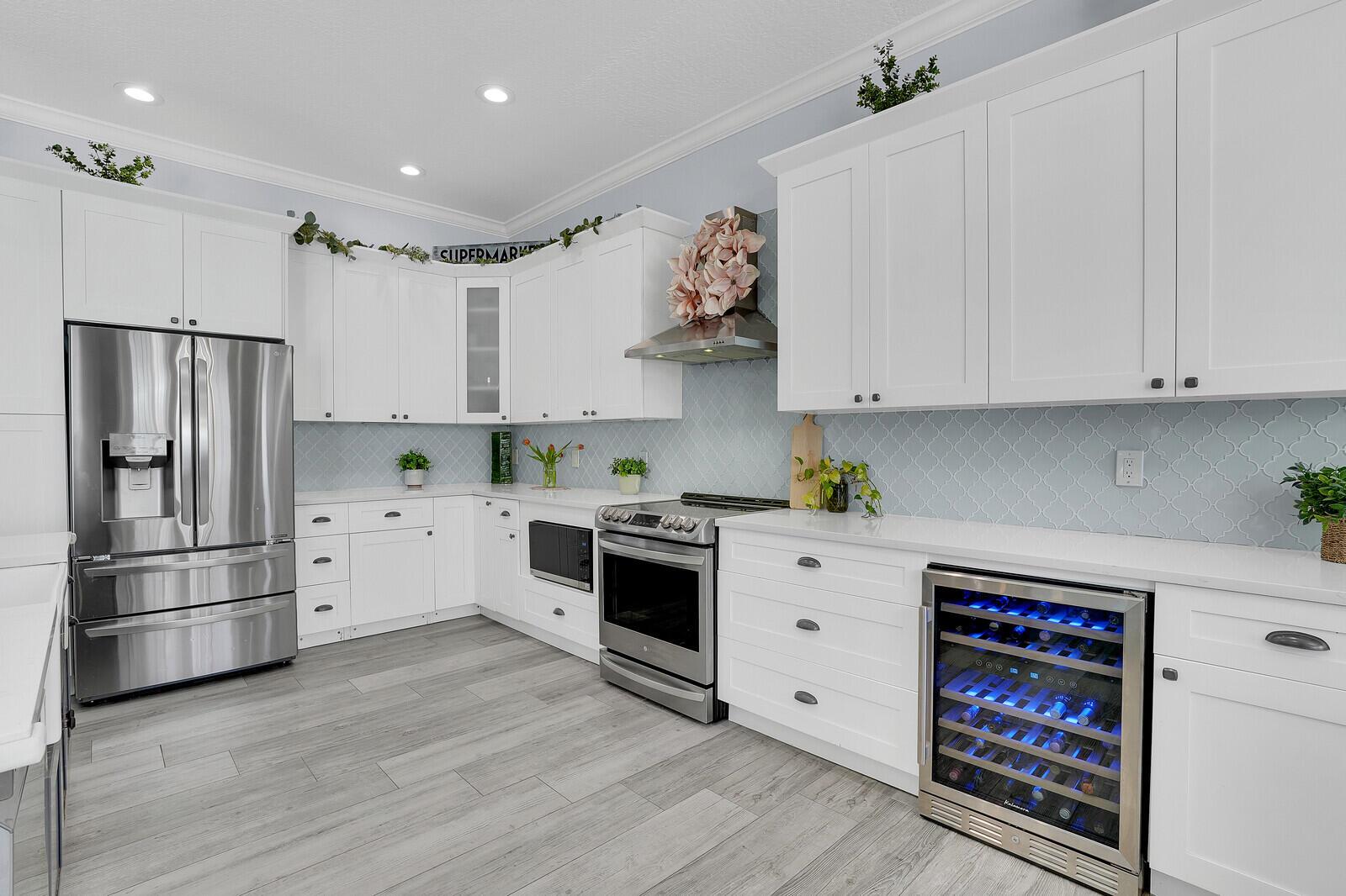 Bright and inviting, this courtyard-style home in NewHaven at Abacoa offers serene preserve views from the welcoming front porch. Inside, you’ll find a spacious open-concept layout with tile flooring throughout, plantation shutters, and a beautifully remodeled kitchen featuring an island, quartz countertops, upgraded appliances, updated lighting, and a stylish glass backsplash.The oversized living area is perfect for both entertaining and everyday living. The primary suite boasts a luxurious bathroom with quartz countertops, dual shower heads and handhelds for a true spa-like experience.Step outside to a private side yard with low-maintenance artificial turf and a fun mini putting green–perfect for relaxing or enjoying a casual game. Additional upgrades include a newer roof