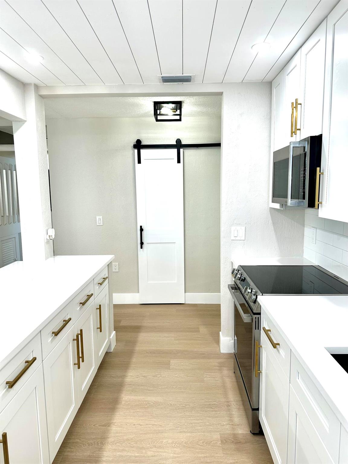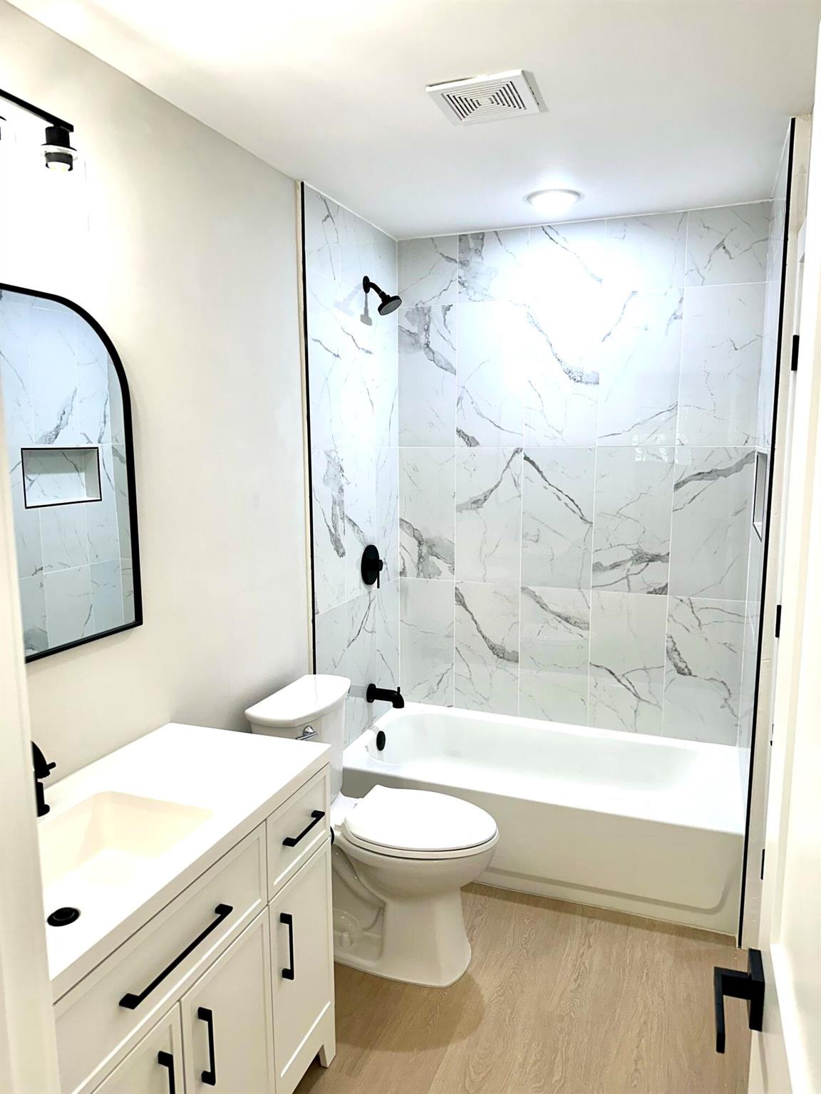 Move right in to this tastefully upgraded 4 bedroom, 2 bath home in Lantana Pines. This reimagined home includes a new open concept kitchen with white shaker cabinets, quartz counters, subway tile backsplash & new SS appliances, updated bathrooms, new luxury vinyl plank flooring throughout, new central AC, new interior doors, trim & paint., LED lighting. Additional features include a bonus room on second floor, one car garage, screen enclosed porch, private lot with canal view & a mango tree!