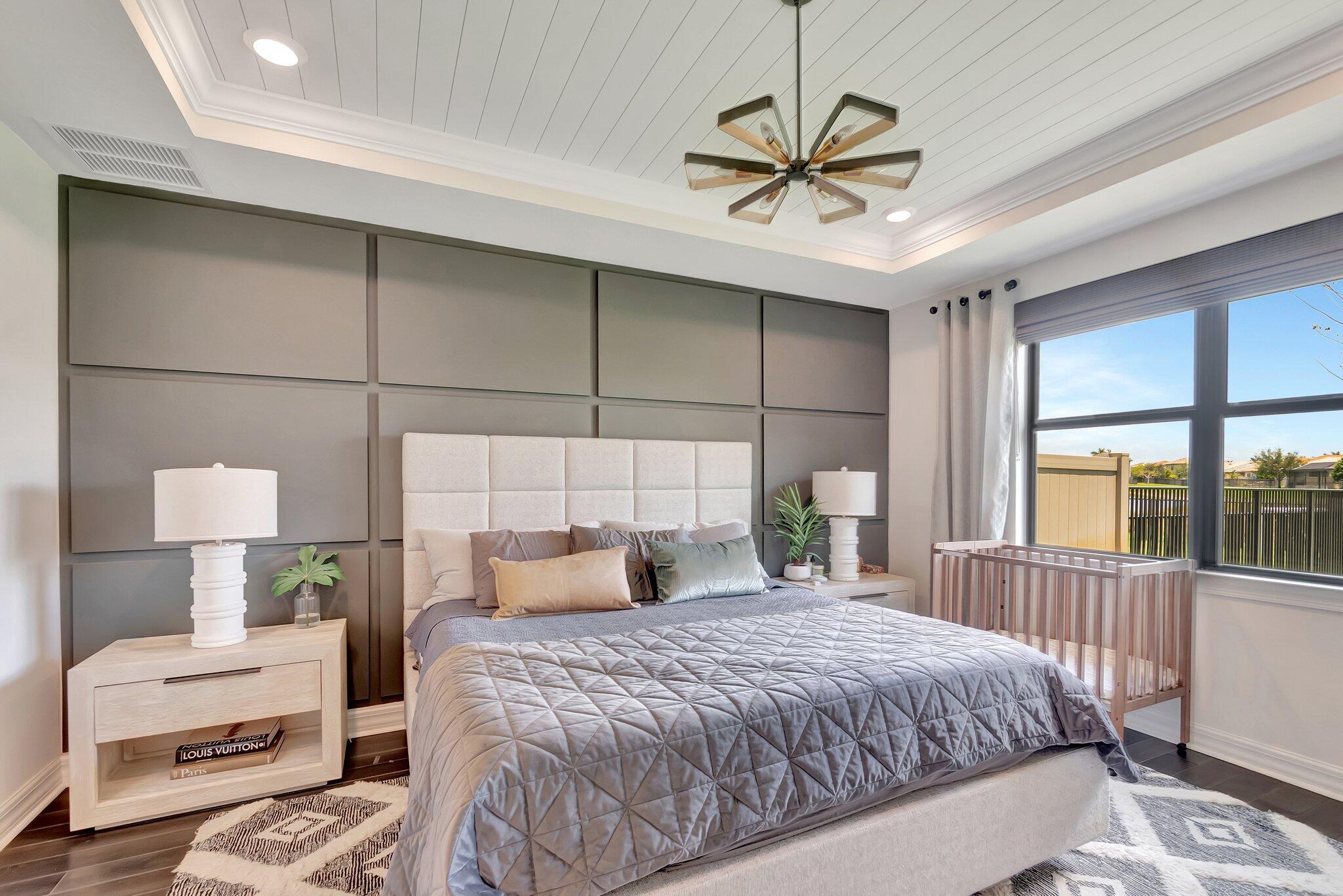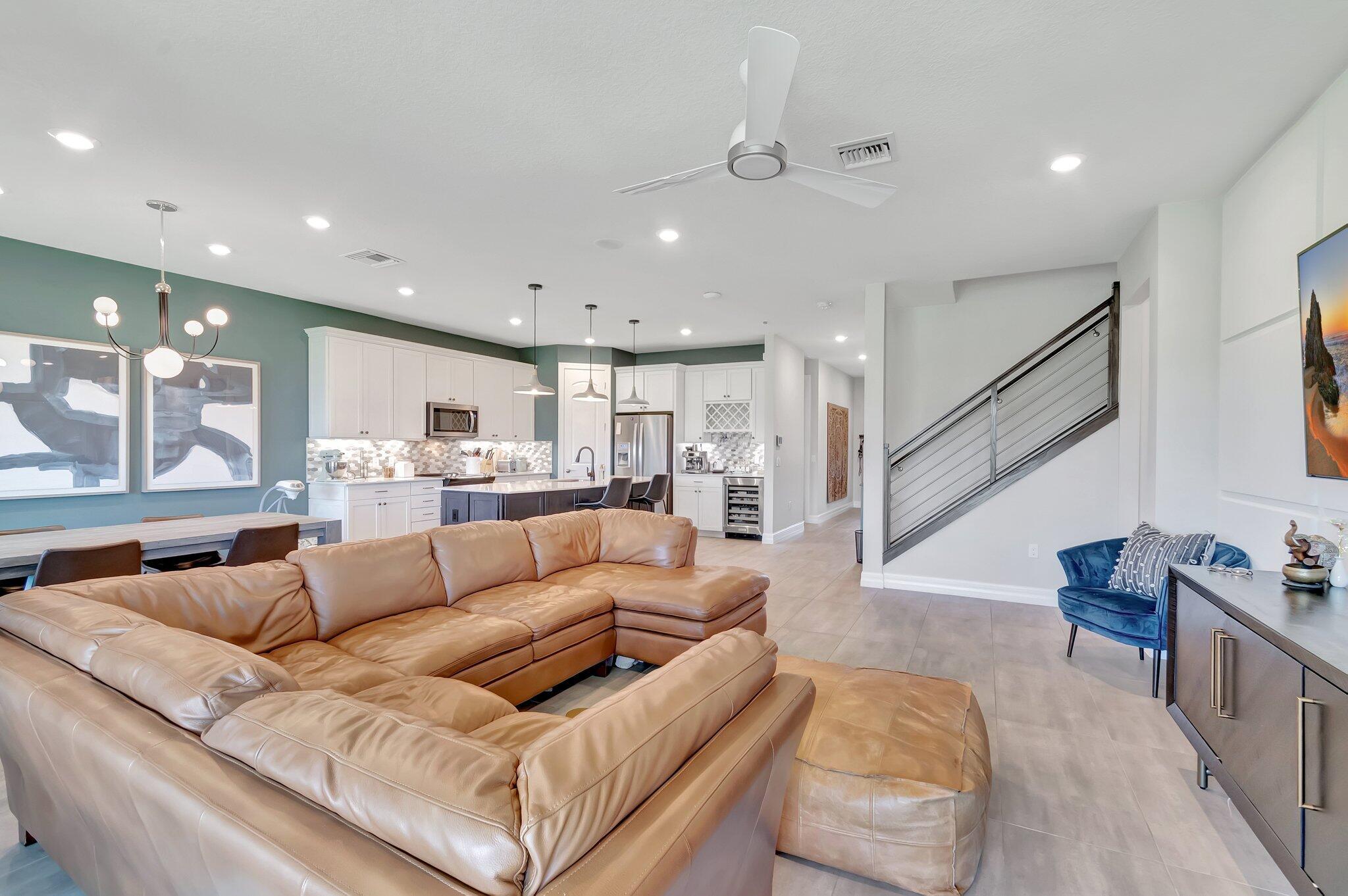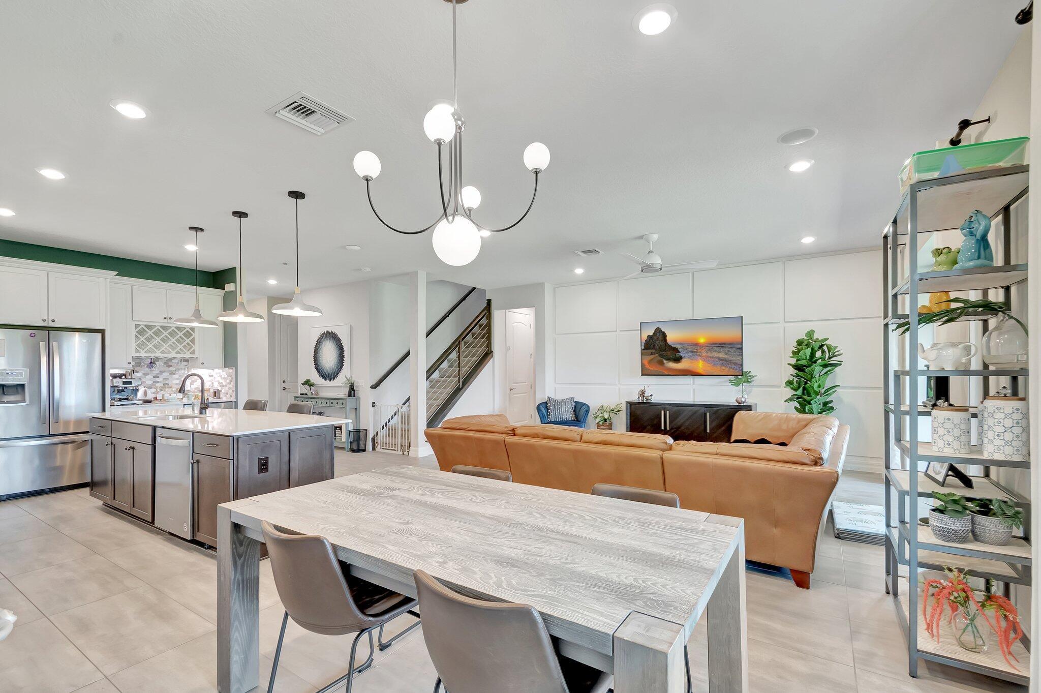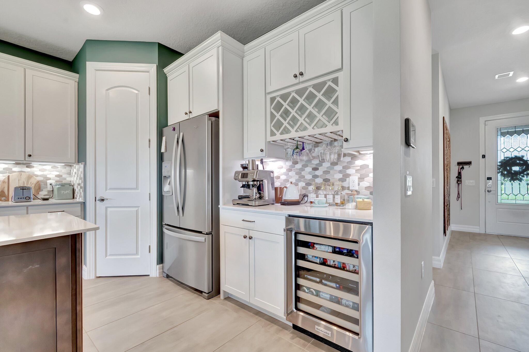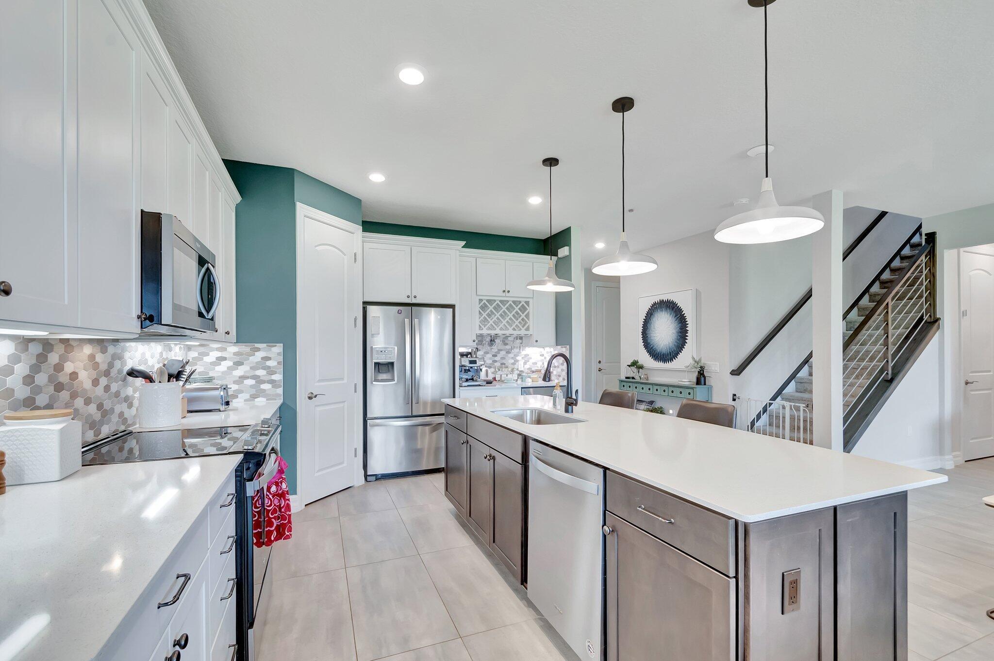 Formerly the model home for the Citrus Grove model! Bought directly from the developer, this upgraded model home offers 5 bedrooms, 3 bathrooms, a spacious upstairs den, and countless high end features. With thousands in builder upgrades including custom feature walls, built-ins, a wine fridge, shiplap ceilings, stair railings, and designer lighting with upgraded chandelier and pendant fixtures. The oversized kitchen is a centerpiece, boasting quartz countertops, a stylish backsplash, and a massive island. On the main floor, you’ll find two bedrooms and a full laundry room, with a 2 car garage. Upstairs includes three more bedrooms and a generously sized den, ideal as a home office or playroom. Step outside to a screened-in patio and take in the lake view from your fenced yard.
