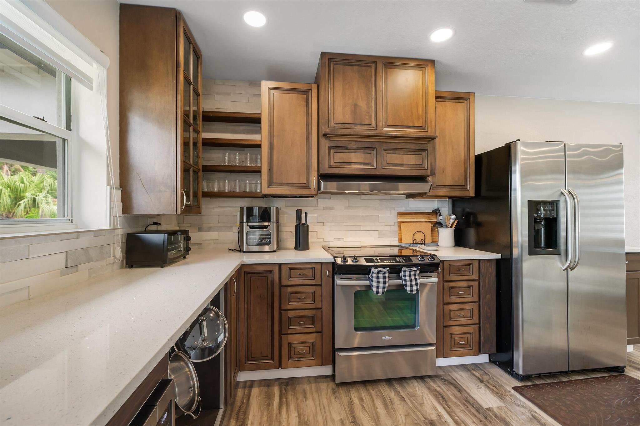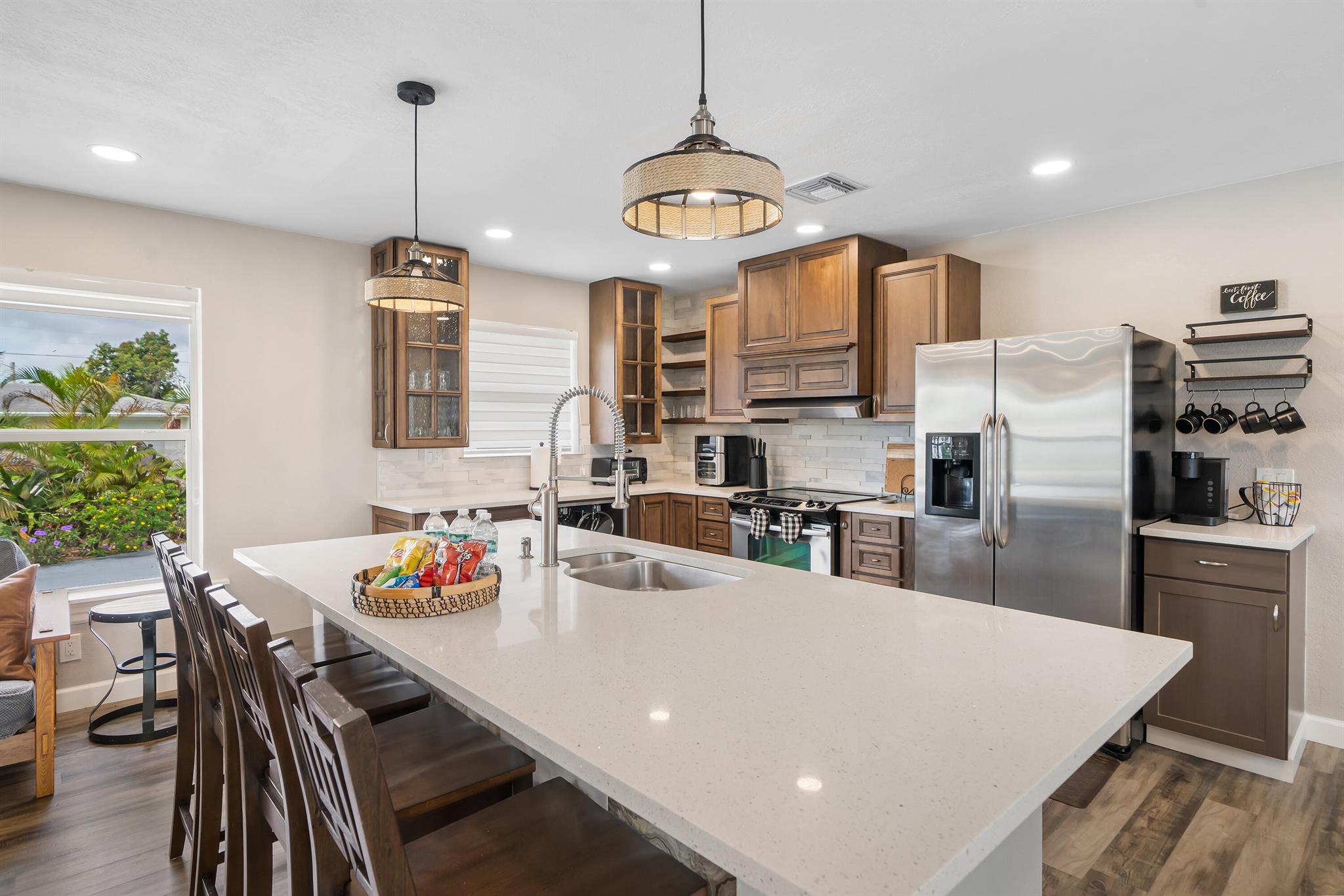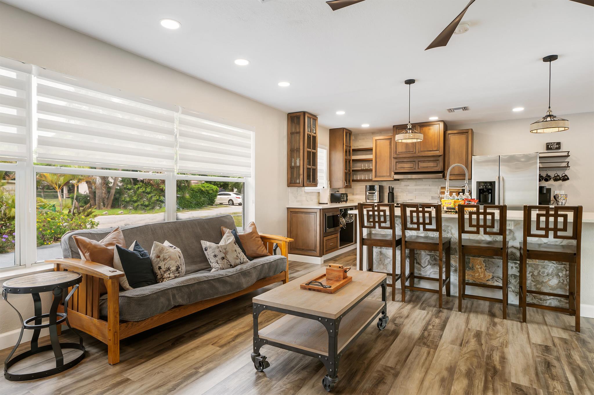 NO HOA. ENDLESS POTENTIAL WITH LARGE LOT. CAN CONVERT CARPORT INTO A BEDROOM AND BARN INTO A 1/1 SUITE WITH LOFT….NEWLY RENOVATED HOME. Open floor plans.Close distance to restaurants, major roadways, schools, mall, stores, grocery, beach etc… Everything interior has been completely renovated within past 3 years including tankless water heater, lux laminate floorings, HVAC, appliances with warranties, electrical, light fixtures, doors and more. Whole new interior was done within 3 years. Come check out this beautiful home and make it yours. Great potential for upgrades exterior with all that land. 2 car garage separately or potentially Can turn it into an in-law suite. Has electrical. Plenty of space for a pool. Endless opportunity.