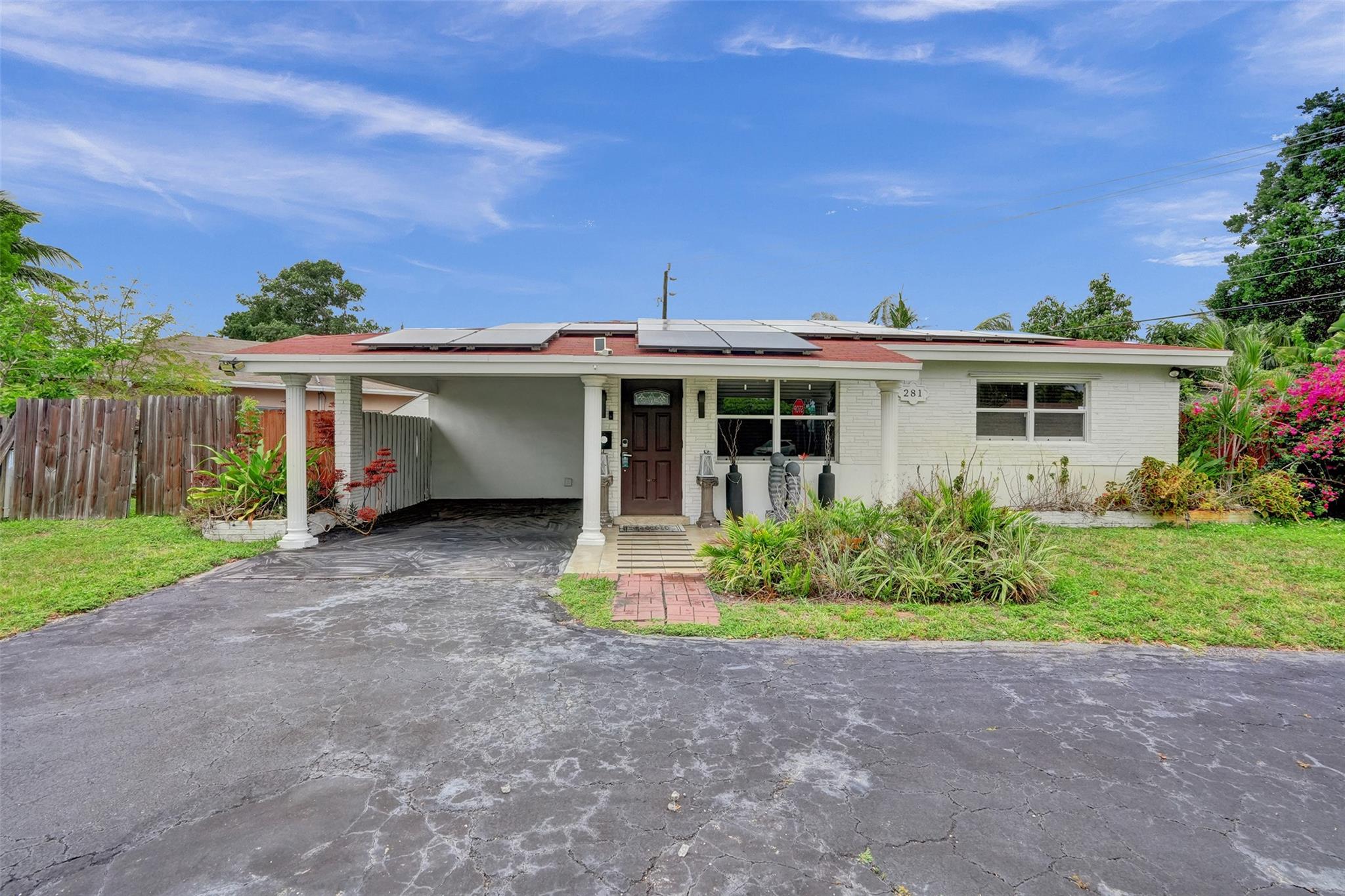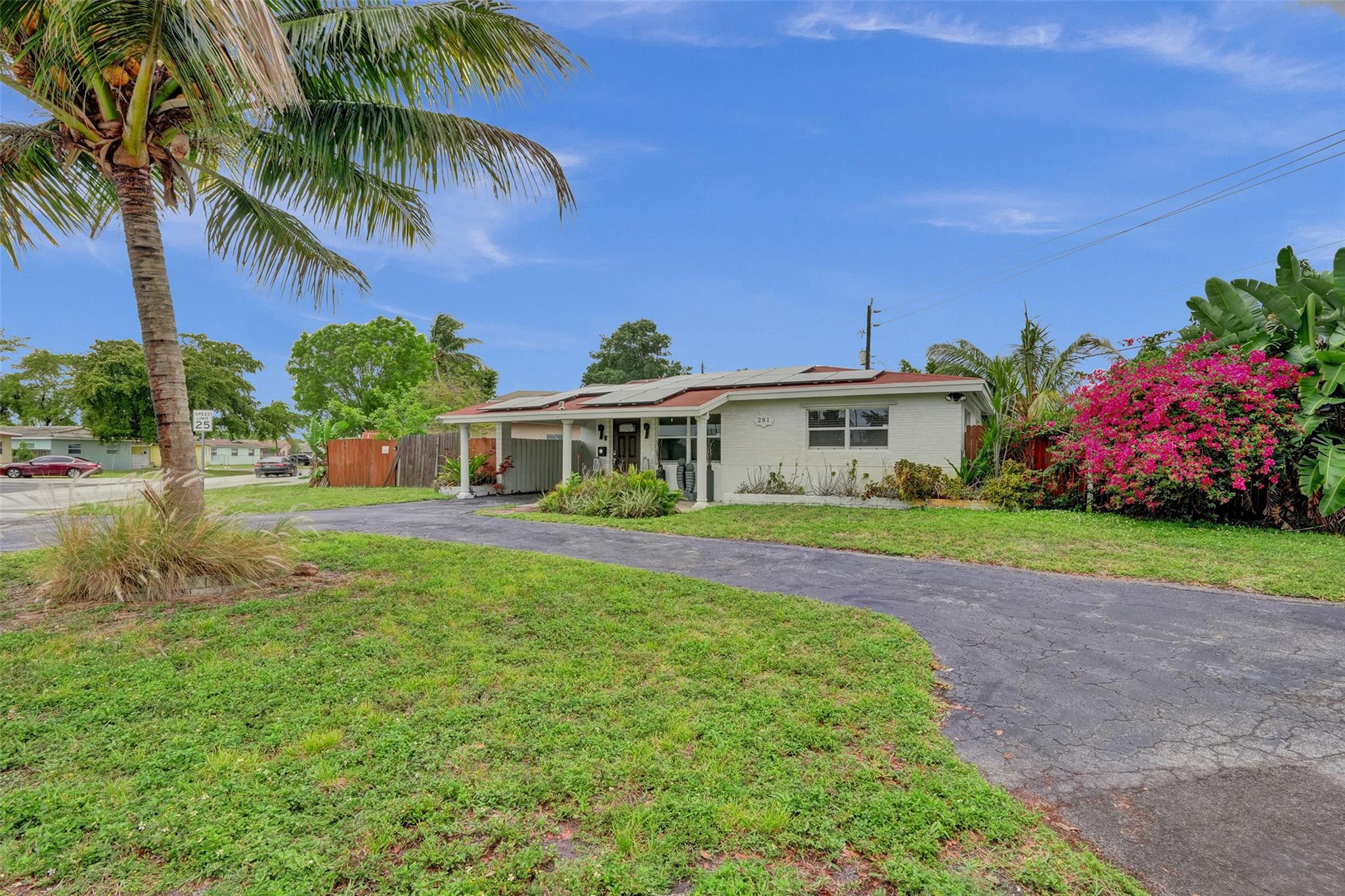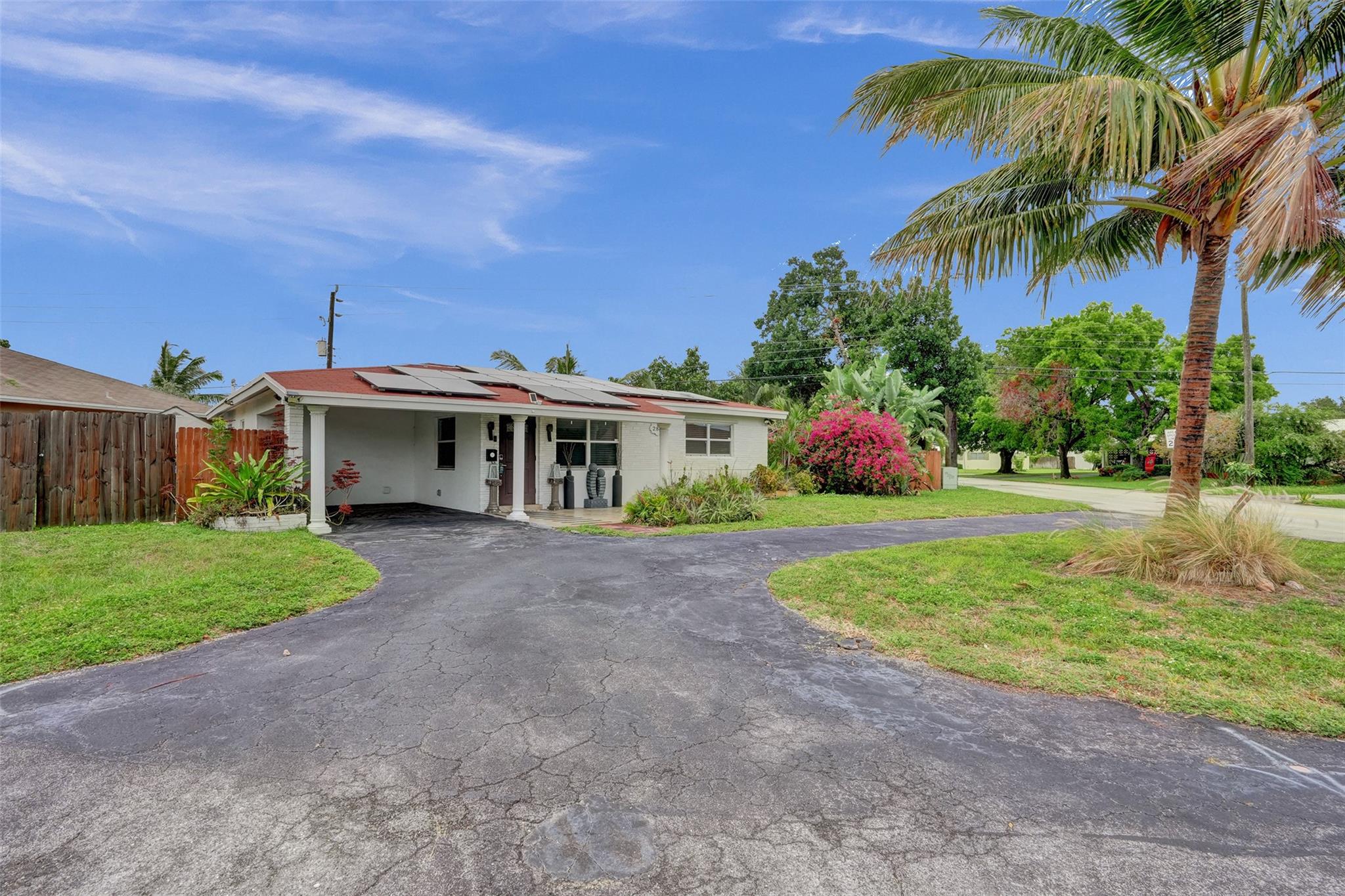 3/2 SFH on a 10,000 square foot double corner lot (100 x 100) with a Big RV/Boat storage area. Solar panels installed (2023) which power the entire home. Updated kitchen with stainless steel appliances. The very large circular driveway has enough space for several cars/trucks. Has a large salt water above ground pool plus two sheds with electric & sprinkler system. This home is only minutes to shopping, the beaches, I-95, Wilton Manors, and downtown! Walk across the street to Dillon Tennis Park (8 tennis courts) and Wimberley Fields Athletic Park!