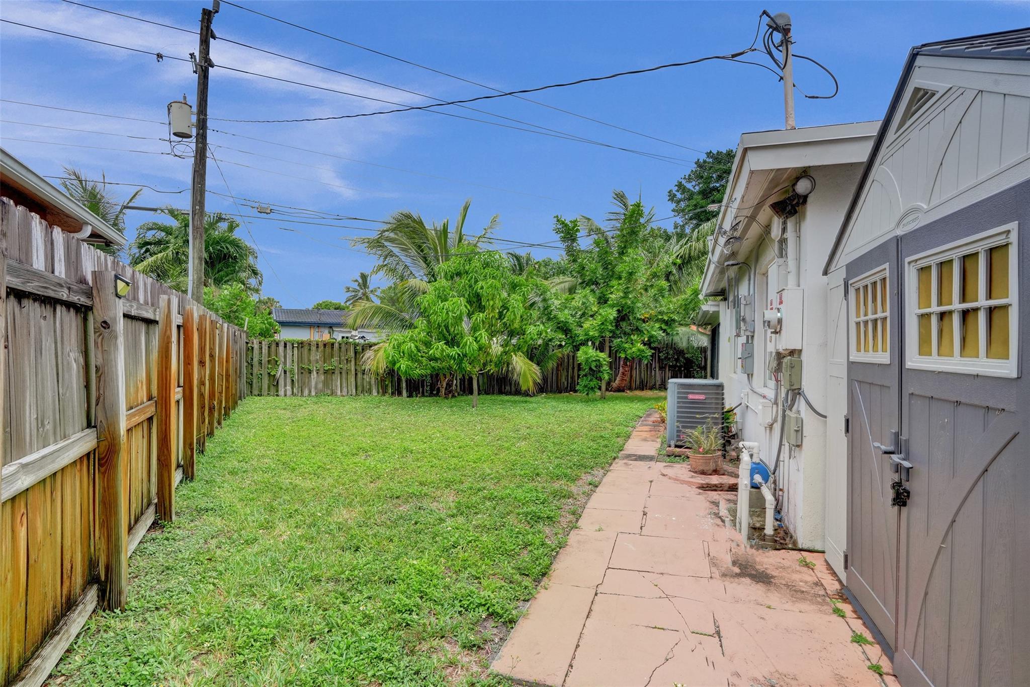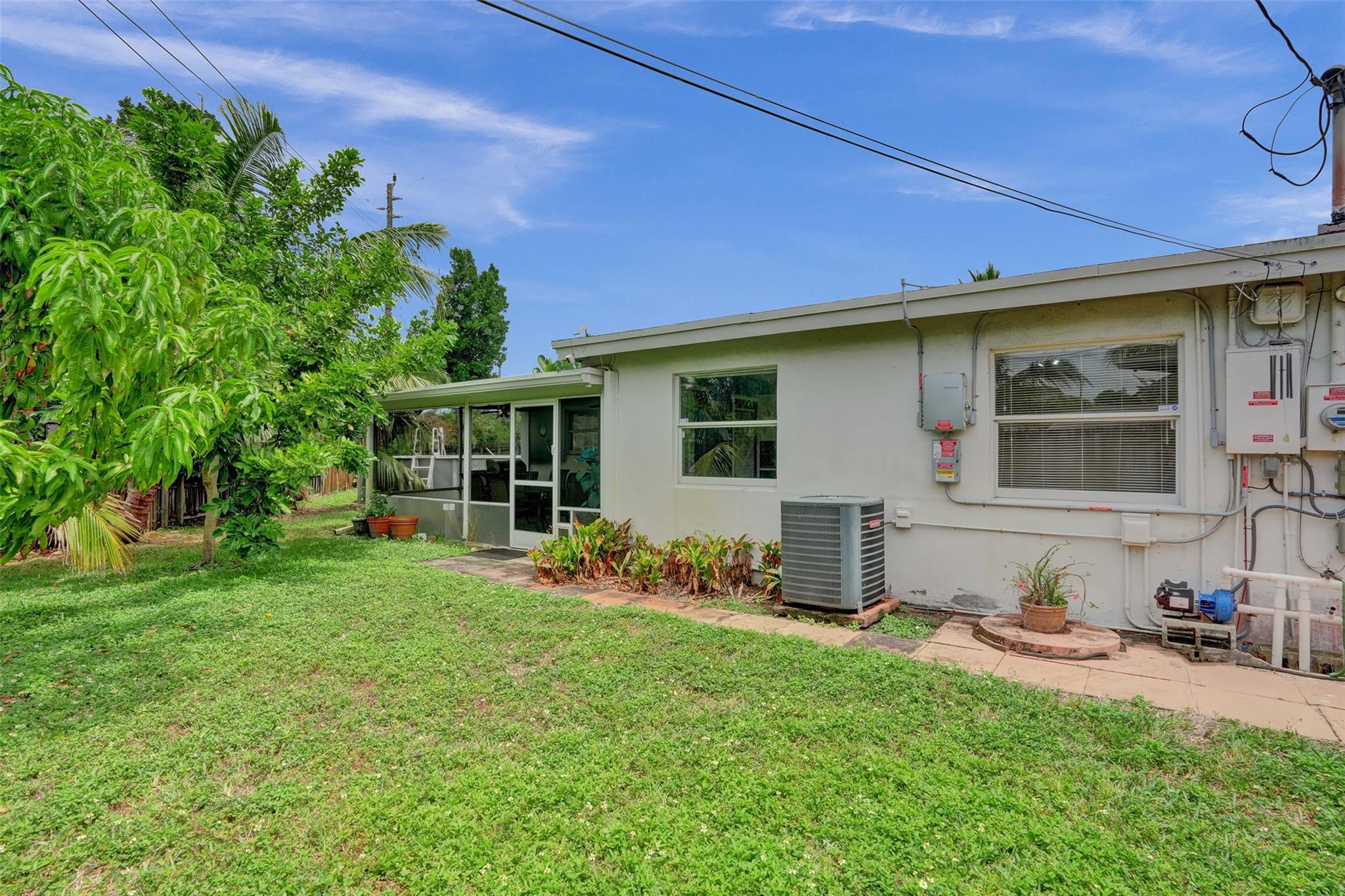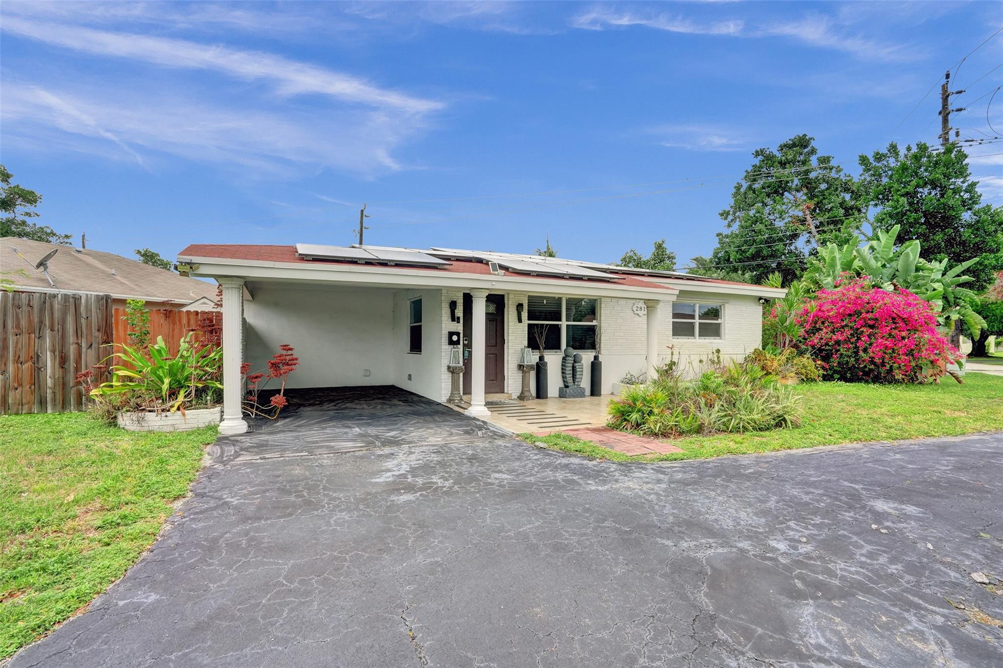 3/2 SFH on a 10,000 square foot double corner lot (100 x 100) with a Big RV/Boat storage area. Solar panels installed (2023) which power the entire home. Updated kitchen with stainless steel appliances. The very large circular driveway has enough space for several cars/trucks. Has a large salt water above ground pool plus two sheds with electric & sprinkler system. This home is only minutes to shopping, the beaches, I-95, Wilton Manors, and downtown! Walk across the street to Dillon Tennis Park (8 tennis courts) and Wimberley Fields Athletic Park!