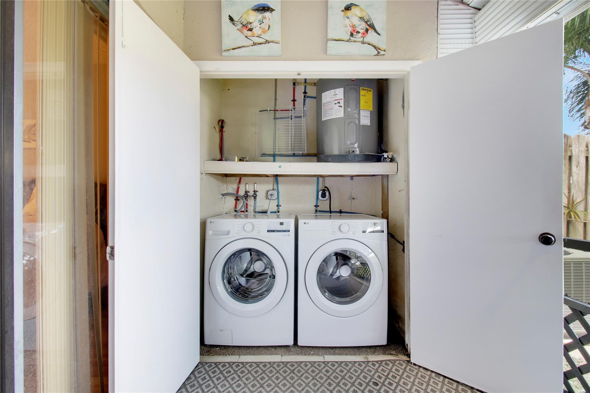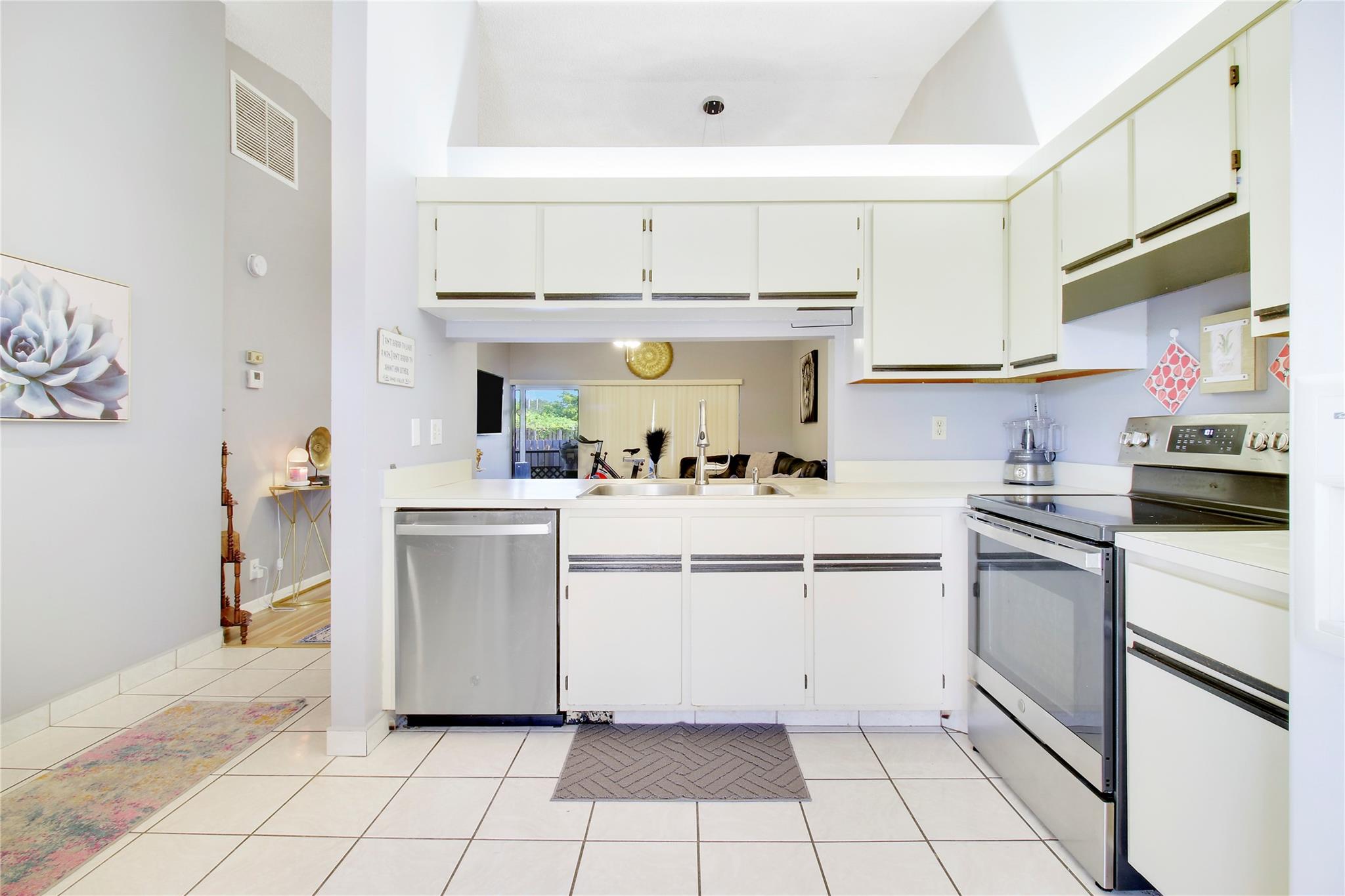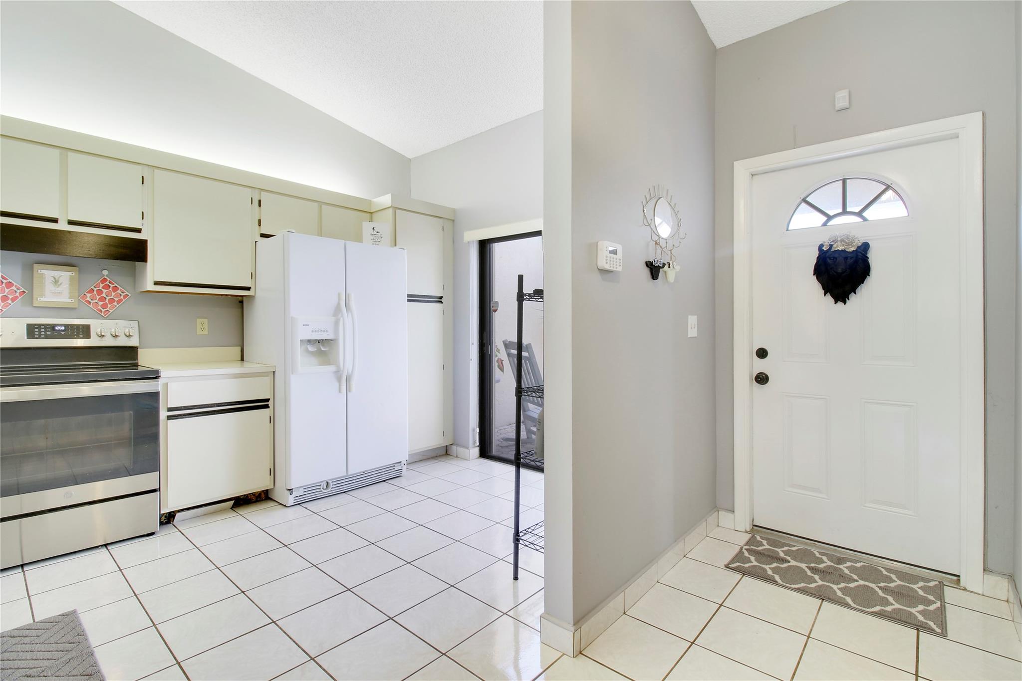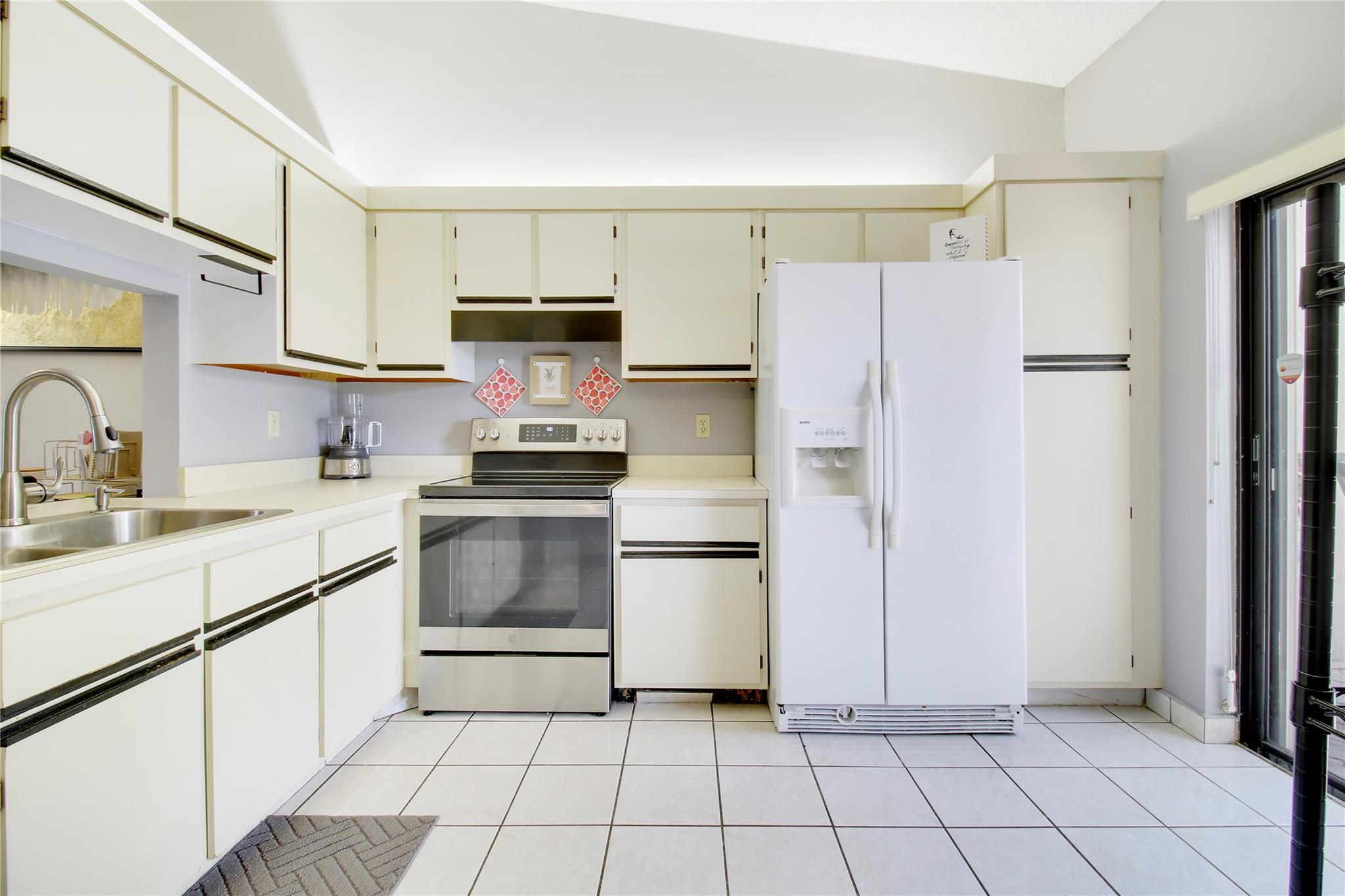 Welcome to this cozy and versatile 2-bedroom, 2-bath attached villa that offers a smart layout with the potential for two primary suites. As you walk in, you’ll find an open kitchen that connects easily to the living area. This bright home and living area leads out to a screened porch where you can enjoy the beautifully landscaped yard—with no rear neighbors for extra privacy. Both the front and back yards are fully fenced. Located in the community of The Lakes with a Low HOA, you’ll have access to great perks like a pool, hot tub, tennis court, clubhouse, and a playground. This home is freshly painted, has a new stove & new washer and dryer. Come take a look—you’ll love the vibe here!