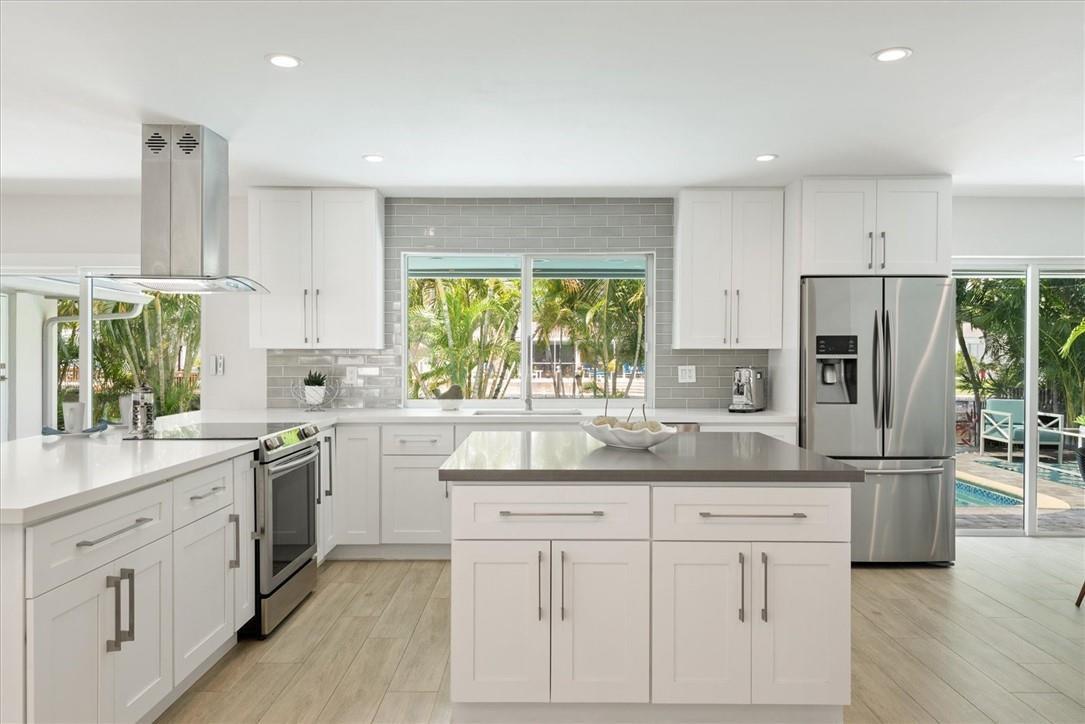 Experience refined waterfront living in this updated 3-bed, 3-bath home in Coral Ridge Isles. Located on a quiet cul-de-sac with 75 ft. of ocean-access canal frontage, this home blends elegance and comfort. The open layout features a sleek chef’s kitchen with stainless steel appliances and an oversized island. Freshly painted interiors create a bright, modern feel. The primary suite offers a walk-in closet, dual vanities, and glass-enclosed shower. Enjoy serene views of the pool, canal, and tropical landscaping. A whole house generator ensures peace of mind. Minutes from beaches, Las Olas, and FLL Airport. Furnishings available for purchase.