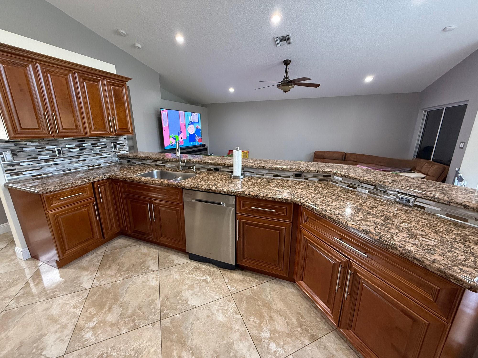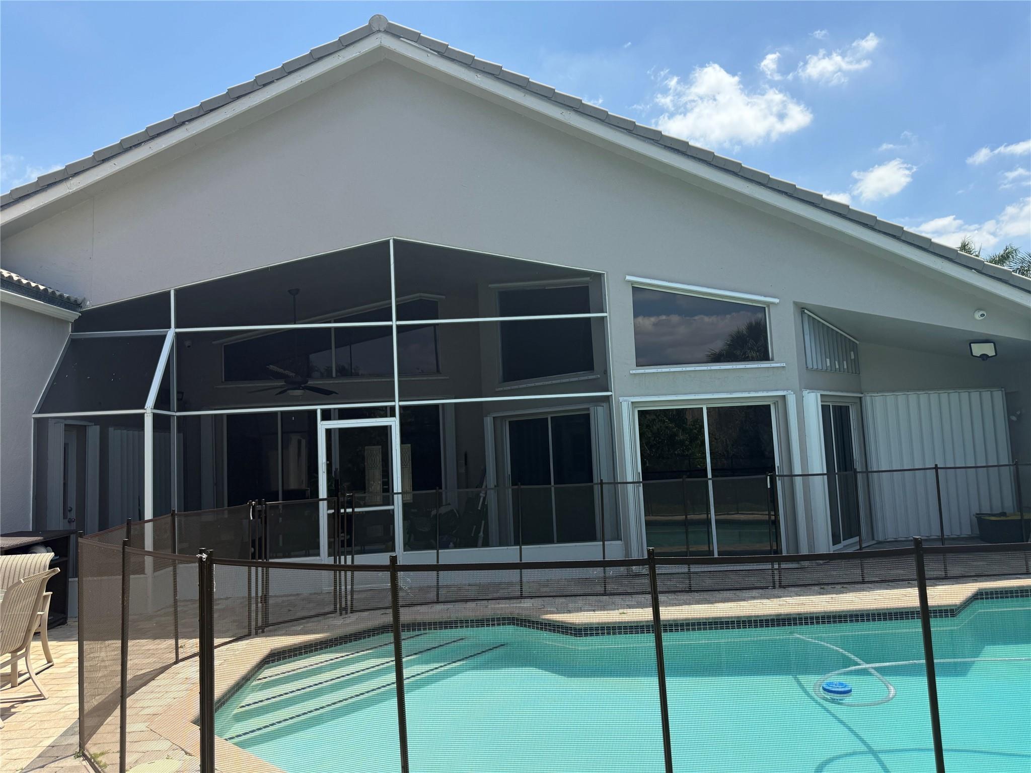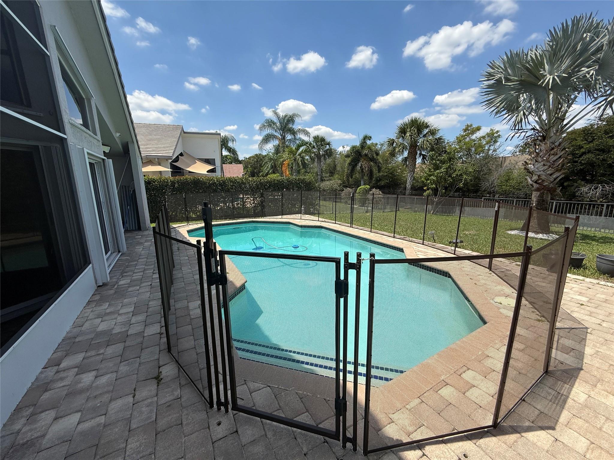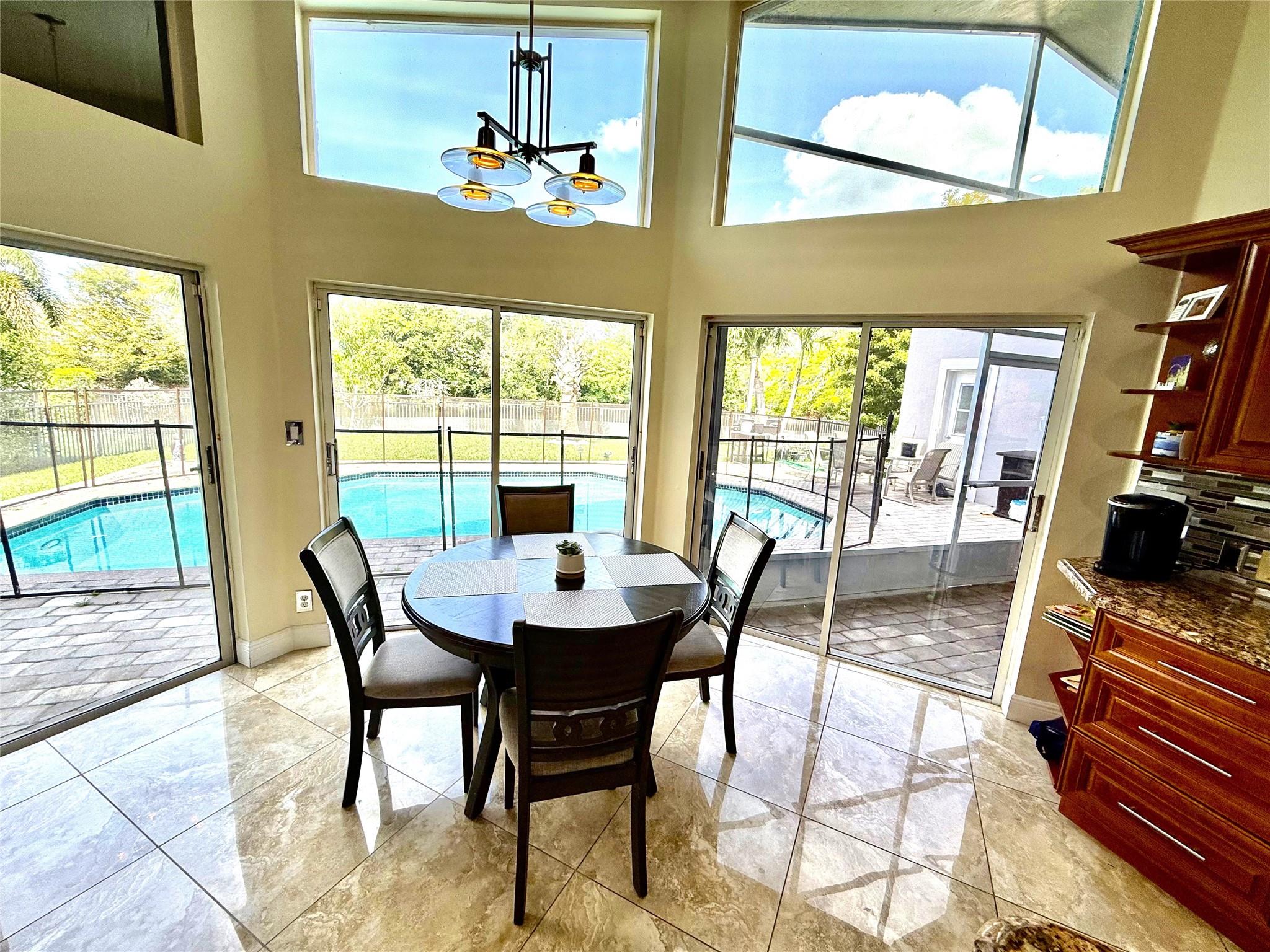 Absolutely stunning 5-bed, 3.5-bath pool home with water views in the guard-gated Eagle Trace community. Built in 1991, a 2024 appraisal confirms 2,654 sq ft under air (tax records show 2,413 sq ft). Well maintained and equipped with two AC units for comfort and efficiency. Set on an oversized lot with no rear neighbors, this natural light home features vaulted ceilings, a split floor plan, and a remodeled kitchen with granite counters, wood cabinets, and stainless steel appliances. The spacious primary suite offers a walk-in closet and a luxurious bathtub and separate shower with dual sinks. Includes formal living and dining areas, updated guest bath, accordion shutters, and ceramic tile in main areas. Relax by the tranquil pool with peaceful water view—perfect for entertaining.
