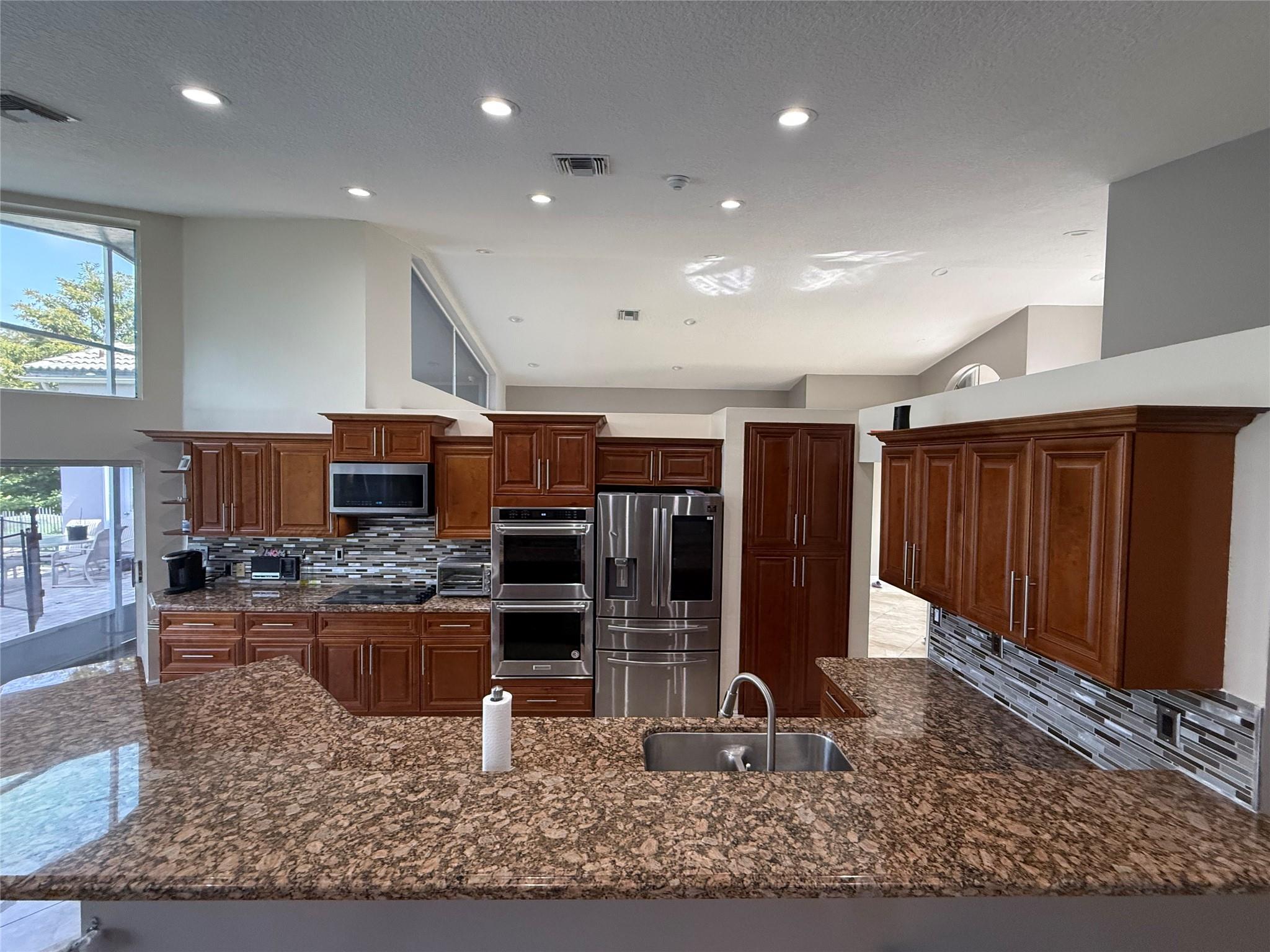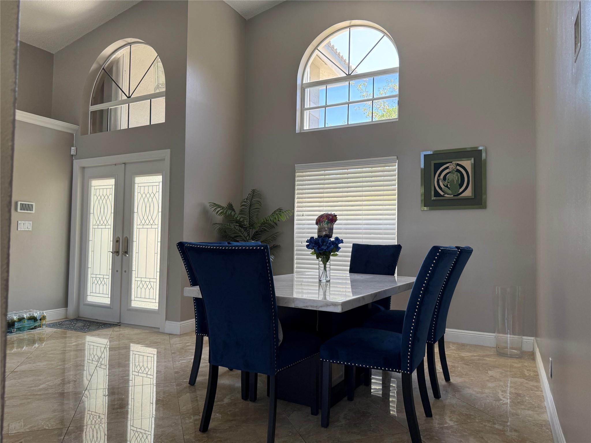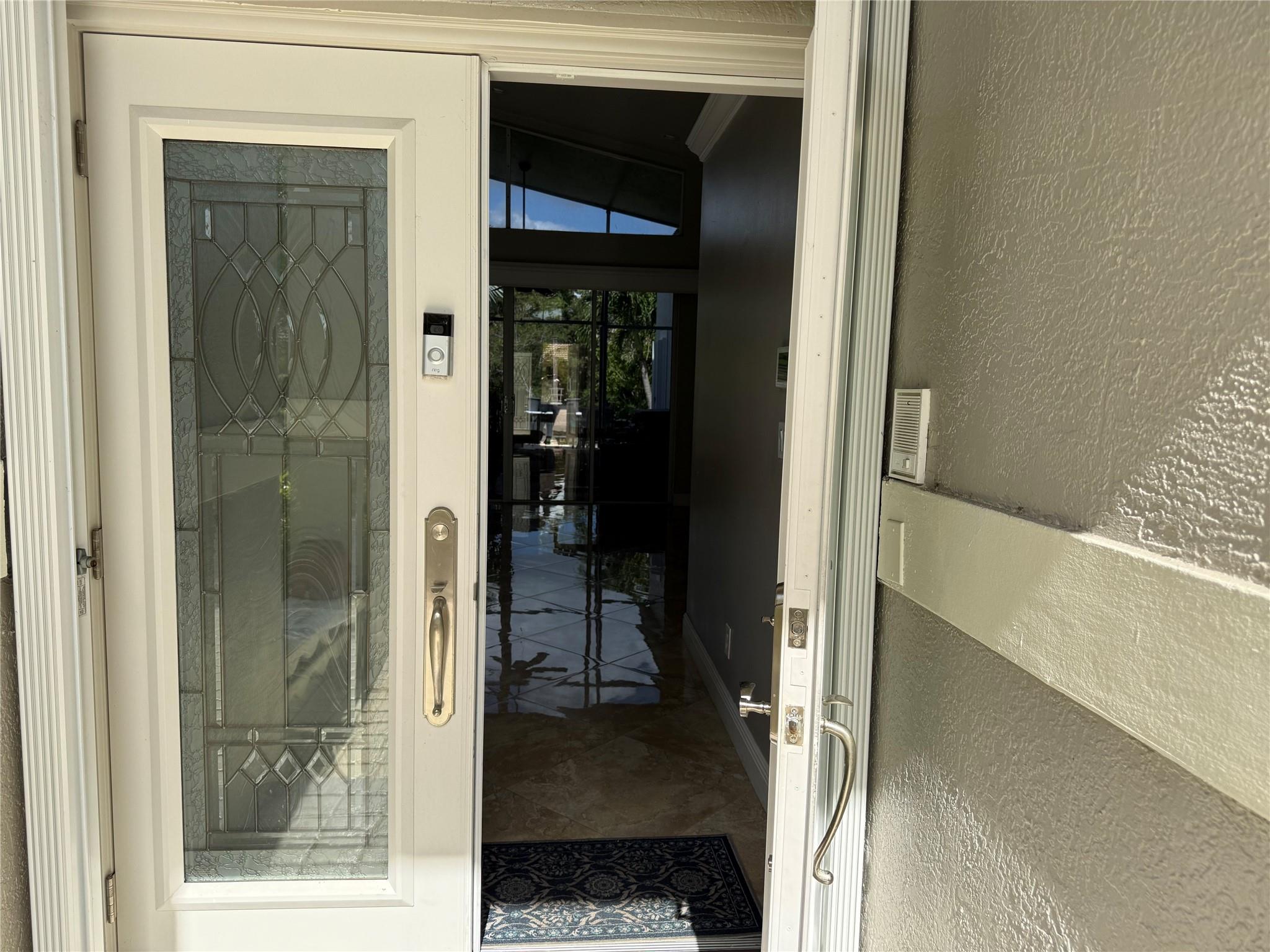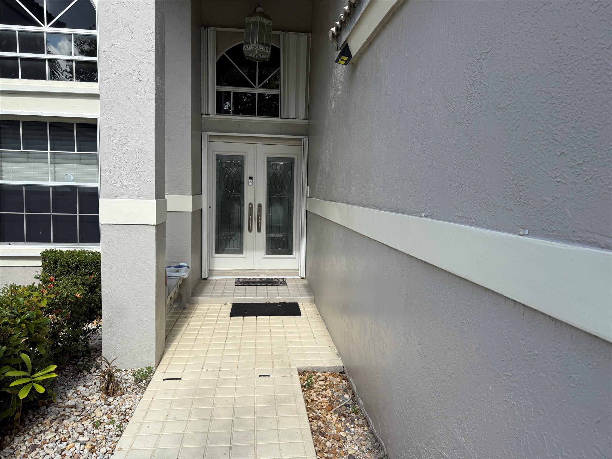 Absolutely stunning 5-bed, 3.5-bath pool home with water views in the guard-gated Eagle Trace community. Built in 1991, a 2024 appraisal confirms 2,654 sq ft under air (tax records show 2,413 sq ft). Well maintained and equipped with two AC units for comfort and efficiency. Set on an oversized lot with no rear neighbors, this natural light home features vaulted ceilings, a split floor plan, and a remodeled kitchen with granite counters, wood cabinets, and stainless steel appliances. The spacious primary suite offers a walk-in closet and a luxurious bathtub and separate shower with dual sinks. Includes formal living and dining areas, updated guest bath, accordion shutters, and ceramic tile in main areas. Relax by the tranquil pool with peaceful water view—perfect for entertaining.