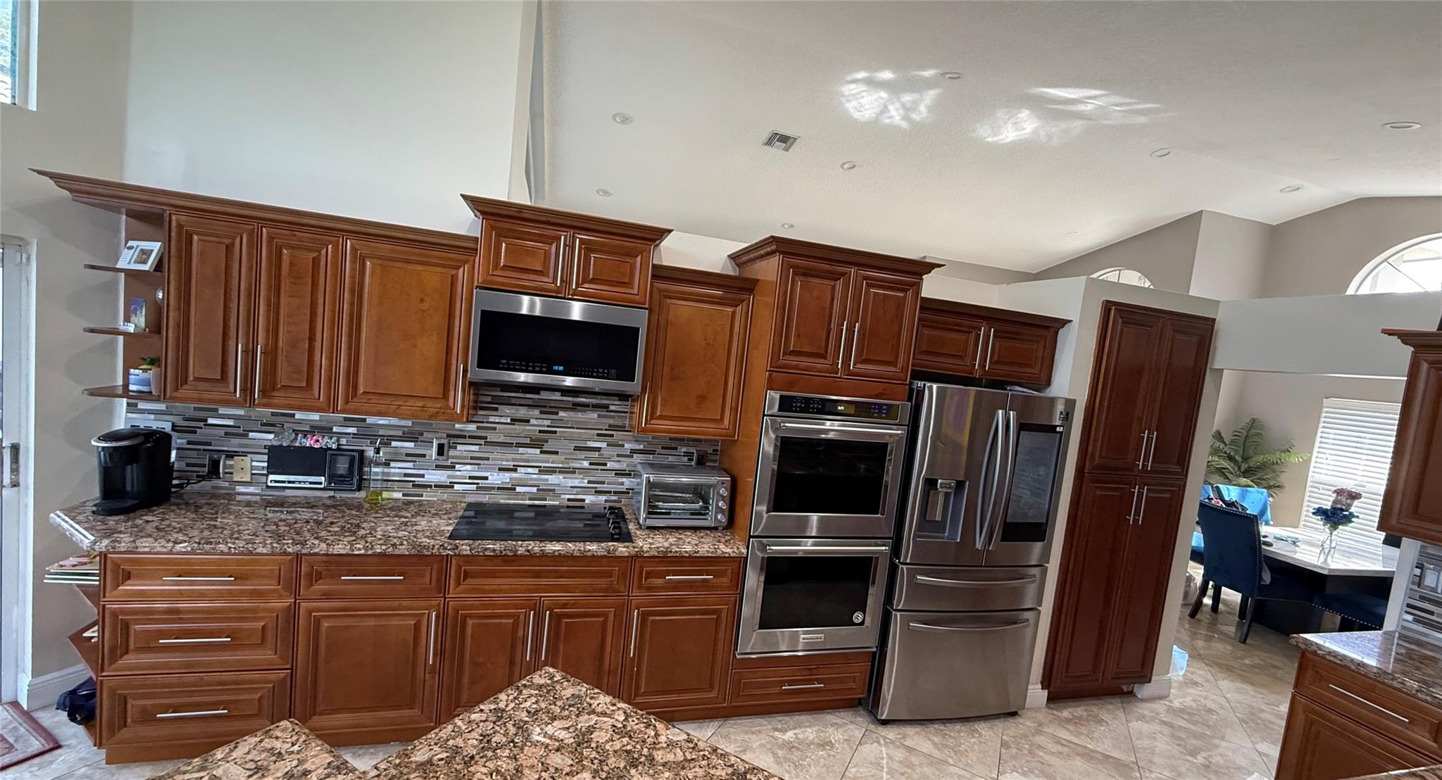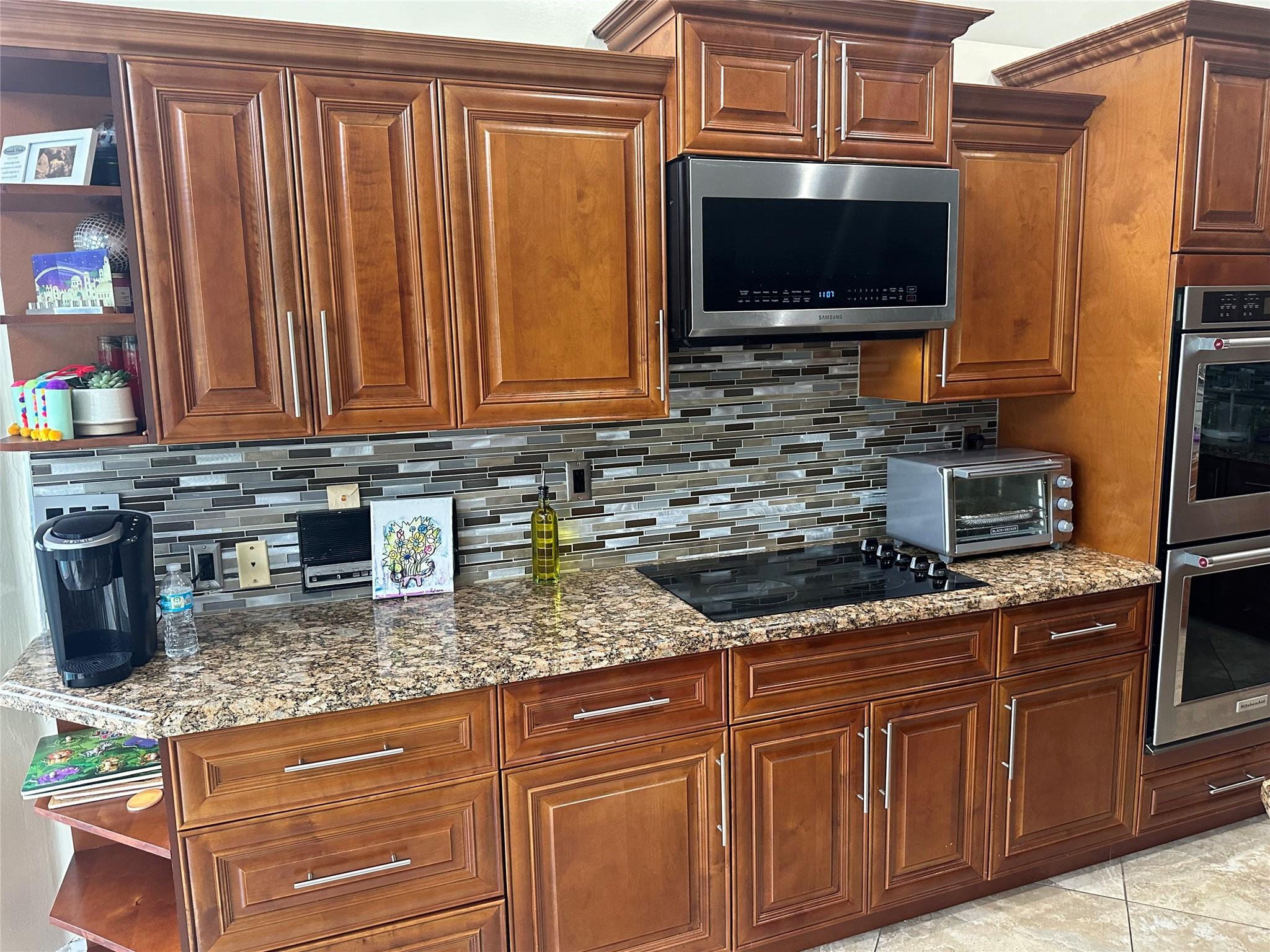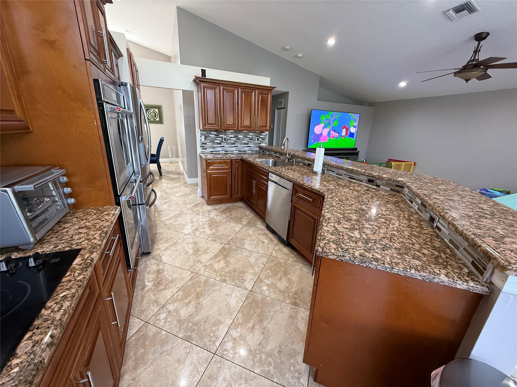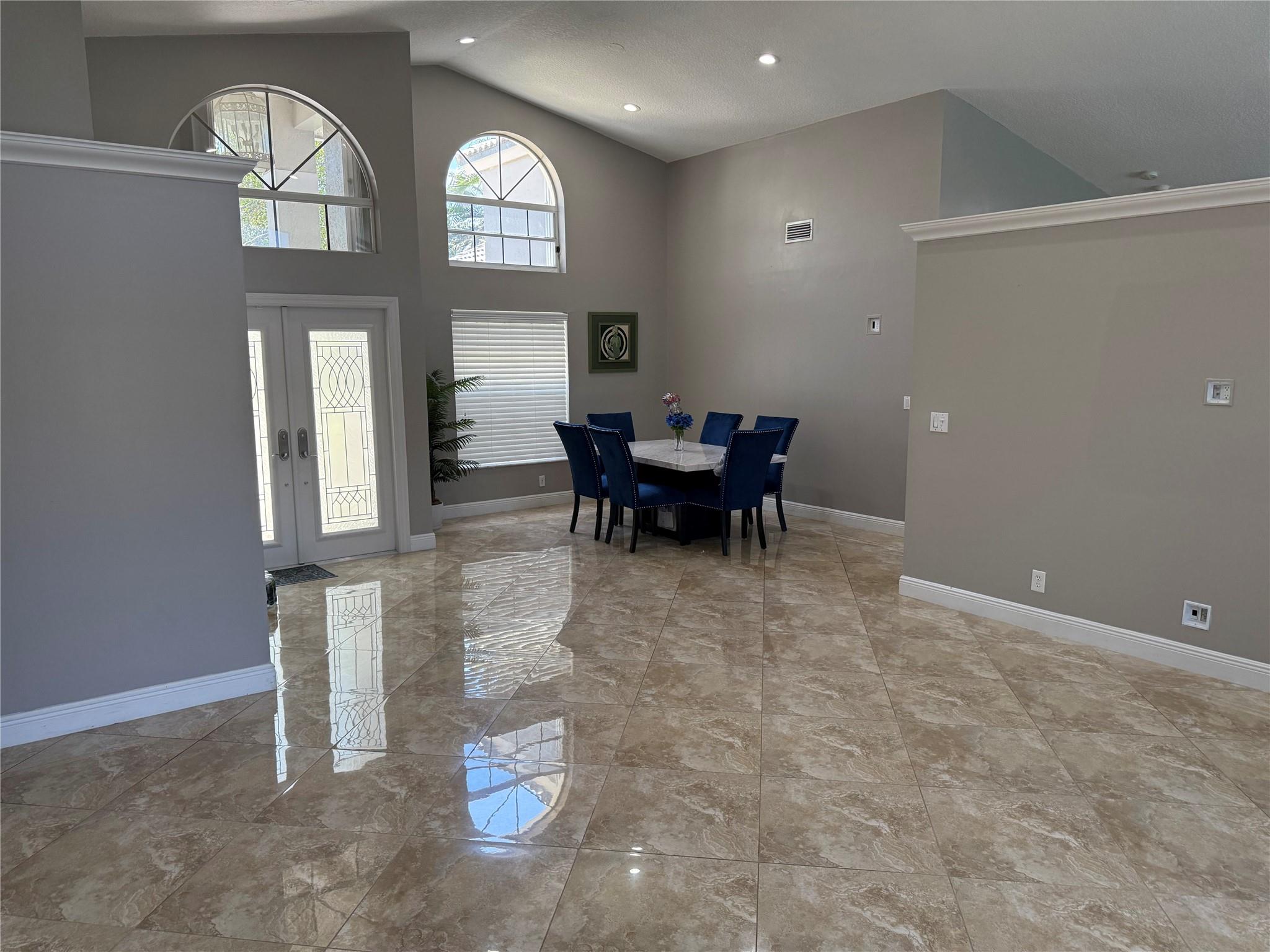 Absolutely stunning 5-bed, 3.5-bath pool home with water views in the guard-gated Eagle Trace community. Built in 1991, a 2024 appraisal confirms 2,654 sq ft under air (tax records show 2,413 sq ft). Well maintained and equipped with two AC units for comfort and efficiency. Set on an oversized lot with no rear neighbors, this natural light home features vaulted ceilings, a split floor plan, and a remodeled kitchen with granite counters, wood cabinets, and stainless steel appliances. The spacious primary suite offers a walk-in closet and a luxurious bathtub and separate shower with dual sinks. Includes formal living and dining areas, updated guest bath, accordion shutters, and ceramic tile in main areas. Relax by the tranquil pool with peaceful water view—perfect for entertaining.