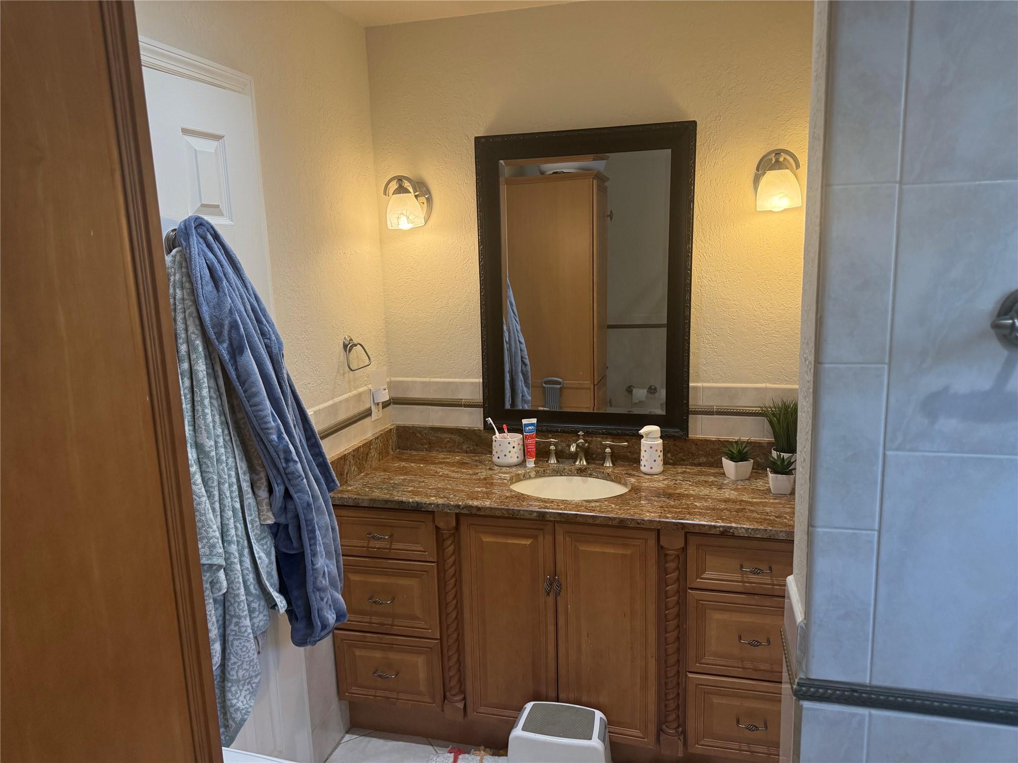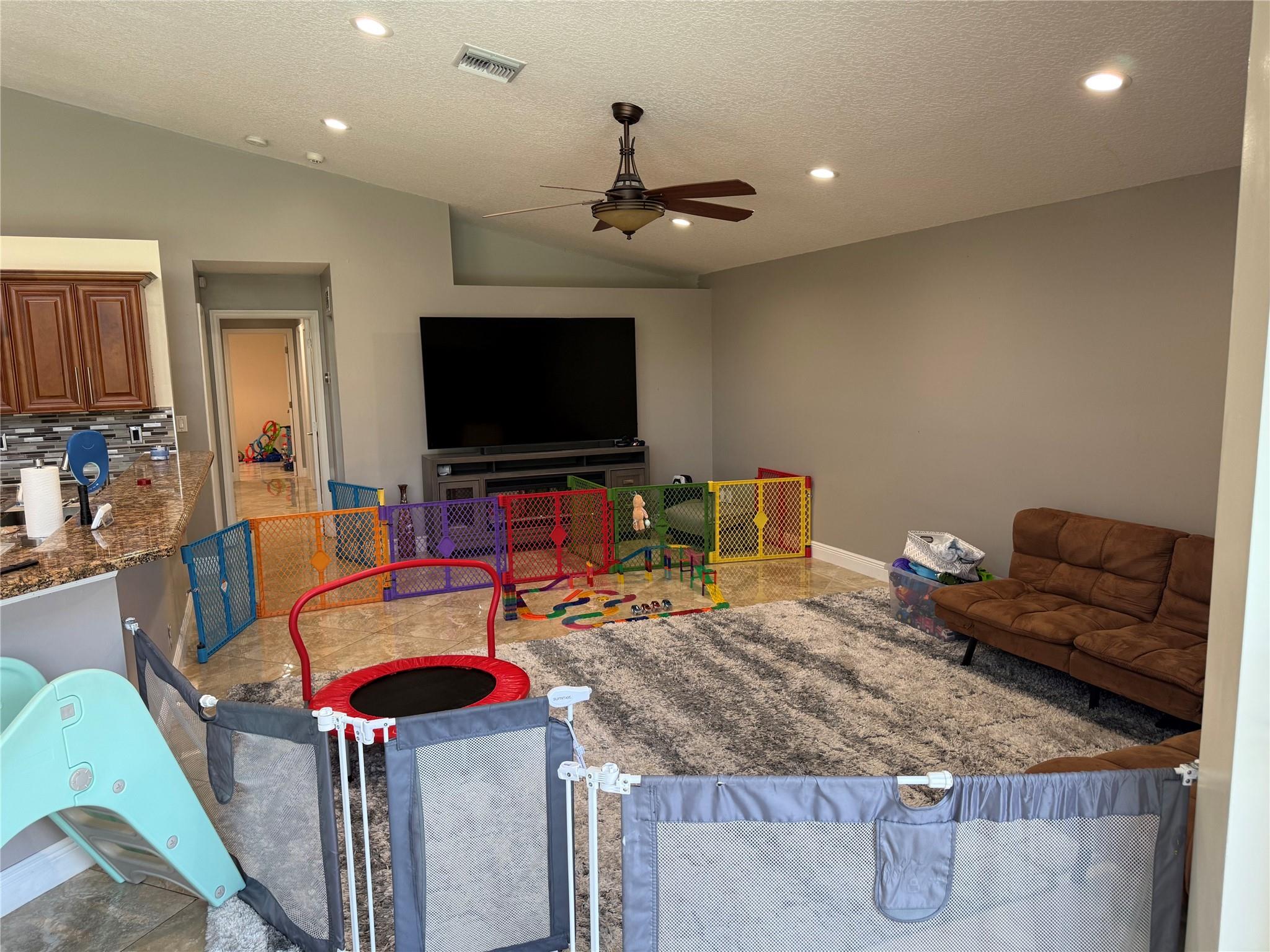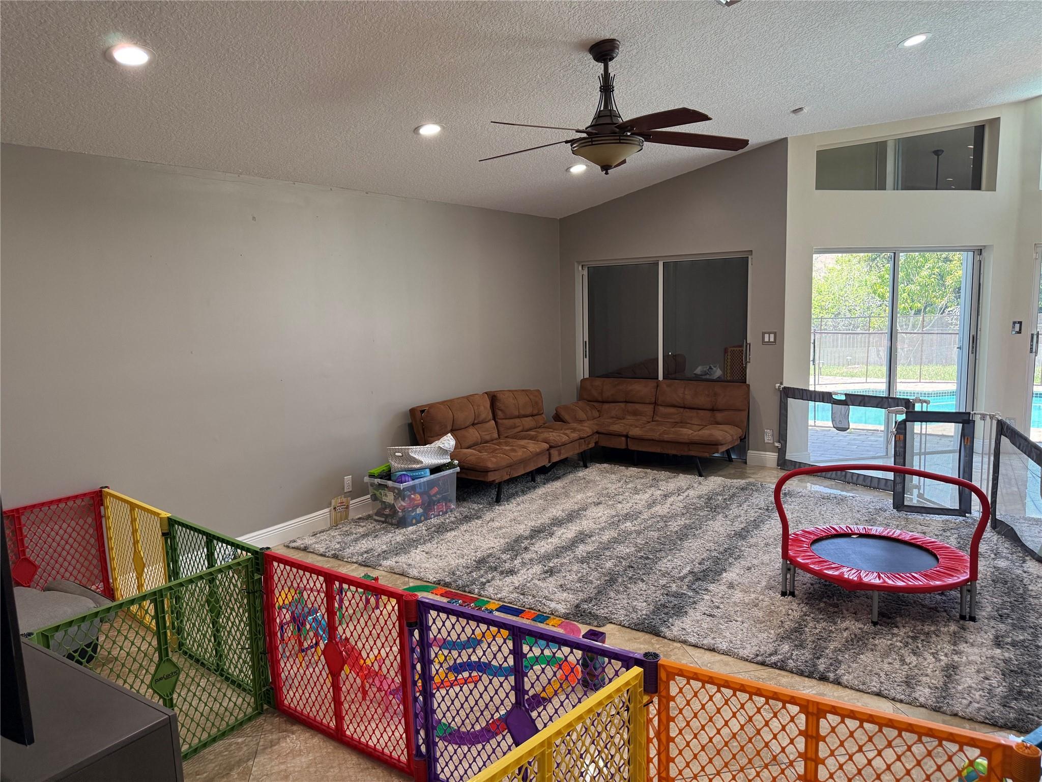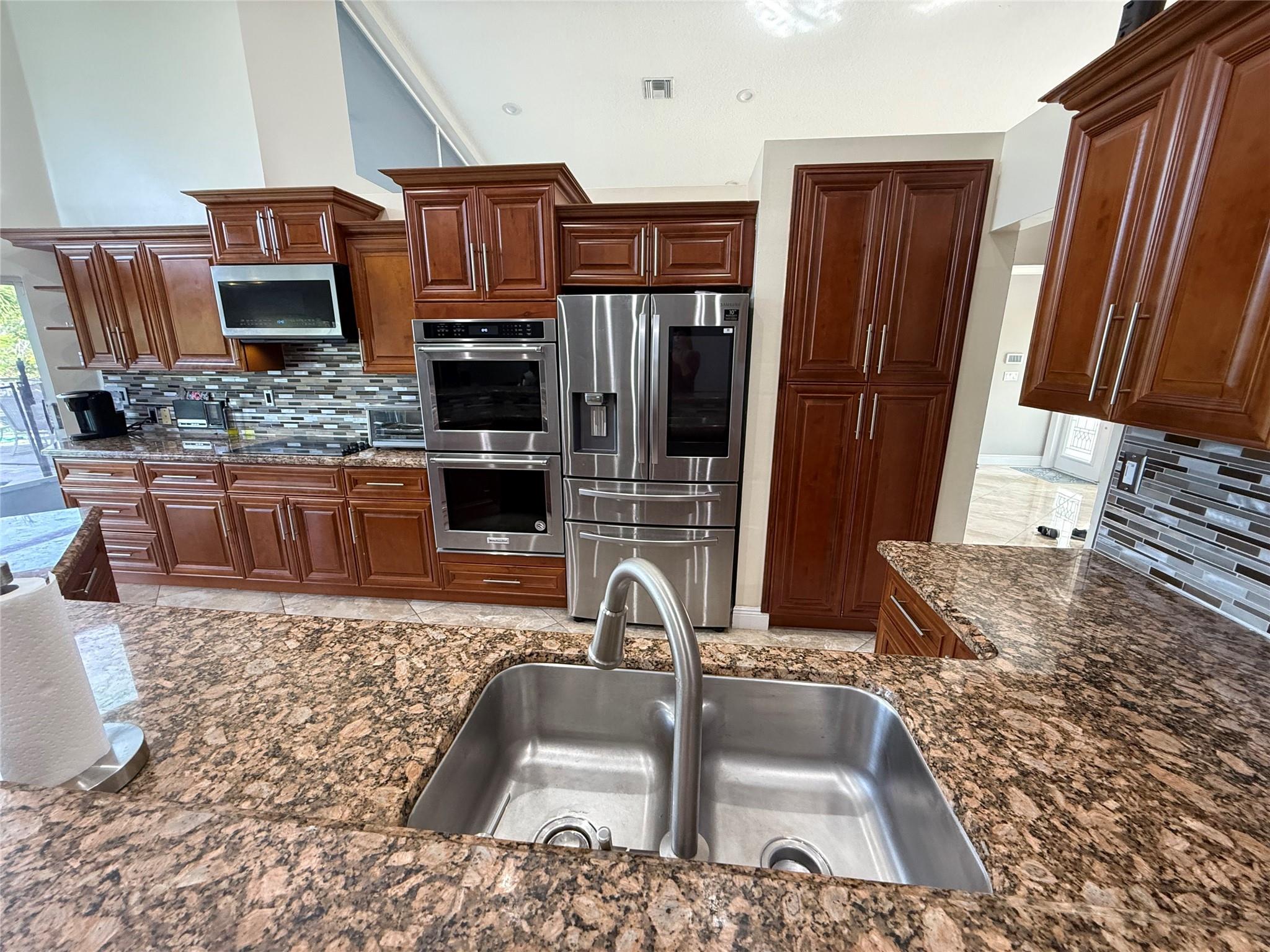 Absolutely stunning 5-bed, 3.5-bath pool home with water views in the guard-gated Eagle Trace community. Built in 1991, a 2024 appraisal confirms 2,654 sq ft under air (tax records show 2,413 sq ft). Well maintained and equipped with two AC units for comfort and efficiency. Set on an oversized lot with no rear neighbors, this natural light home features vaulted ceilings, a split floor plan, and a remodeled kitchen with granite counters, wood cabinets, and stainless steel appliances. The spacious primary suite offers a walk-in closet and a luxurious bathtub and separate shower with dual sinks. Includes formal living and dining areas, updated guest bath, accordion shutters, and ceramic tile in main areas. Relax by the tranquil pool with peaceful water view—perfect for entertaining.