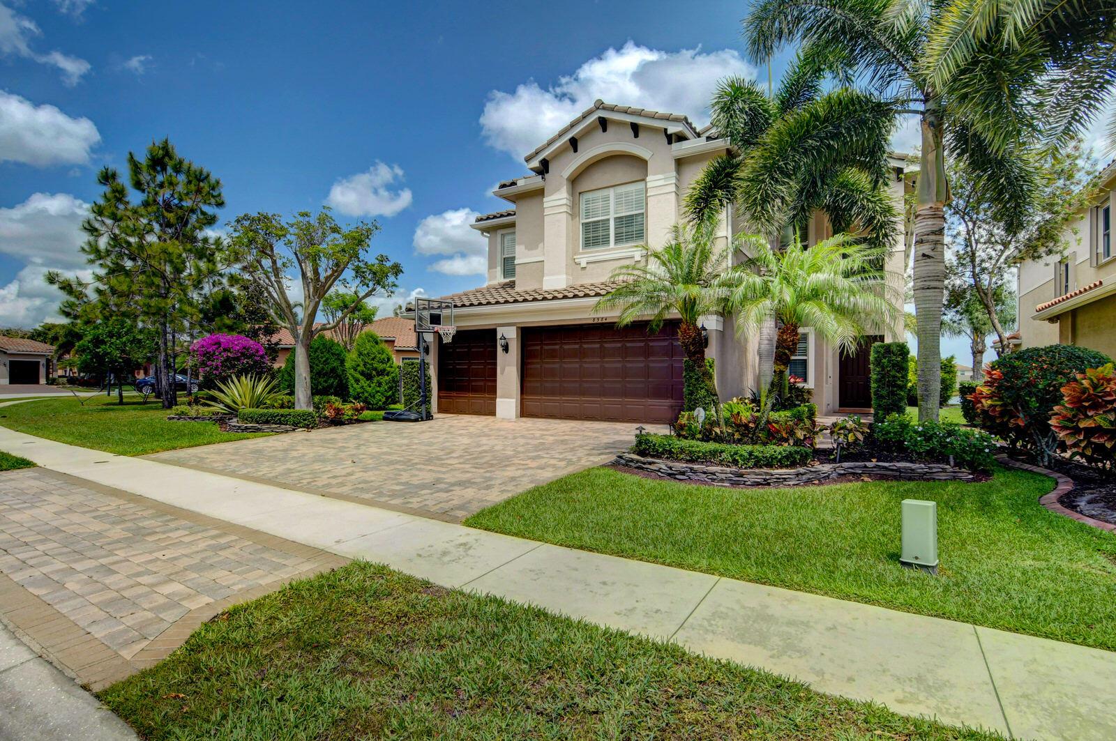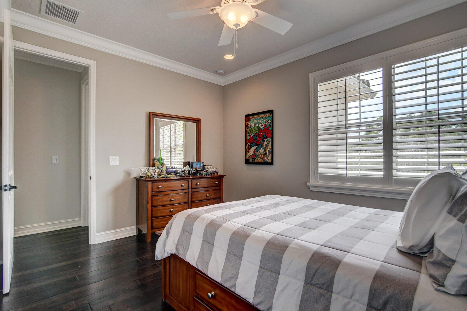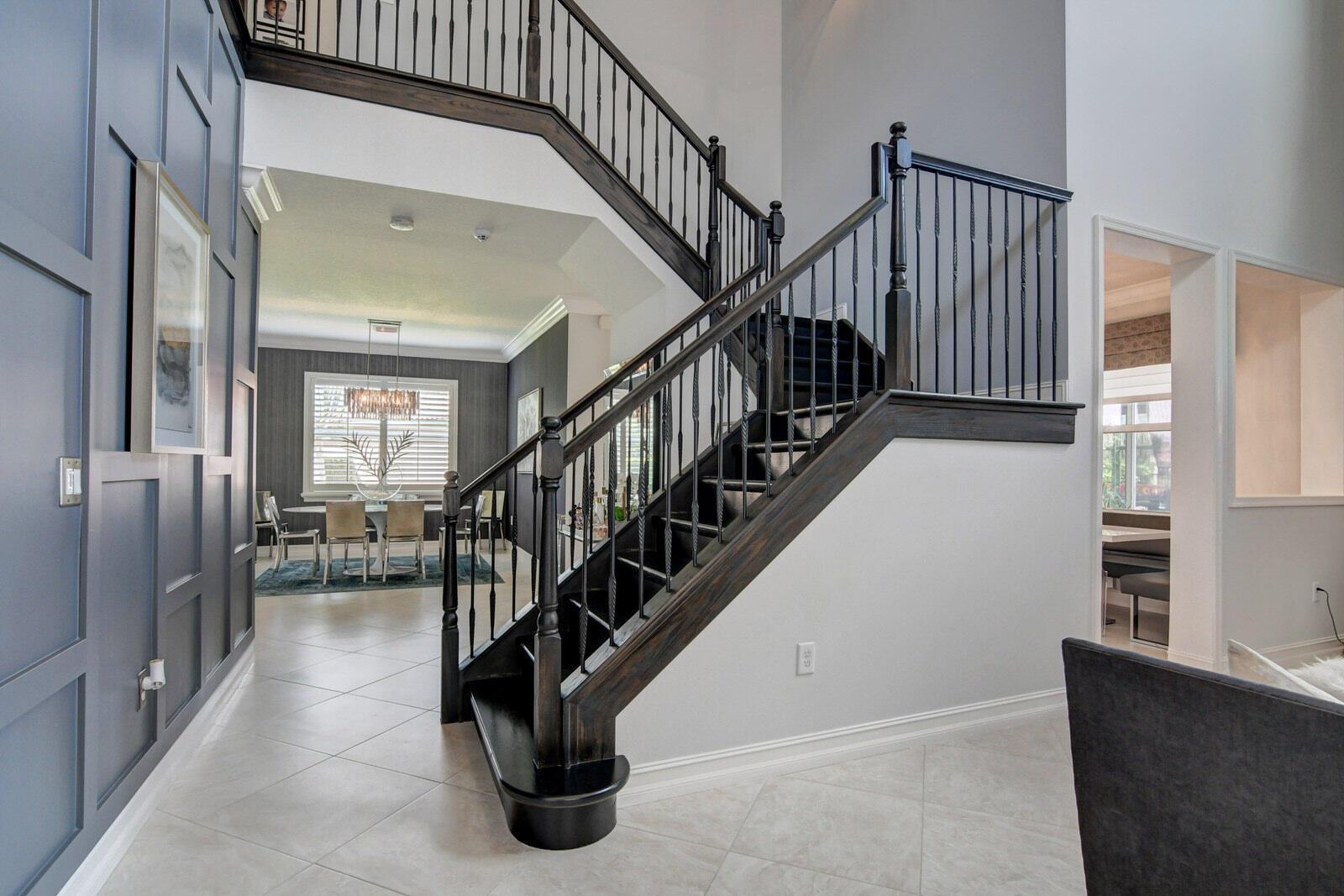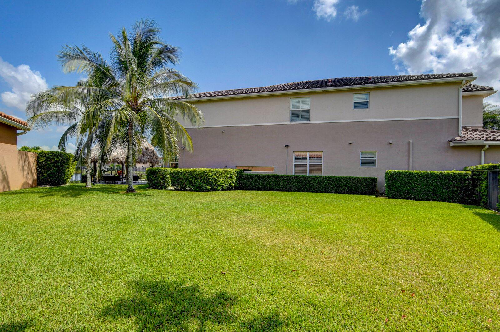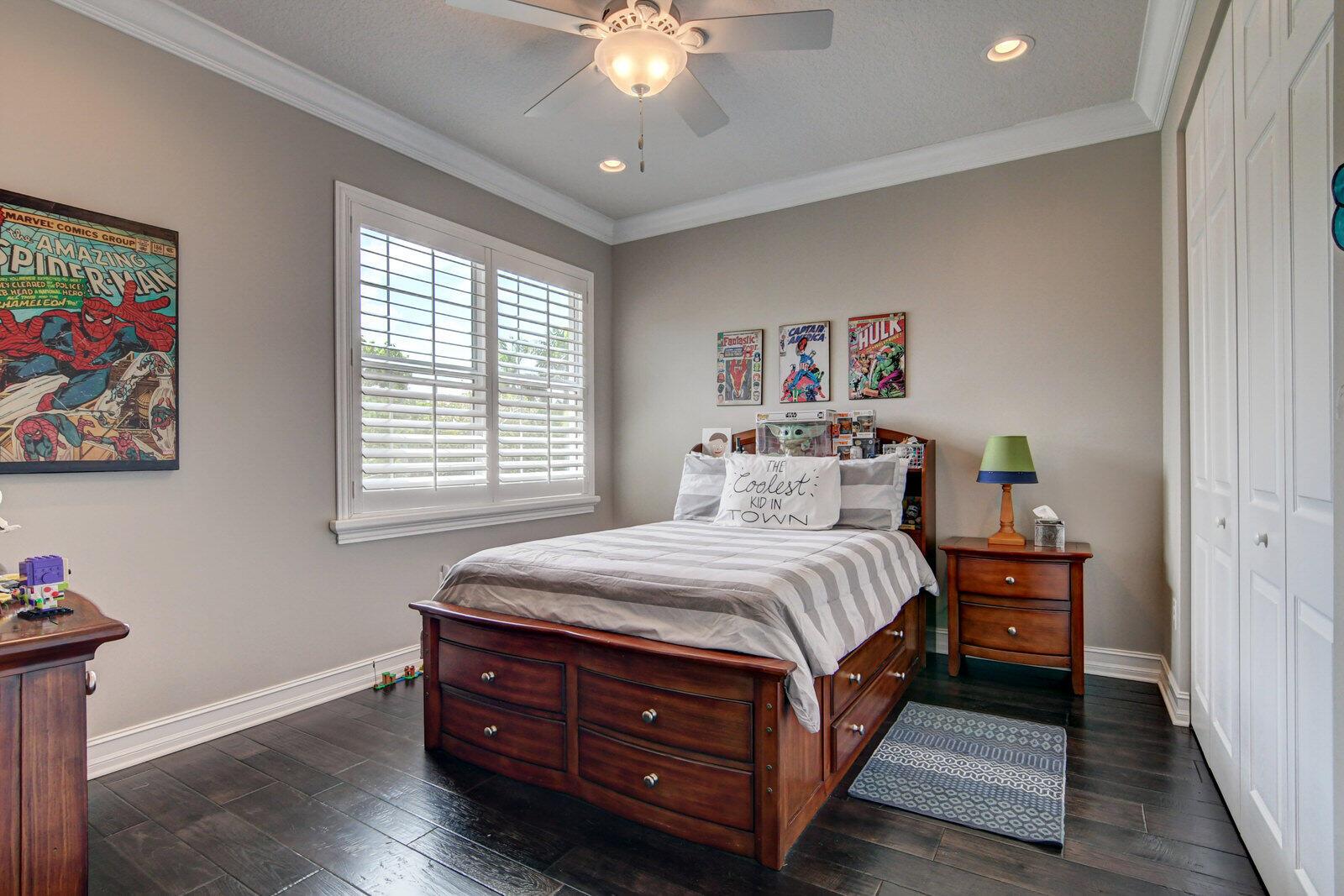 Step into tropical luxury with this immaculate lakefront home on a premier oversized lot. Enjoy heated resort style salt water pool and hot tub with LED lighting, Wi-Fi automation, travertine deck, and a tiki hut – perfect for entertaining. The beautiful kitchen features 42′ cabinets, granite counters and full backsplash, built-in pantry, and reverse osmosis water system. Master suite includes custom built-in him and hers walk-in closets. The downstairs 4th bedroom comes with beautiful built-in office furniture. Highlights include wood floors on the second floor, crown molding, custom drapery, plantation shutters, iron staircase, and stunning chandeliers in various rooms. This home is filled with stunning decorative touches, completely move-in ready with nothing left do.