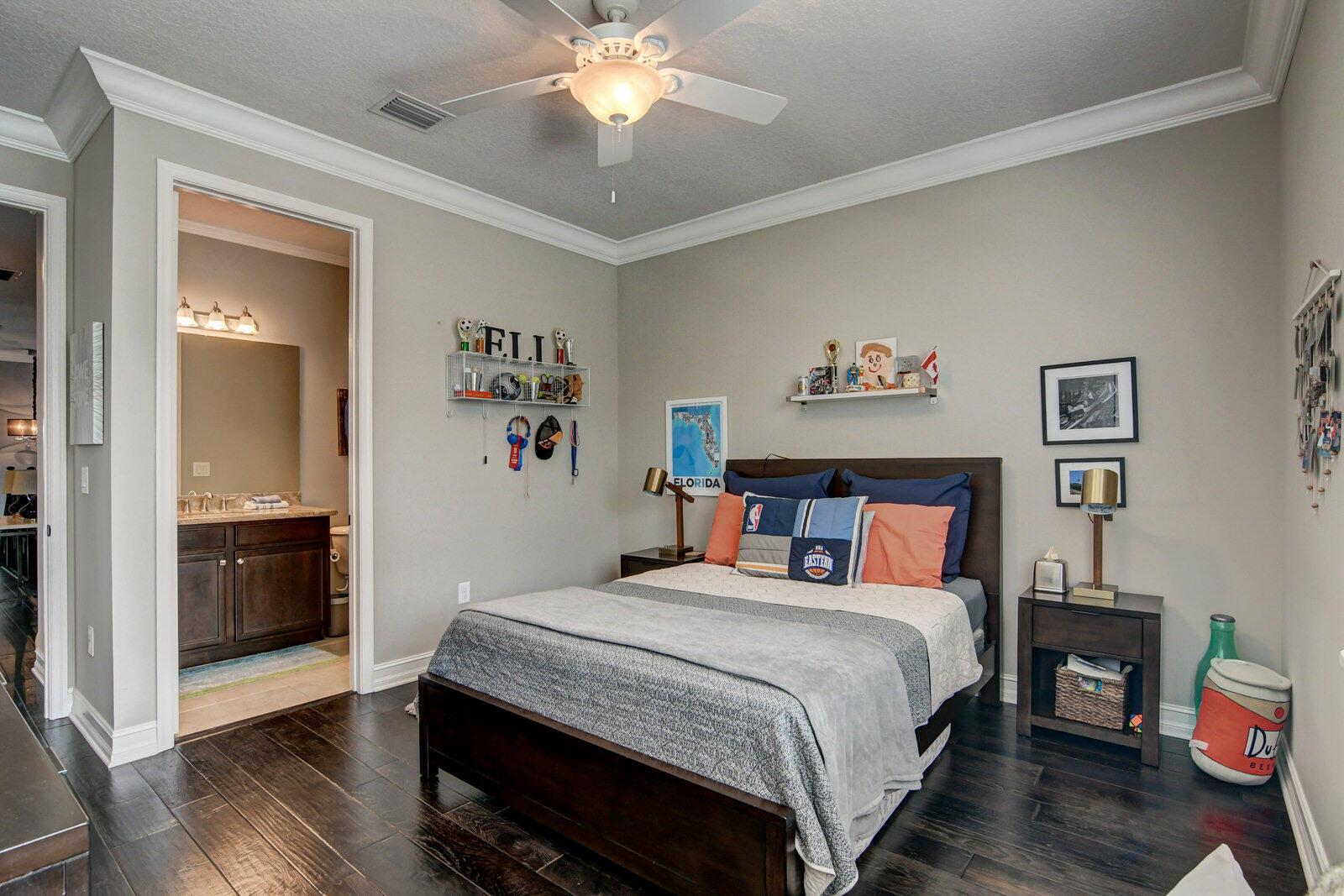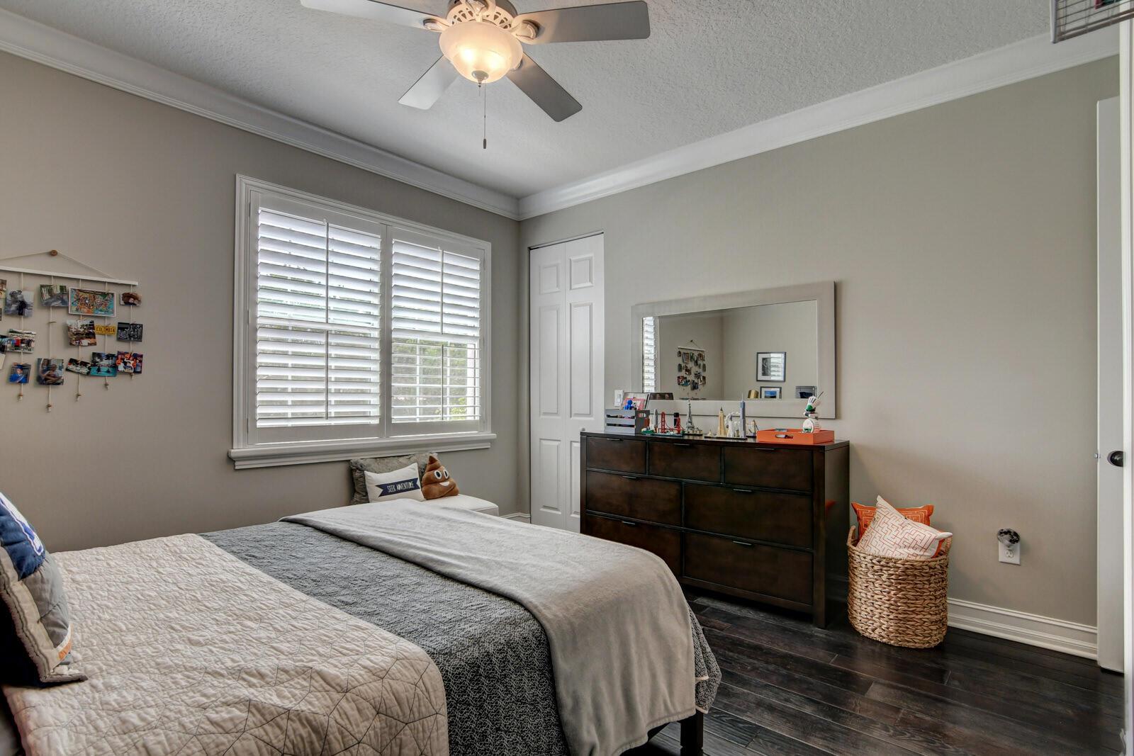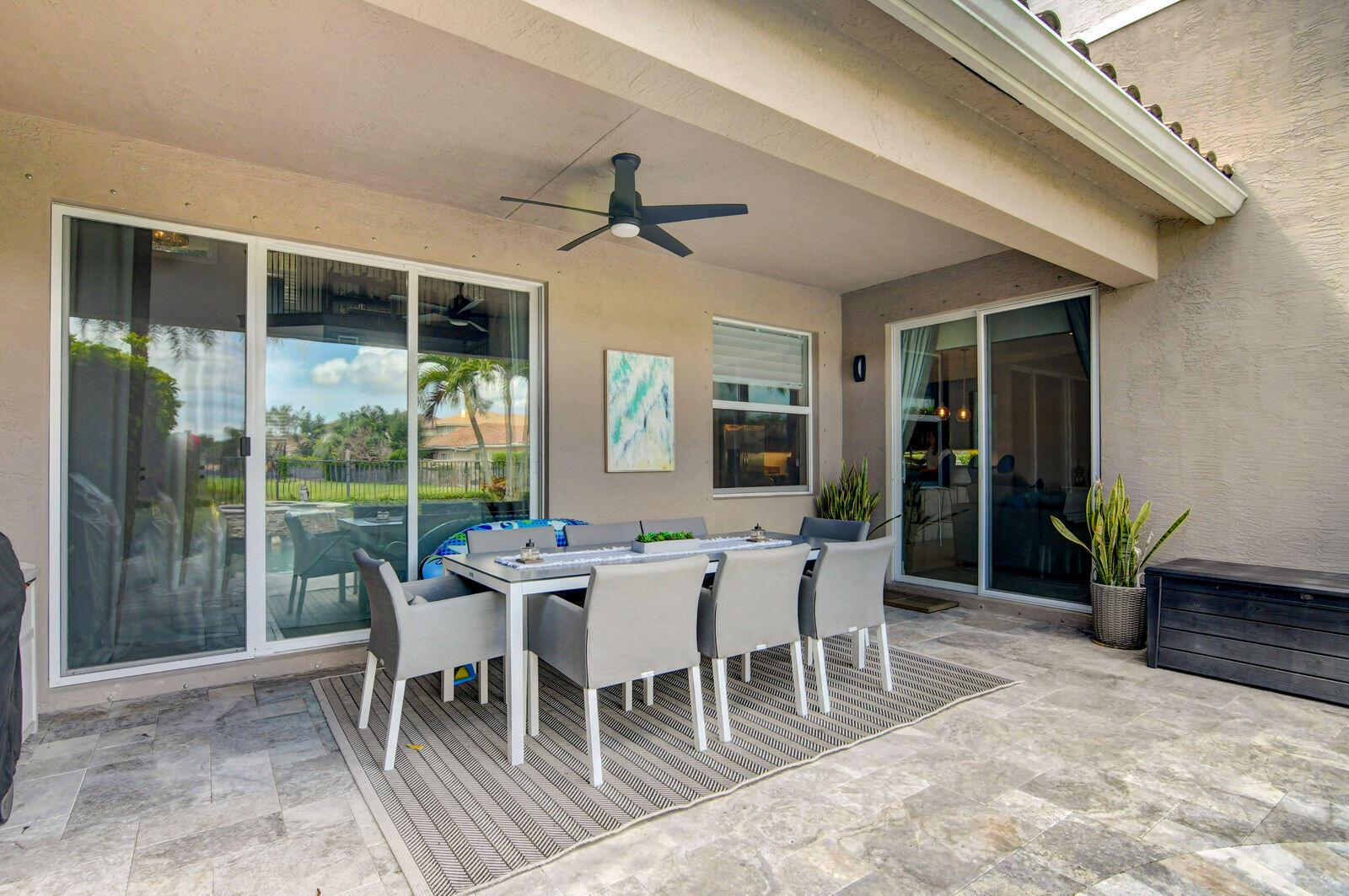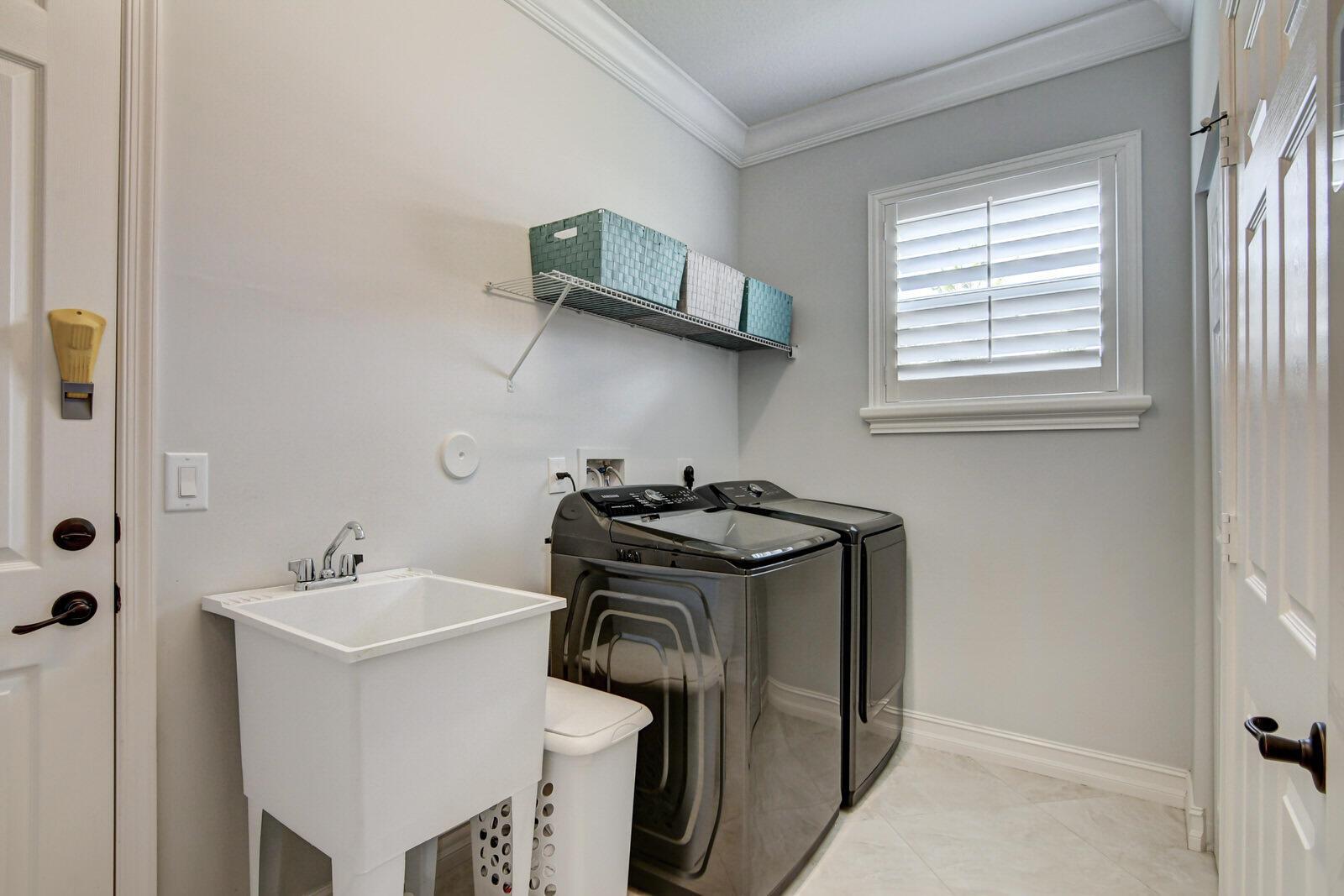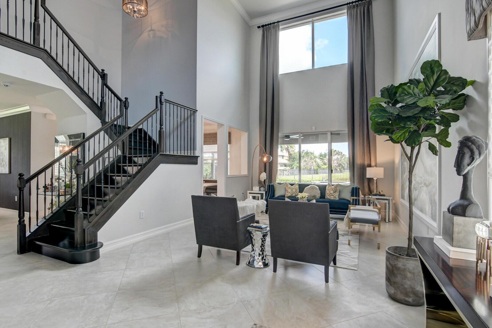 Step into tropical luxury with this immaculate lakefront home on a premier oversized lot. Enjoy heated resort style salt water pool and hot tub with LED lighting, Wi-Fi automation, travertine deck, and a tiki hut – perfect for entertaining. The beautiful kitchen features 42′ cabinets, granite counters and full backsplash, built-in pantry, and reverse osmosis water system. Master suite includes custom built-in him and hers walk-in closets. The downstairs 4th bedroom comes with beautiful built-in office furniture. Highlights include wood floors on the second floor, crown molding, custom drapery, plantation shutters, iron staircase, and stunning chandeliers in various rooms. This home is filled with stunning decorative touches, completely move-in ready with nothing left do.