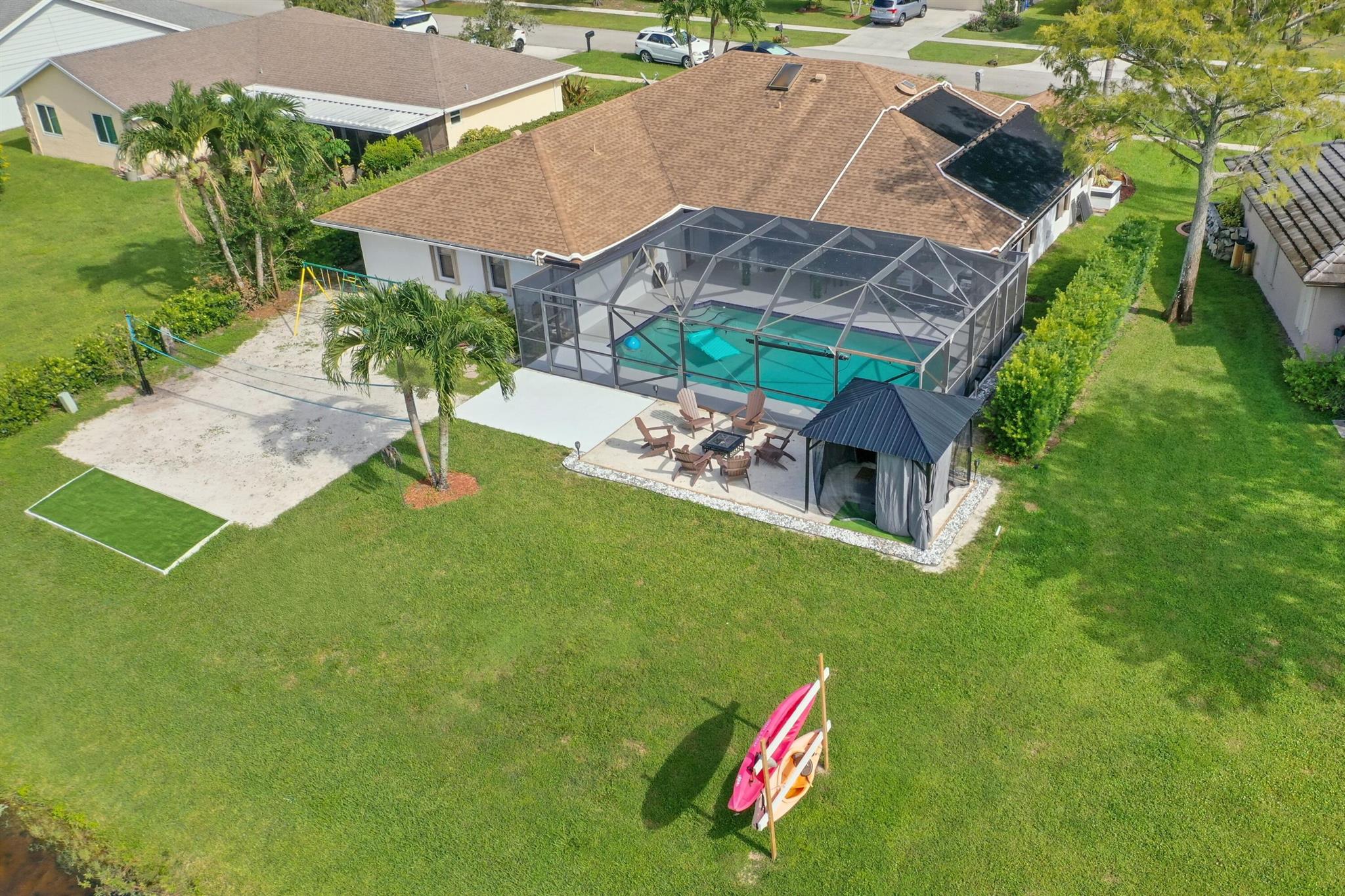 Discover the allure of this stunning just remodel 5/3 home , boasting the picturesque water view you’ve been longing for! Step into a residence where the master suite, dining room, and kitchen seamlessly connect to the expansive covered and screened pool/patio area, creating a perfect setting for memorable gatherings with family and friends. Indulge in the master suite’s amenities, featuring a spacious soak tub, a separate shower, and a generous walk-in closet, providing a luxurious retreat. The well-appointed kitchen showcases granite countertops, modern appliances, and an open layout to the family room. Enjoy the outdoors with heated pool, providing year-round comfort. ARBNB income.