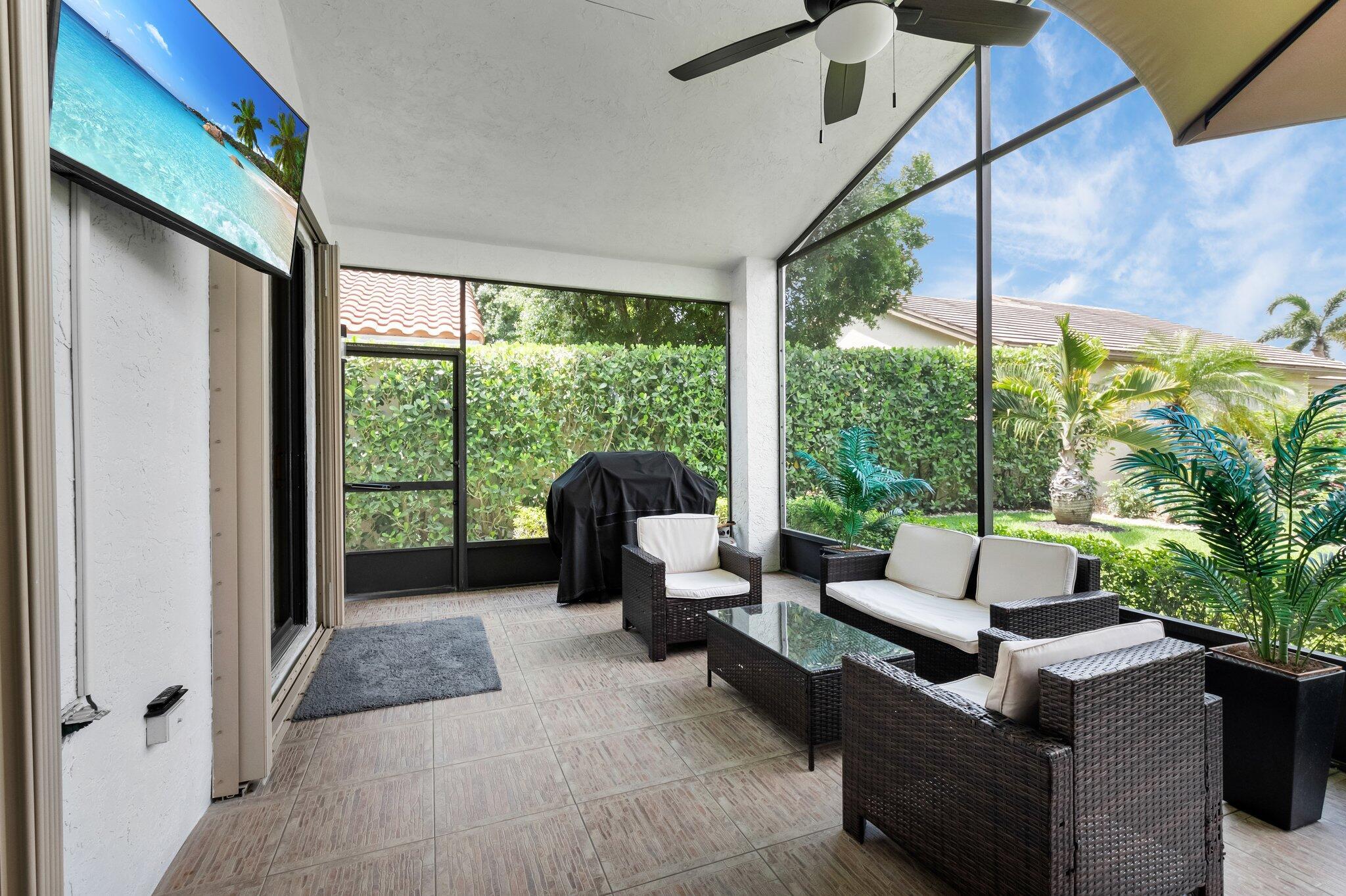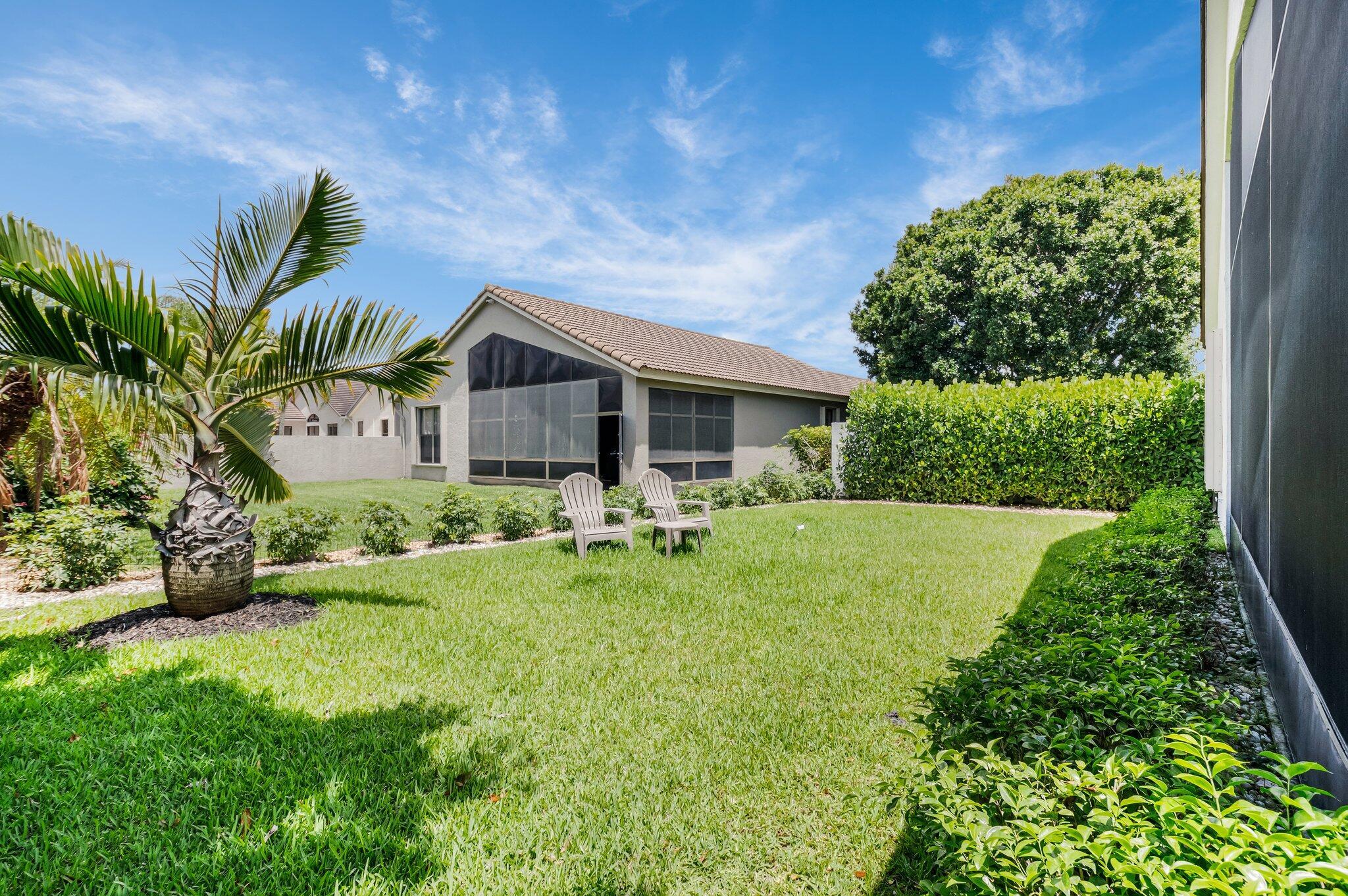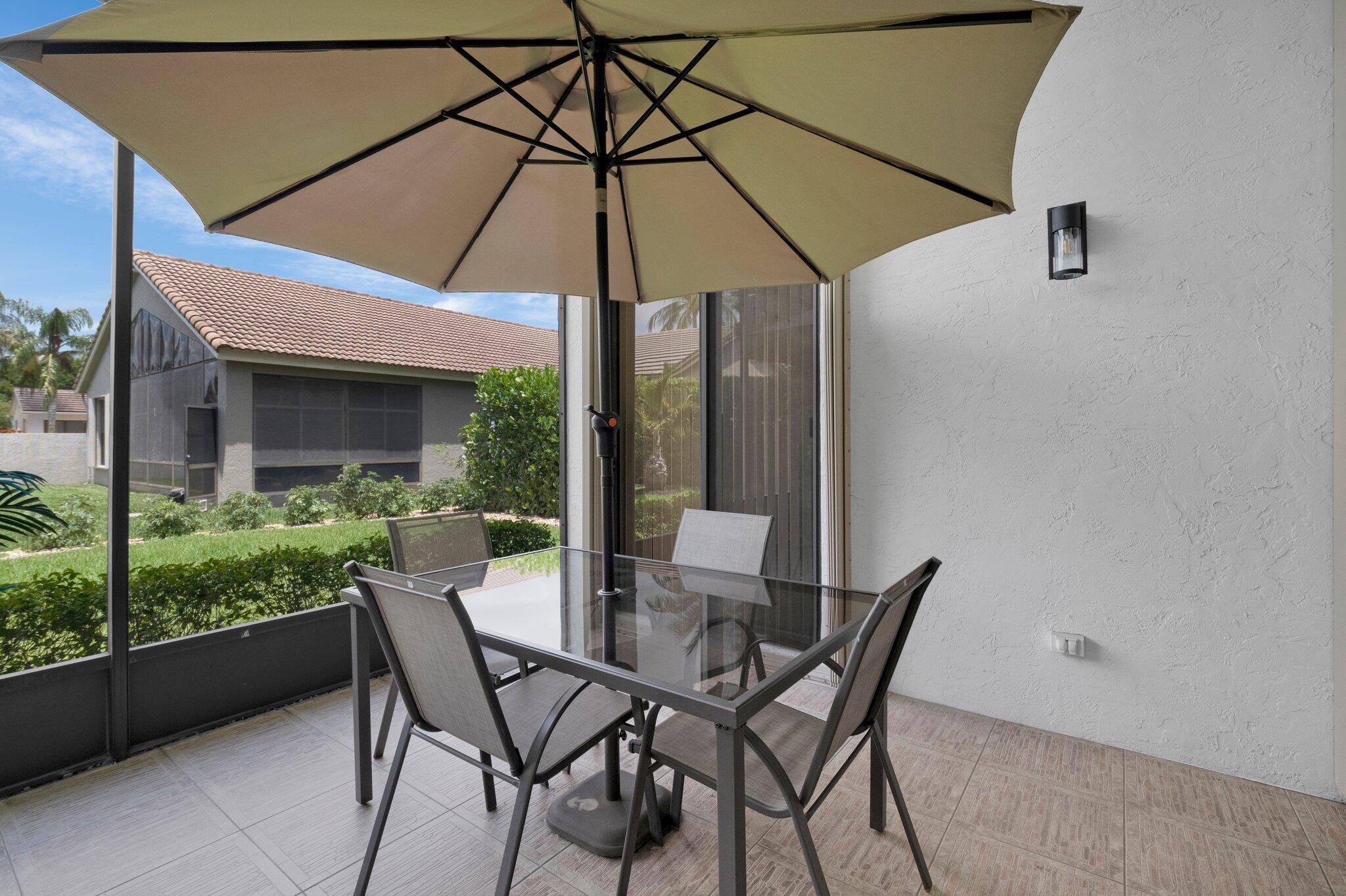 Welcome to this luxurious 2-bedroom, 2-bathroom den home in the highly desirable Lexington Lakes community in Boynton Beach. Offering 1,874 SF of open living space, this home features a seamless floor plan that flows from the entry foyer to the dining room and living room. The eat-in kitchen boasts white cabinetry, newer appliances, granite countertops, and a stylish backsplash, and connects to an updated laundry room.Recent renovations include new flooring, fresh paint, updated landscaping, and a new HVAC system with a Nest thermostat. The master bedroom features updated flooring and a renovated master bath for added comfort. Step outside to a peaceful private backyard, just a few steps away from the large screened-in patio.