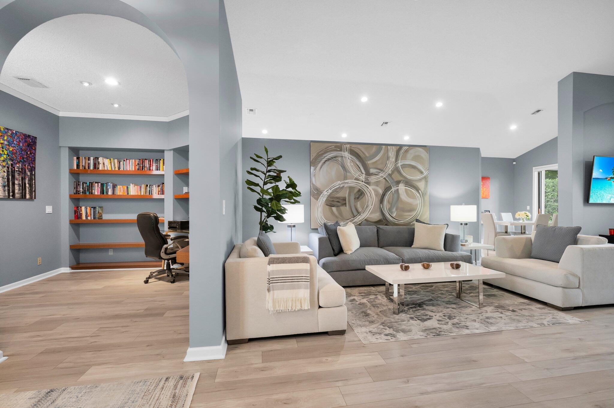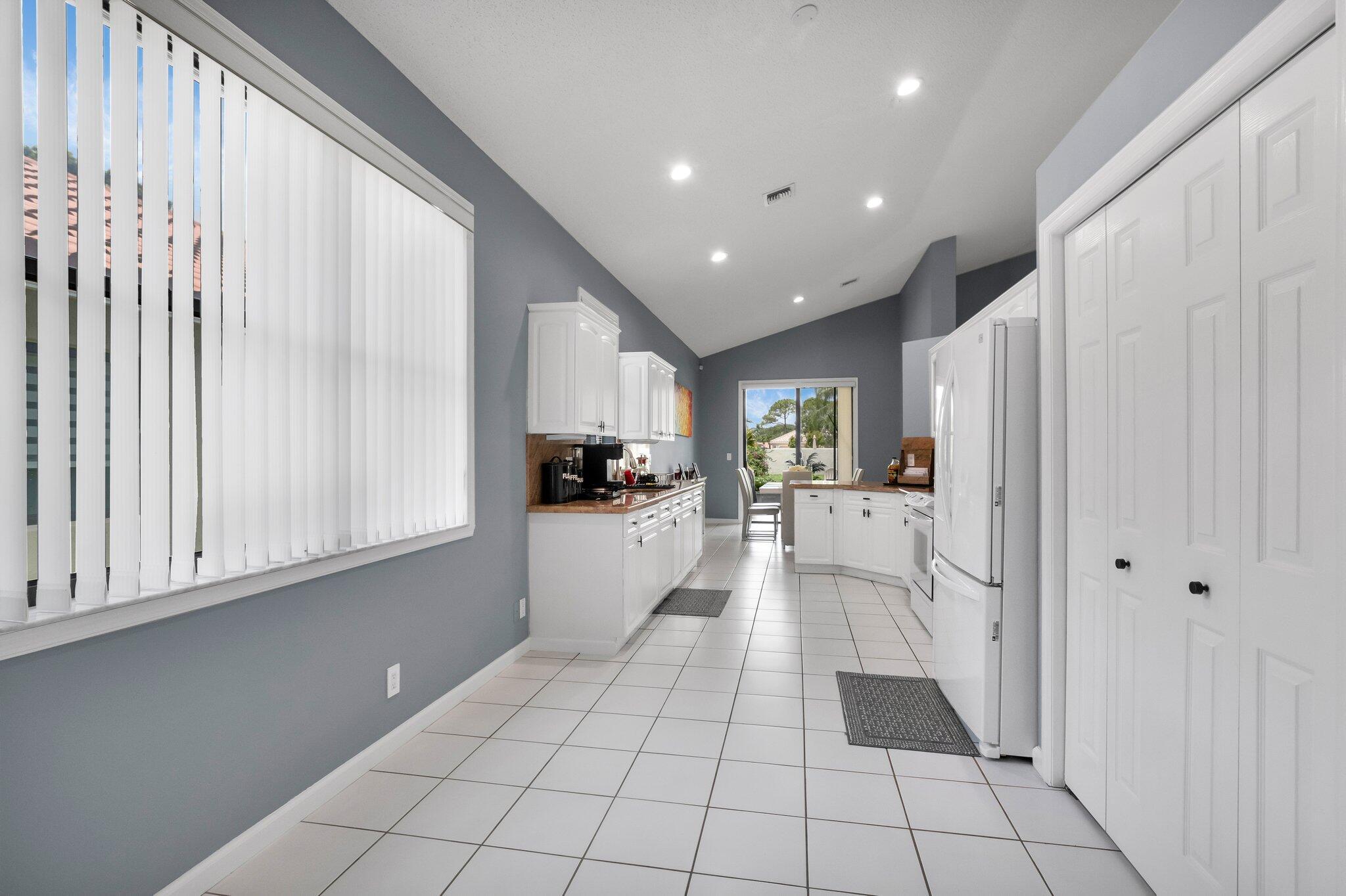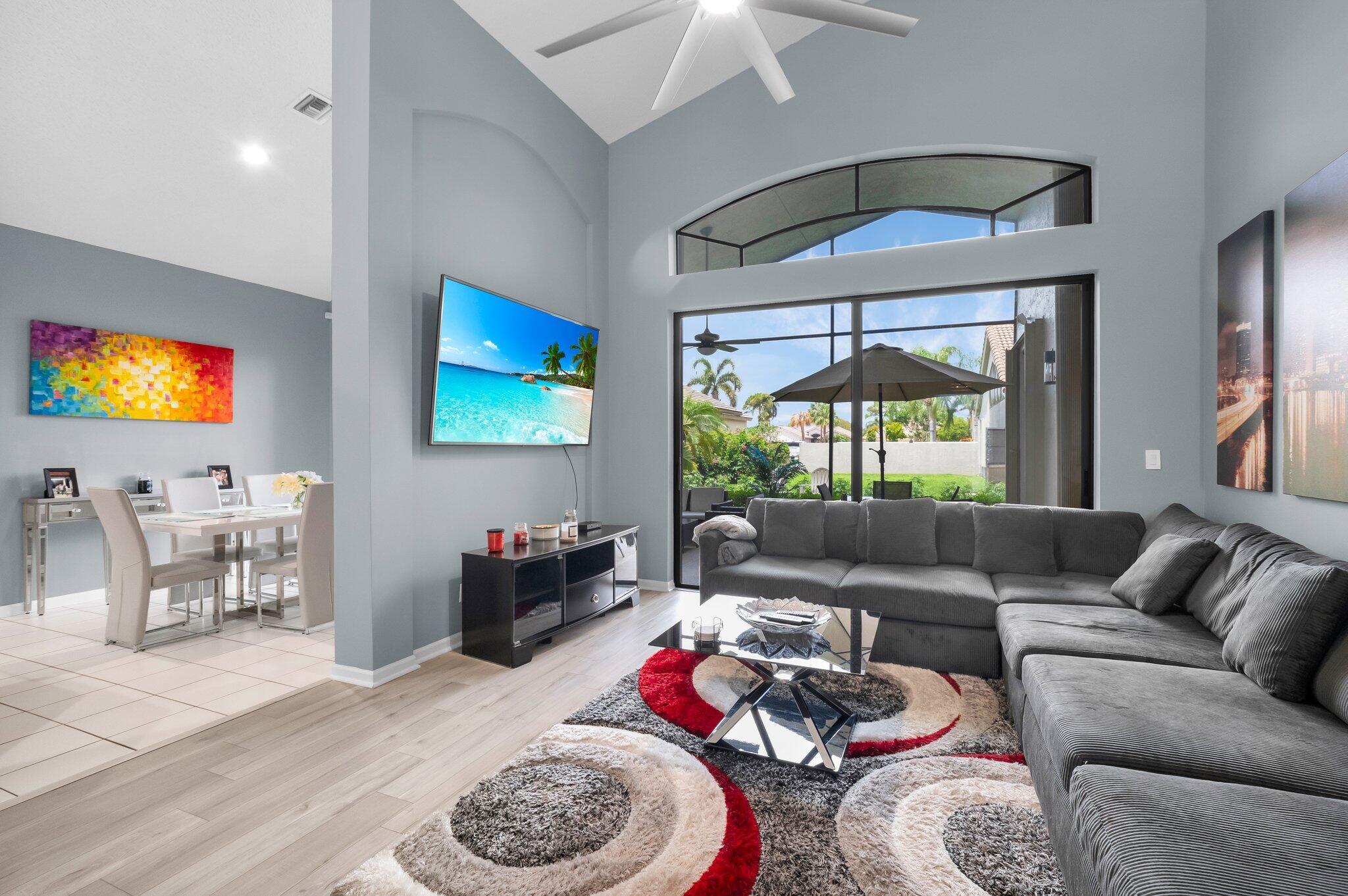 Welcome to this luxurious 2-bedroom, 2-bathroom den home in the highly desirable Lexington Lakes community in Boynton Beach. Offering 1,874 SF of open living space, this home features a seamless floor plan that flows from the entry foyer to the dining room and living room. The eat-in kitchen boasts white cabinetry, newer appliances, granite countertops, and a stylish backsplash, and connects to an updated laundry room.Recent renovations include new flooring, fresh paint, updated landscaping, and a new HVAC system with a Nest thermostat. The master bedroom features updated flooring and a renovated master bath for added comfort. Step outside to a peaceful private backyard, just a few steps away from the large screened-in patio.