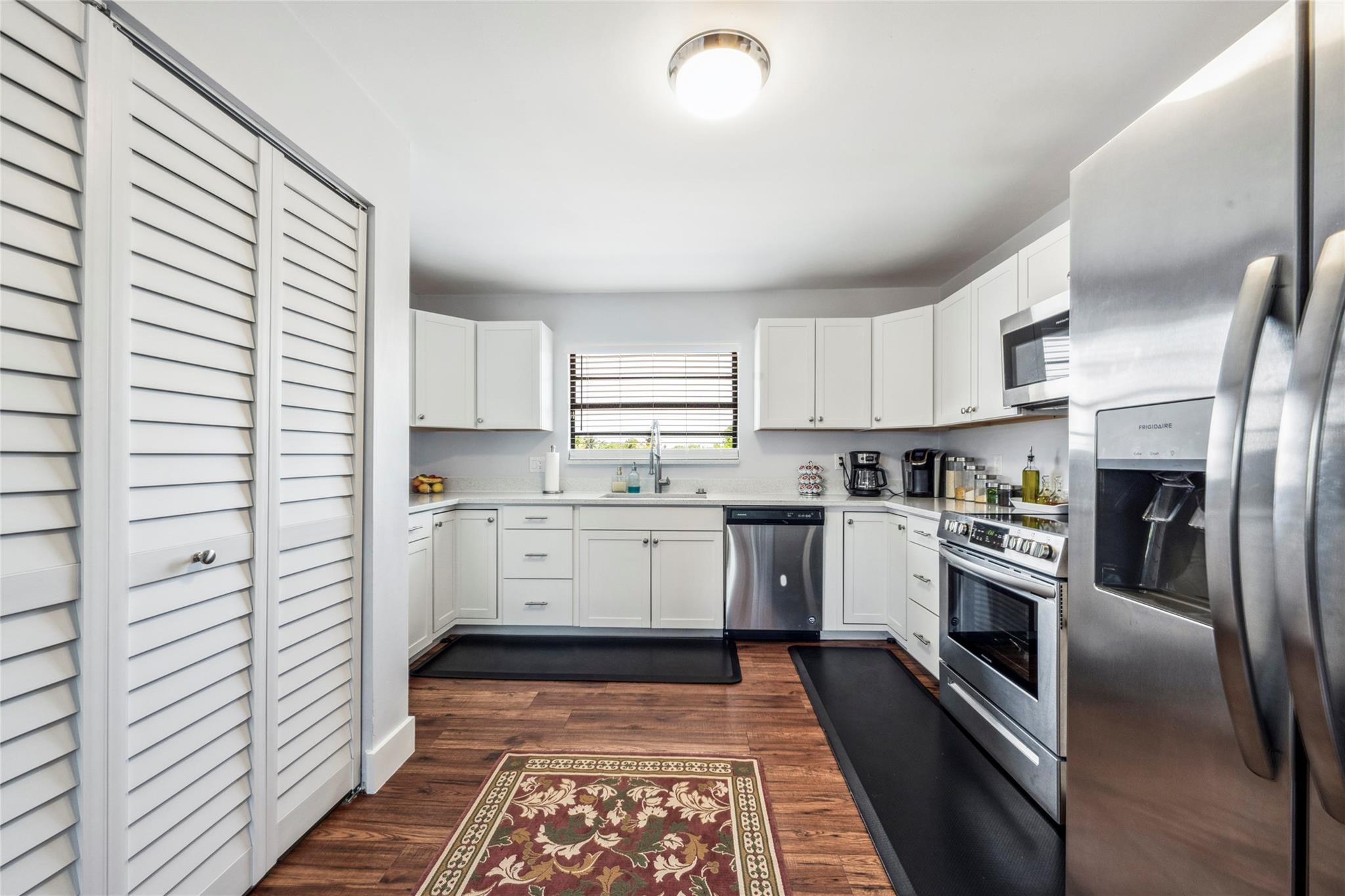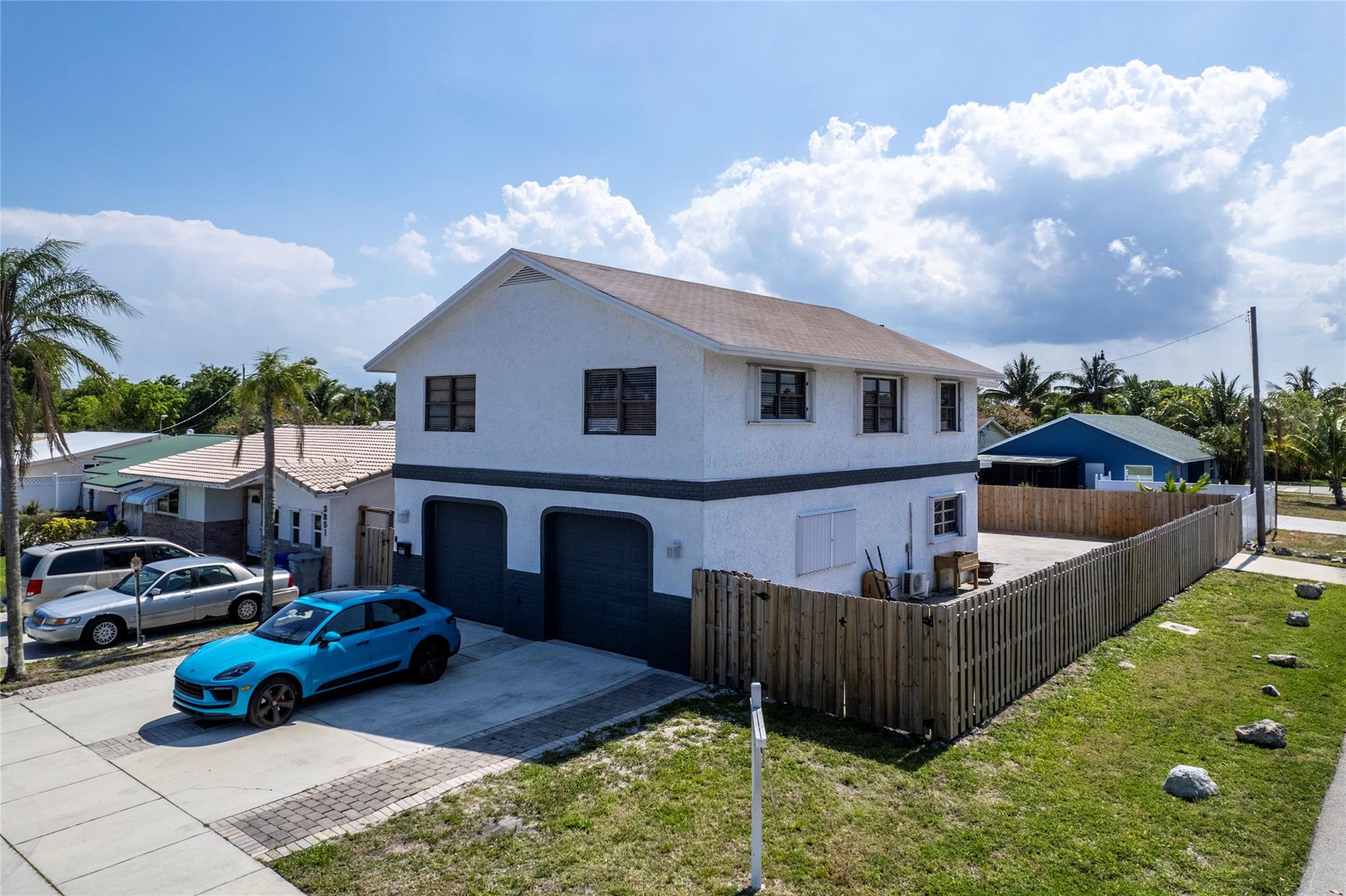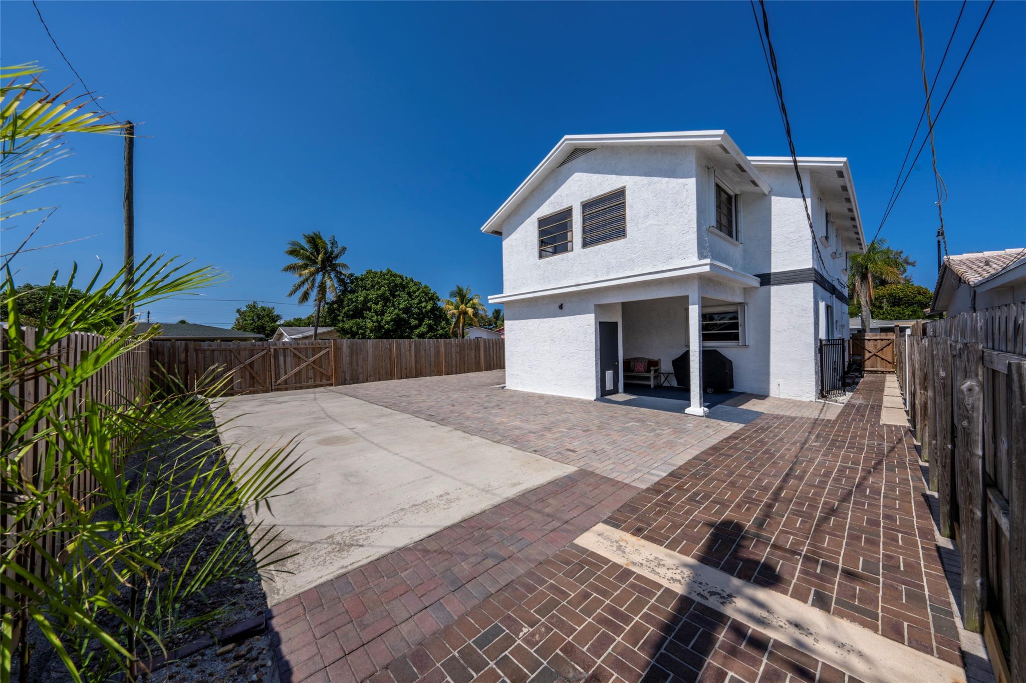 Step into modern elegance with this stunning 2-story corner home in Pompano Beach! The 2nd floor boasts 3 spacious bedrooms and 2 beautifully updated bathrooms, while the ground floor offers a 2-car garage and a versatile guest suite with space for up to 8 cars—or the option to transform it into a full apartment. The fully renovated kitchen shines with quartz countertops and sleek stainless steel appliances, and the upgraded bathrooms feature chic vanities and designer lighting. With wood-plank tile floors, fresh paint throughout, and a large fenced backyard perfect for a pool, this home is an entertainer’s dream! All just 5 minutes from the beach and close to premier shopping, dining, and entertainment!