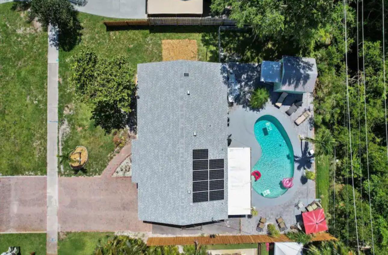 large yard with pool oasis facing the creek that leads to the beach in just 30 minutes, situated in a great family neighborhood with no HOA restrictions. With additional parking space to park your boat or RV. Bright and spacious open floor plan with beautiful remodeled kitchen, three 3 bedrooms and two beautiful 2 baths, also has a large storage shed, solar panels included fully paid for, move in ready, close to 3 major elementary and middle schools. Waterfront home with boat or jet ski access to the ocean and Intracoastal Waterway!