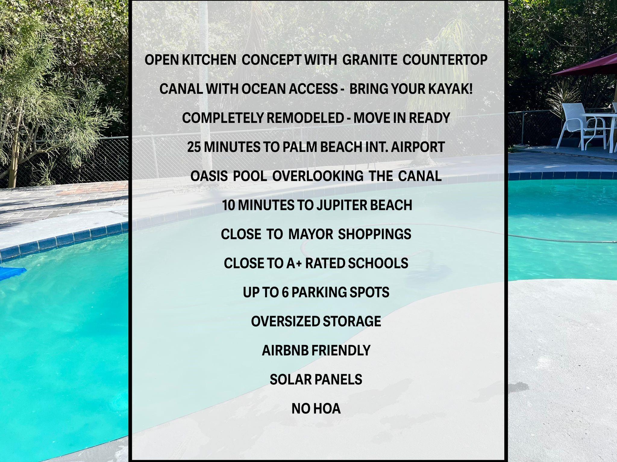 Centrally located, close to schools and shopping and an 8 minute drive to our beautiful Jupiter Beach.