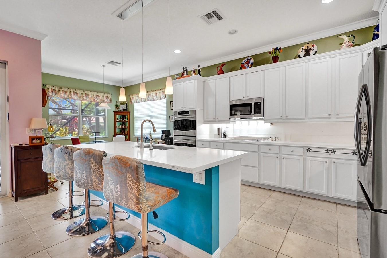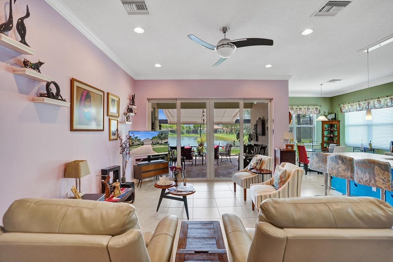 Welcome to your dream home at The Four Seasons! An active adult community in Delray Beach. This beautifully maintained 3 bedroom, 2 bath, single story home built in 2011 offers resort style living with thoughtful upgrades. Enjoy breathtaking lakefront views from the main living area which opens to an oversized patio. This home features a gourmet open kitchen with quartz countertops, white cabinetry and an island/bar for hosting & a breakfast nook. A split floor plan ensures privacy with a large master bedroom & bathroom on one side and two guest bedrooms on the other side. Two car garage. This home is equipped with solar panels, Level 2 charger, water filtration and full impact windows/doors. Elegant clubhouse, fitness center, pickleball & tennis, community pools and social calendar.