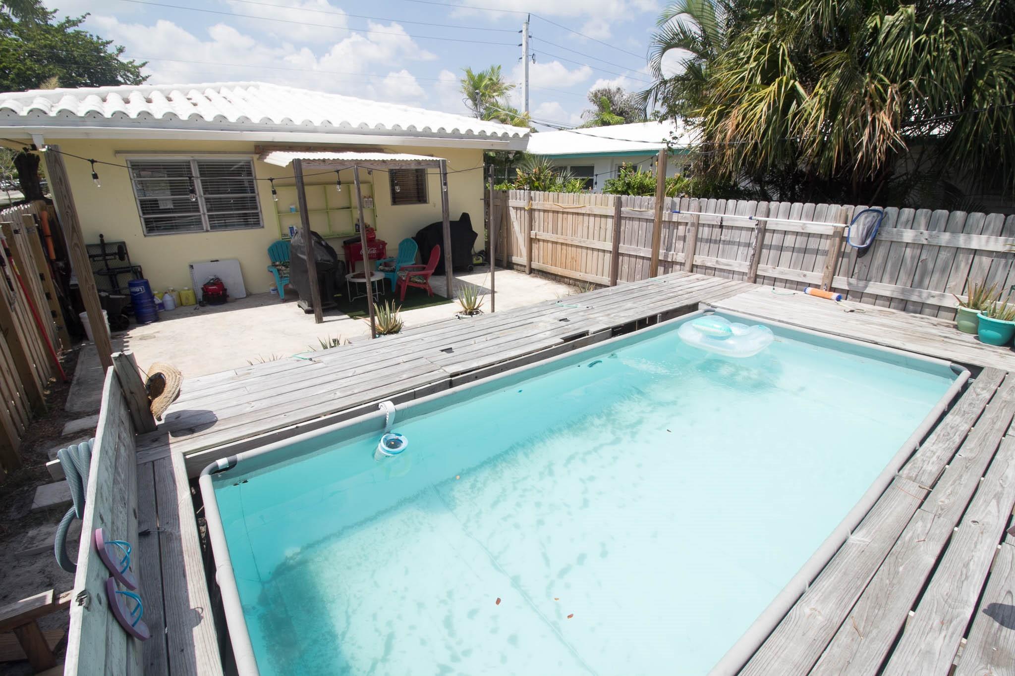 Located in a prime spot in East Pompano Beach, just 1 mile from the beach, this home is not in a flood zone, making it an ideal location for your next residence. You can walk to the nearby city park, which offers soccer, pickleball, baseball, and a 50-meter Olympic pool. Positioned between the emerging downtown area and the beach, this location is set to become even more vibrant with new restaurants, hotels, city projects, and buildings enhancing the area annually. This property features 2 bedrooms and 2 bathrooms, with an above-ground pool in a large backyard. The lot measures 55 ft x 150 ft deep and, being on a corner, offers options to park an RV or boat in the backyard, or even add a garage or perhaps an ADU. The TO-EOD zoning provides various design possibilities worth exploring.