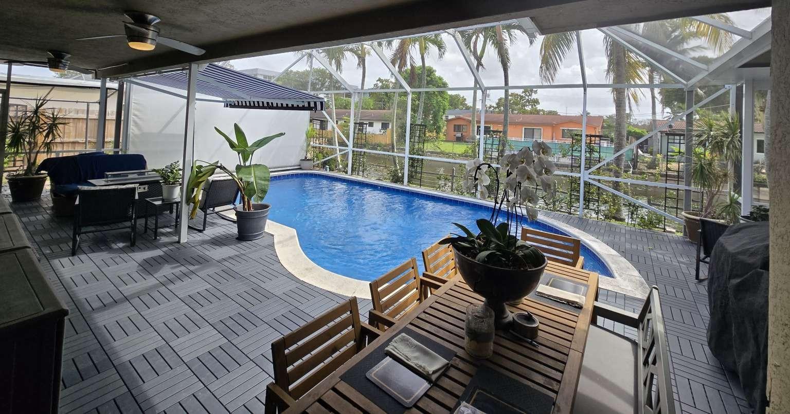 Oakland Park waterfront pool home located in sought after Royal Palm Isles. Large Master bedroom with private patio entrance can be converted for rental income. Large open living and kitchen area. Entry is bright and currently a spacious home office. Large oversized pool area with enclosure is perfect for entertaining. Yard is fenced on both sides for added privacy. Two additional bedrooms offer options. separate laundry/pantry area features an upgraded washer and dryer. minutes from I95, Oakland Park Blvd. Commercial Blvd and nearby Wilton Manors. Property sold AS IS with right to inspect