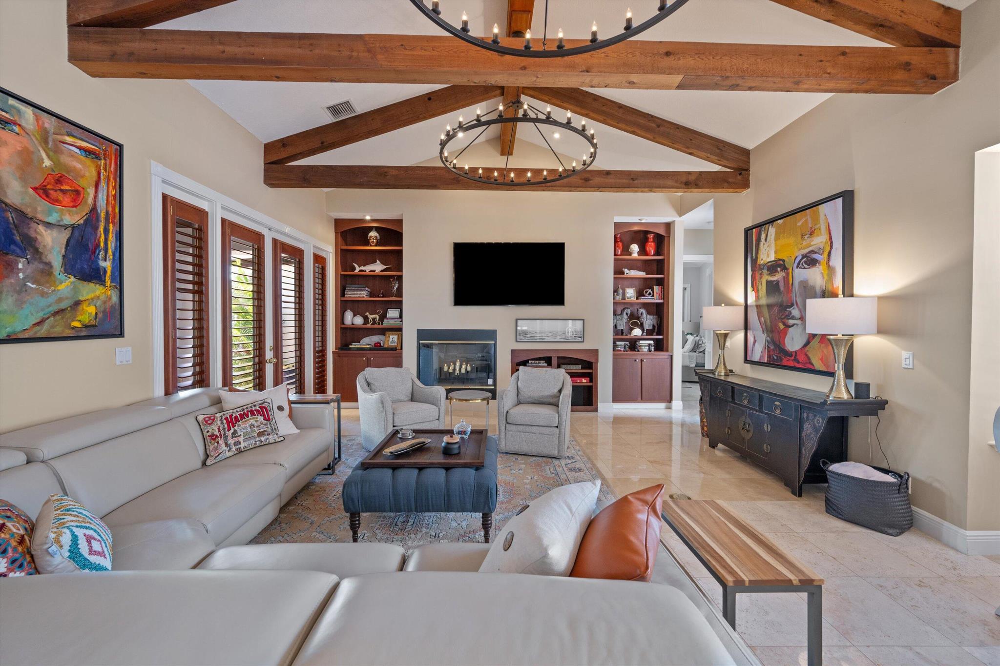 Live your best lifestyle at 2 Firestone Circle, an exquisite residence located in the prestigious and gated Presidential Estates. Spanning an impressive 9,390 total square feet, this home is a testament to luxury and comfort with six spacious bedrooms and five bathrooms. The interior is designed for both elegance and functionality, with two fireplaces adding warmth and ambiance. The property is also equipped with impact windows, ensuring safety and peace of mind. Step outside to discover a private oasis featuring a pool and spa, perfect for relaxation and entertainment. The outdoor area is complemented by breathtaking views of the lake and city, offering a serene backdrop for any occasion.