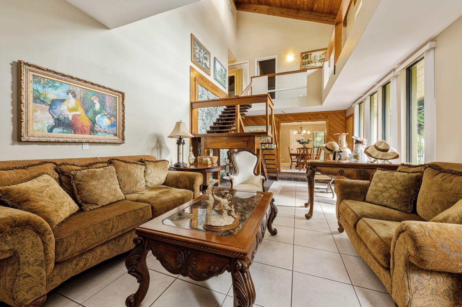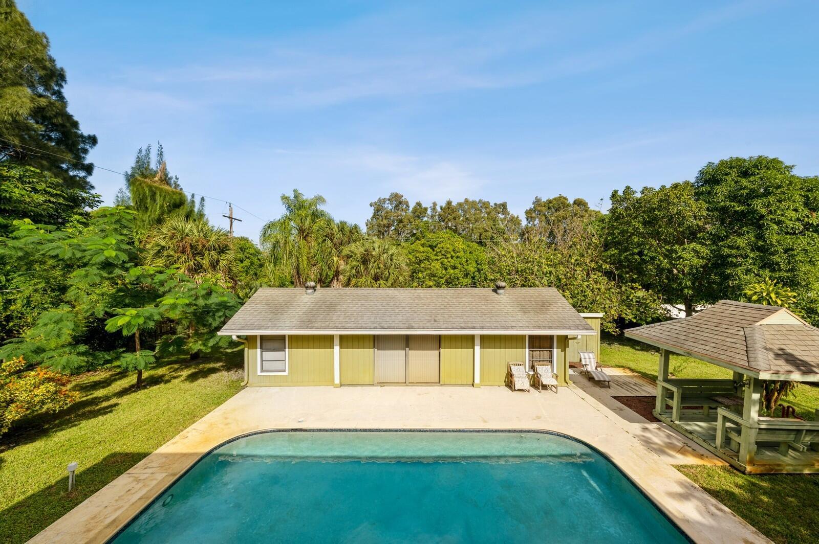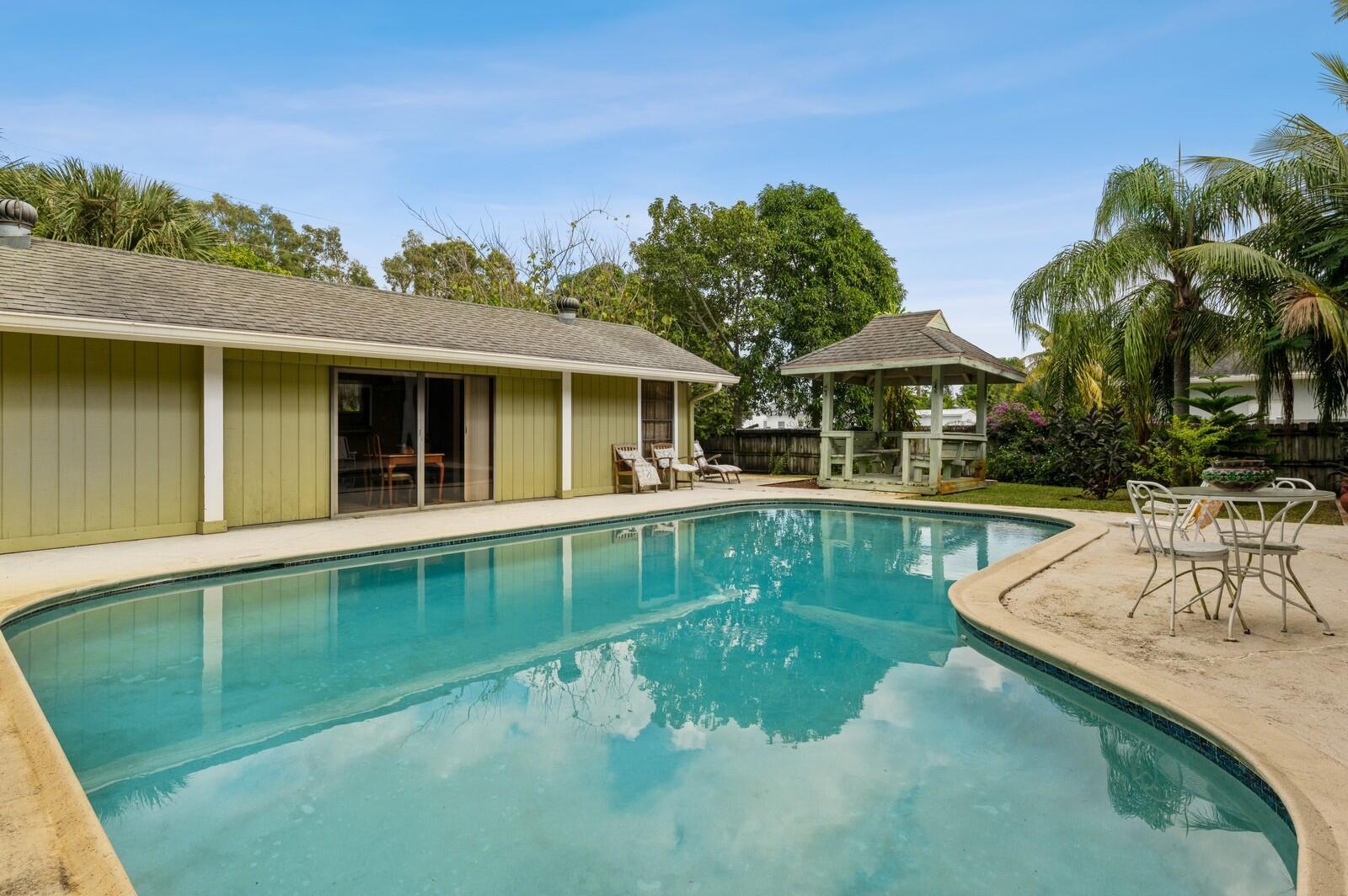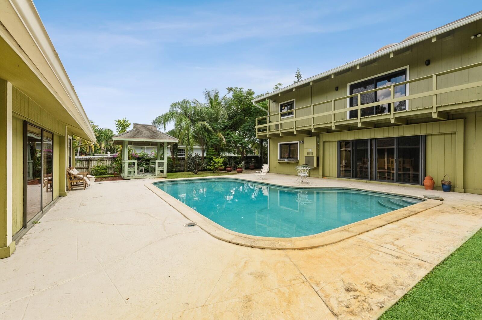 No HOA! Unique, all ages single family home with no HOA, a private pool and an in-law house complete with a kitchen, 1 bedroom and a bathroom. The structure of the main house consists of large, rich wooden beams in the tall living room and bedroom ceilings. Skylights in the house and large windows shed an abundance of natural light. The open kitchen with new appliances and bar overlooks the family area. The second story of the house features a loft plus bedrooms that share a Jack and Jill bathroom as well as a balcony overlooking the pool. Along with the salt water and heated pool, the fenced-in yard has a lovely gazebo. There are multiple patios to choose from to relax. Palm Beach airport is 8 min. away, downtown West Palm Beach is 9 min. away and Mounts Botanical Garden 4 min.