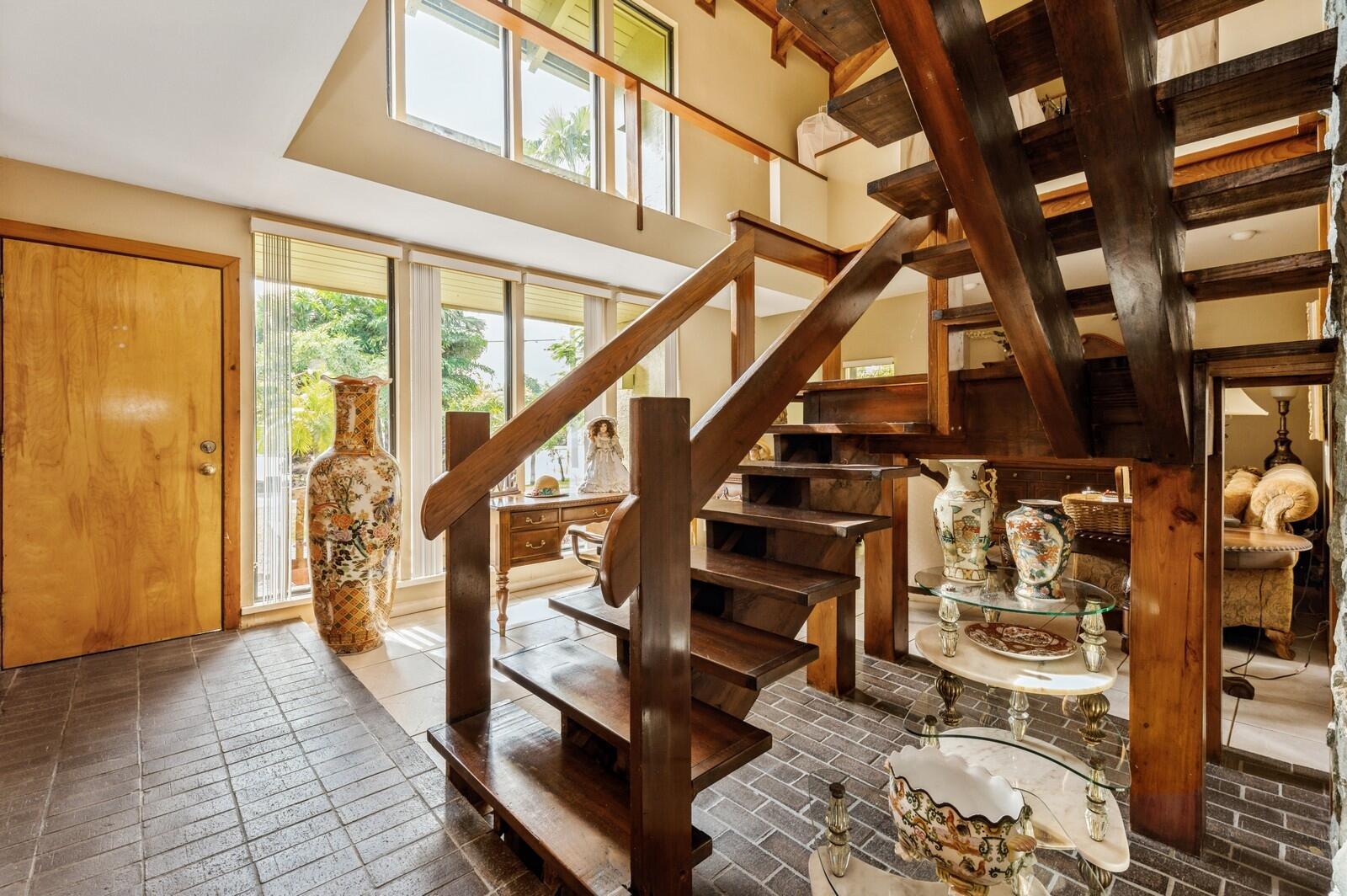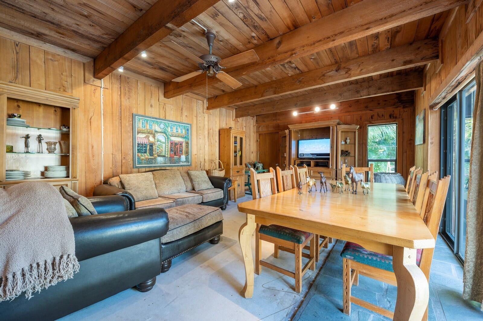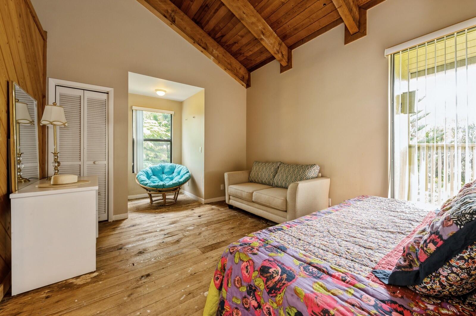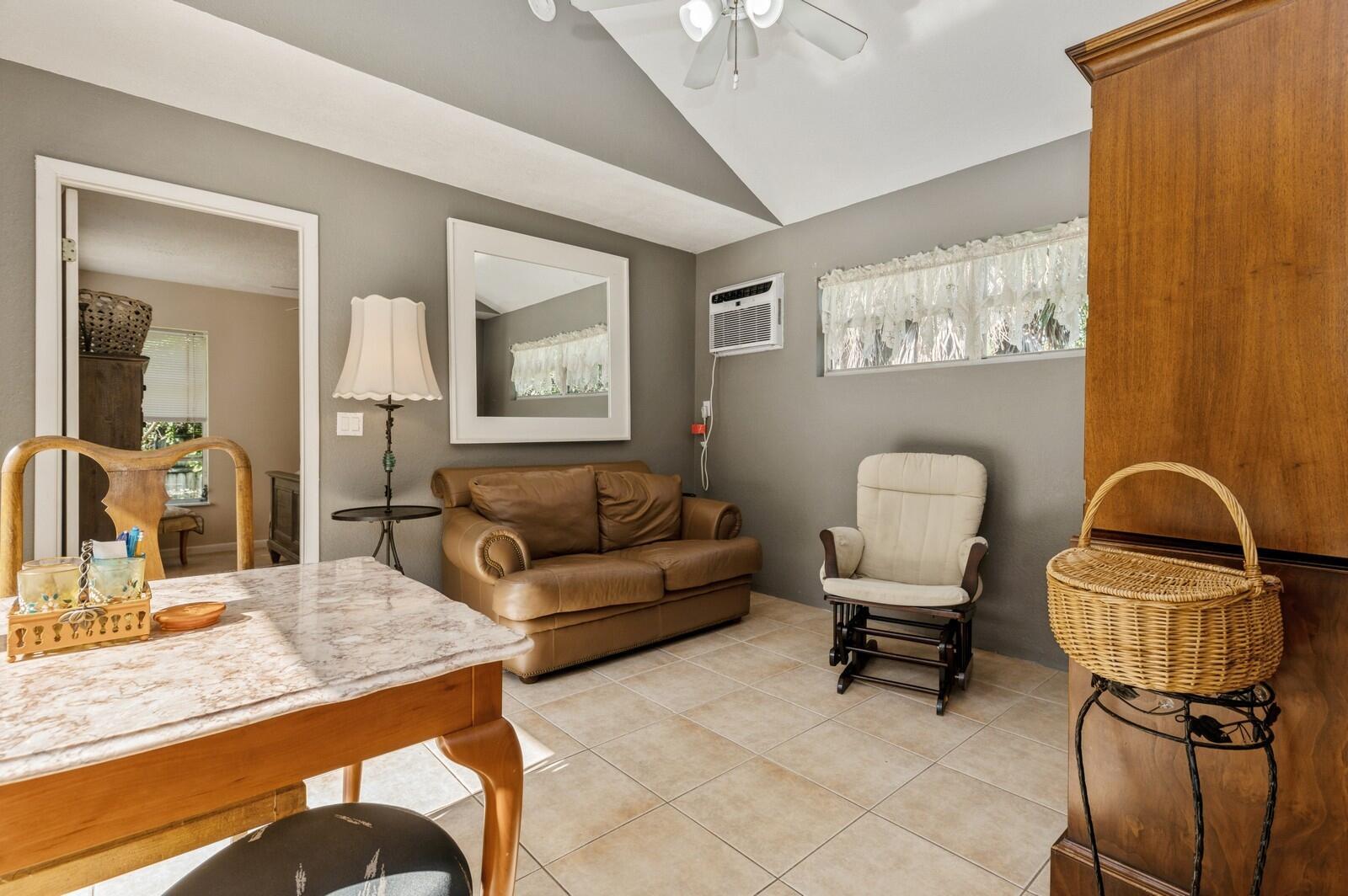 No HOA! Unique, all ages single family home with no HOA, a private pool and an in-law house complete with a kitchen, 1 bedroom and a bathroom. The structure of the main house consists of large, rich wooden beams in the tall living room and bedroom ceilings. Skylights in the house and large windows shed an abundance of natural light. The open kitchen with new appliances and bar overlooks the family area. The second story of the house features a loft plus bedrooms that share a Jack and Jill bathroom as well as a balcony overlooking the pool. Along with the salt water and heated pool, the fenced-in yard has a lovely gazebo. There are multiple patios to choose from to relax. Palm Beach airport is 8 min. away, downtown West Palm Beach is 9 min. away and Mounts Botanical Garden 4 min.